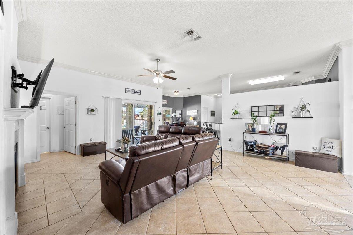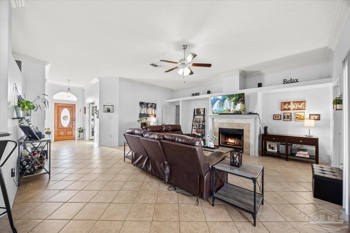 - Ceiling Fan(s), Crown Molding, Plant Ledges, Office/Study