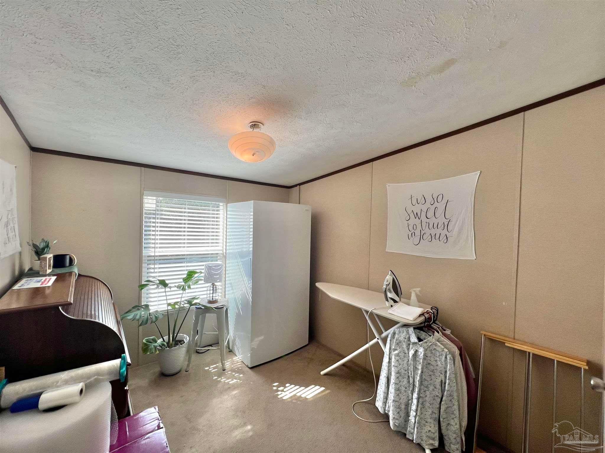 "Nestled in the woods", this charming 4-bedroom, 2-bathroom home sits on a generous 2.28-acre lot, offering tranquil country living with room to grow. Spanning over 1,800 square feet, the open-concept design welcomes you into a spacious kitchen/dining area with abundant counter space—great for family gatherings and casual entertaining. A thoughtful split-bedroom layout ensures privacy, while the primary suite features a private bath with a walk-in shower, double vanity, and an oversized closet for ample storage. Exterior highlights include a covered 25 x 30 carport and a detached storage building, adding convenience and additional space for hobbies or vehicles. This property combines comfortable living with serene surroundings, making it a wonderful retreat without sacrificing everyday practicality!