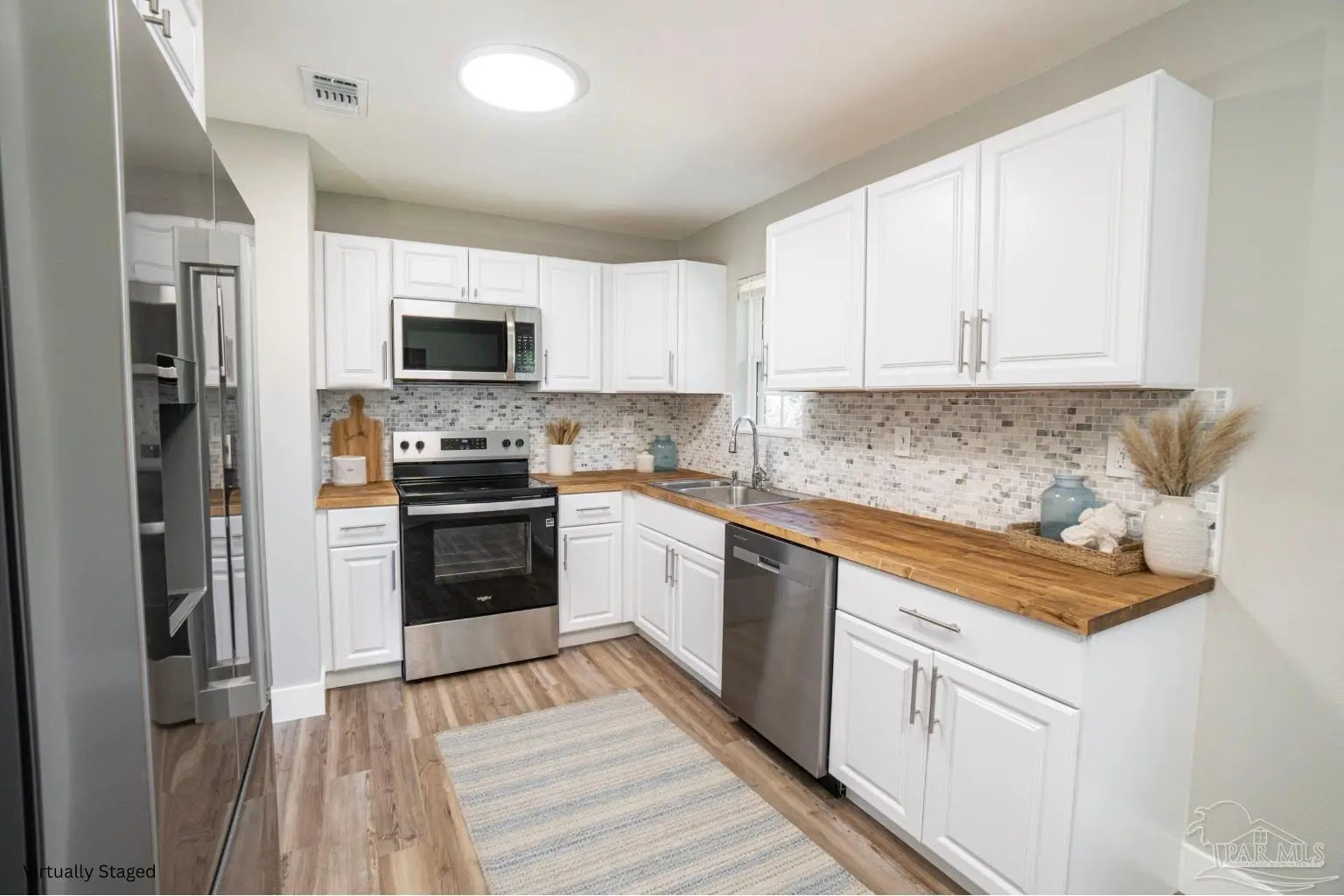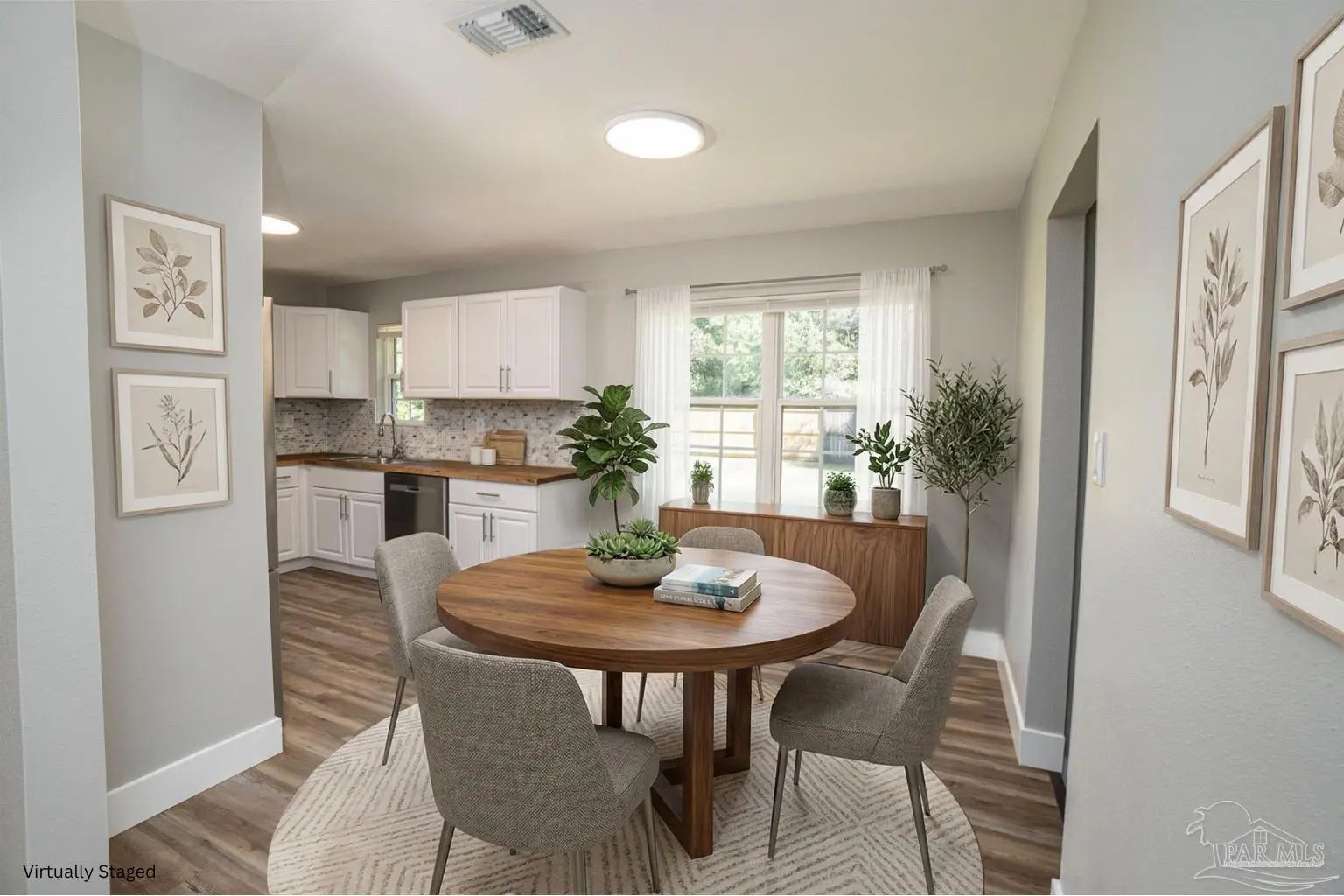 Welcome to a home with the perfect blend of function and value in this turn-key 4-bedroom, 2-bathroom home. Designed for comfortable living, the property delivers on space and modern updates, making it an ideal choice for a variety of buyers. The kitchen and dining area flow beautifully into the living room, creating an open, flexible space that's excellent for daily convenience and entertaining guests. Enjoy the durability and low maintenance of new vinyl flooring installed throughout the house, and the fresh, modern appeal of two beautifully tiled bathrooms. The four spacious bedrooms ensure comfort and flexibility. 2025 roof and new water heater add additional benefit and buyers peace of mind. Includes a utility room with a sink to add convenience to your routine, and a spacious yard ready for outdoor activities. The large driveway provides plentiful parking, and the mature landscaping adds to the curb appeal. Contact us now to learn more about this incredible opportunity, and make this move-in ready home yours!