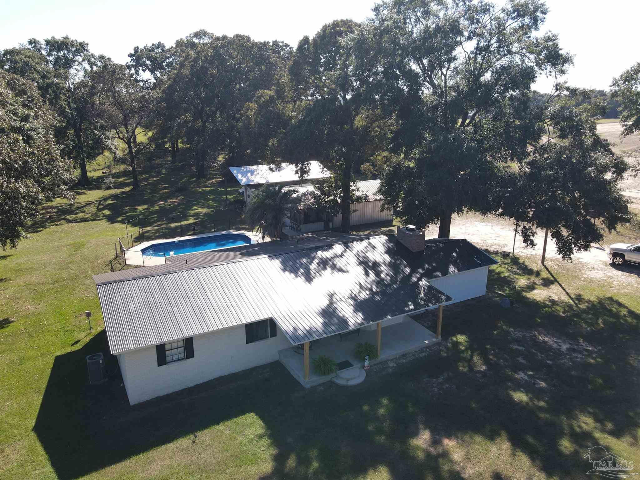 INGROUND POOL ON 2 ACRES ~ don't miss this gem that sits at the end of a country road ~ 3 bedrooms ~ 3 bathrooms ~ split floor plan ~ 2 masters and 2 water heaters ~ large master bathroom with a walk in tiled shower with a bench ~ master bedroom boast a large 10 x 5 walk in closet and fireplace ~ large eat in kitchen with a breakfast bar, concrete counter tops, ship lap walls, pantry, built in microwave, flat surface electric stove, dishwasher, an extra closet for storage ~ large laundry room 11 x11 ~ covered front and back porches ~ in ground vinyl pool fenced, liner 2024, pump 2025 ~ home is on a well with a neutralizer and can be hooked up to city water if you so desire ~ carport on the back ~ more of the outdoor features include 24' x 24' workshop with power and concrete floors, an outdoor bar/grilling area for your parties by the pool, an enclosed 12 x 12 room attached, foam insulated, AC ~ 24 x 36 pole barn to store your RV with 30 amp hook up and room to park your truck ~ AC for home is 2015...come make your homestead, bring your horse and chickens and enjoy the beautiful country.