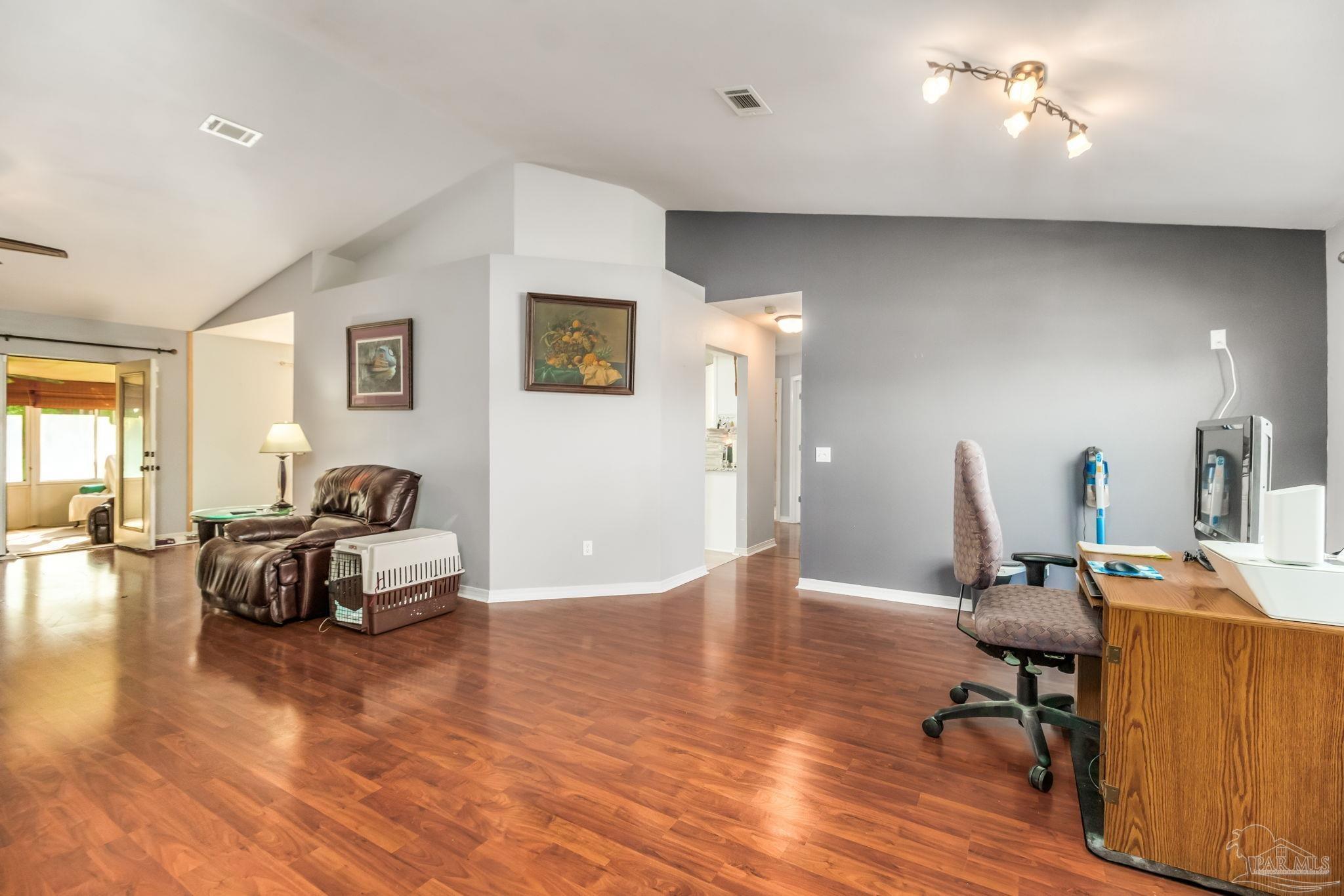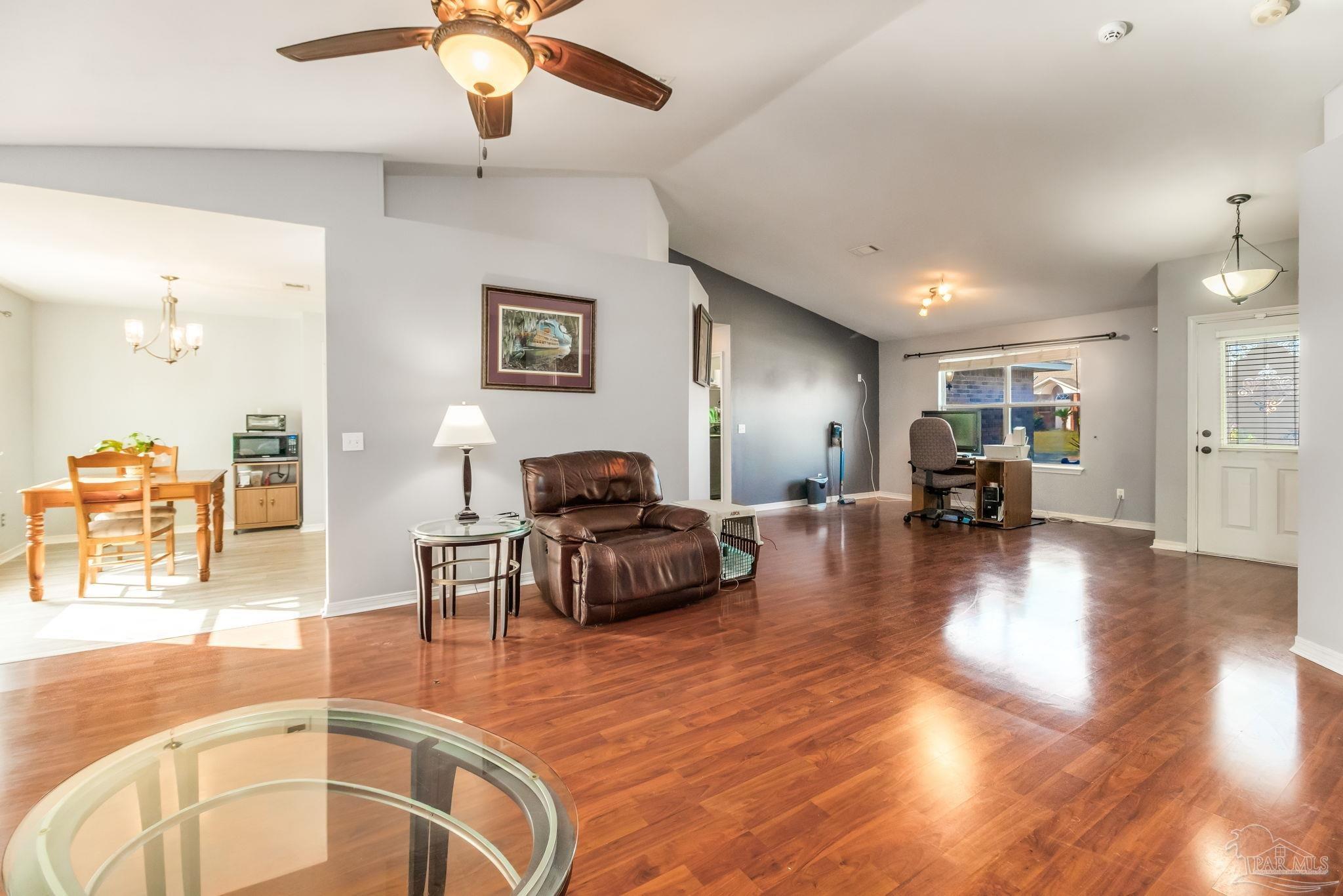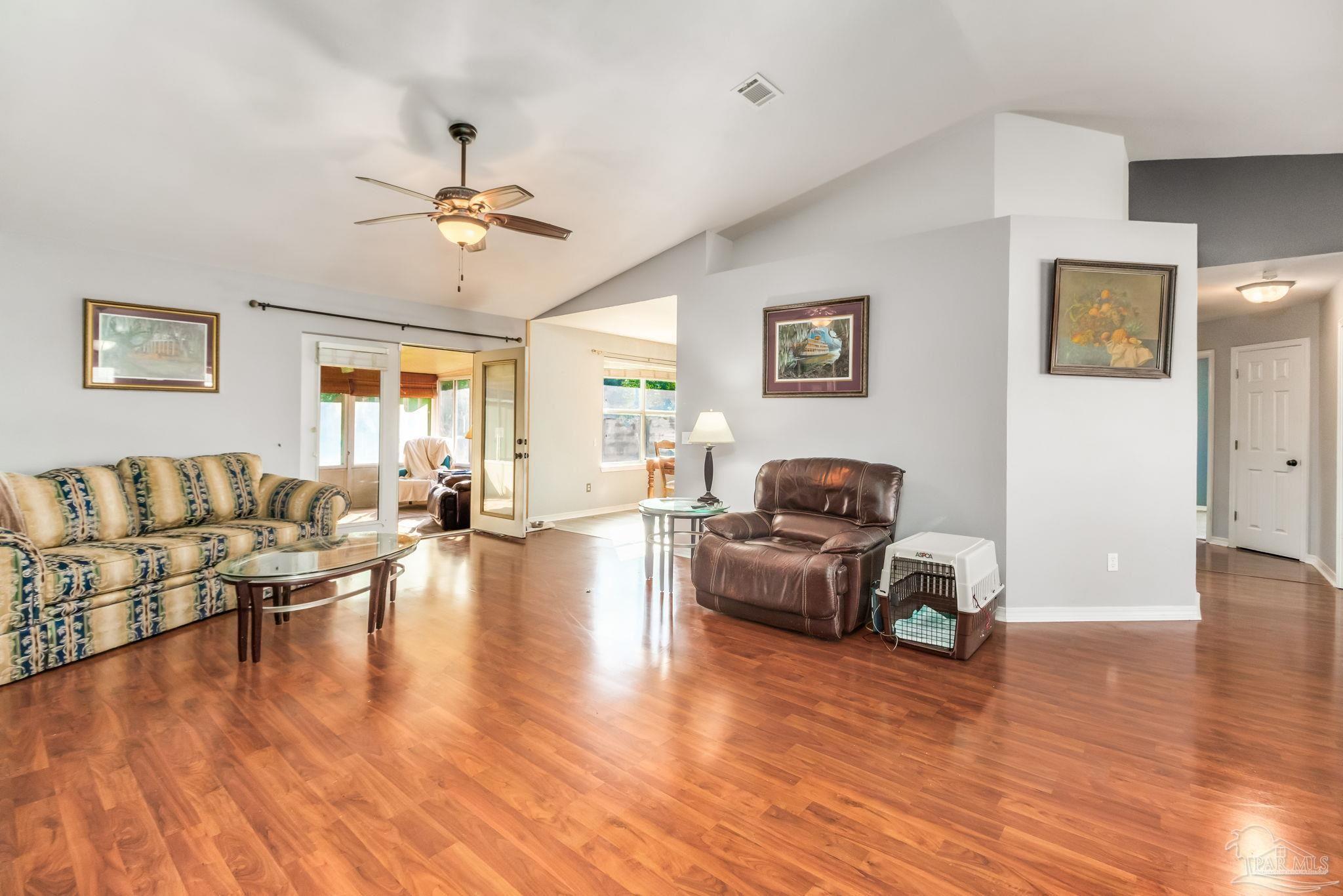 Well-Maintained Home on Nearly Half an Acre! Welcome to this beautifully cared-for 3-bedroom, 2-bathroom home offering 1,726 square feet of comfortable living in a quiet, established neighborhood. Built in 1996 and lovingly maintained by its original owner, this property combines thoughtful updates with timeless charm. Step inside to discover a bright, open living space that flows seamlessly between the living room, dining area, and updated kitchen, complete with modern appliances and stylish finishes. Both bathrooms have been tastefully renovated, and the primary suite features a spacious walk-in shower and ample closet space. The home’s recent upgrades ensure peace of mind for years to come: a new roof and HVAC (2024), plus a whole-house generator for added security during storms, and a washer and dryer that convey. Enjoy year-round comfort in the Florida room, or relax outdoors on the covered patio overlooking the .46-acre lot. The property borders a pond that has never flooded, offering added privacy. This home truly has it all—modern updates, a thoughtful layout, and outdoor space to make your own. Conveniently located near local shops, dining, and NAS Pensacola, it’s the perfect blend of comfort and convenience. Don’t miss your chance to own this lovingly maintained, move-in-ready home—schedule your showing today!