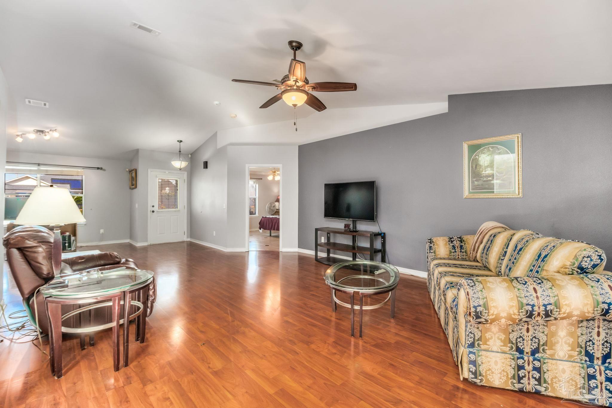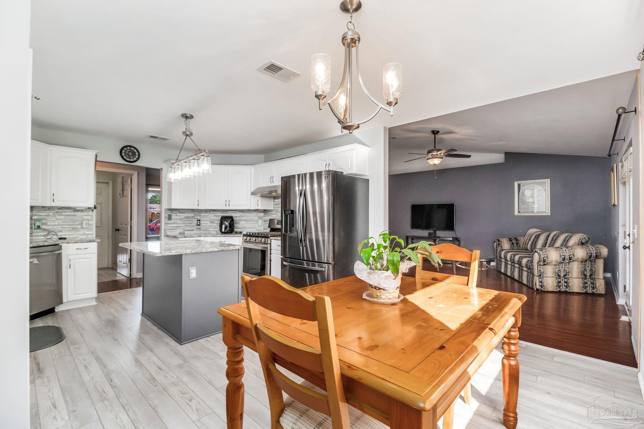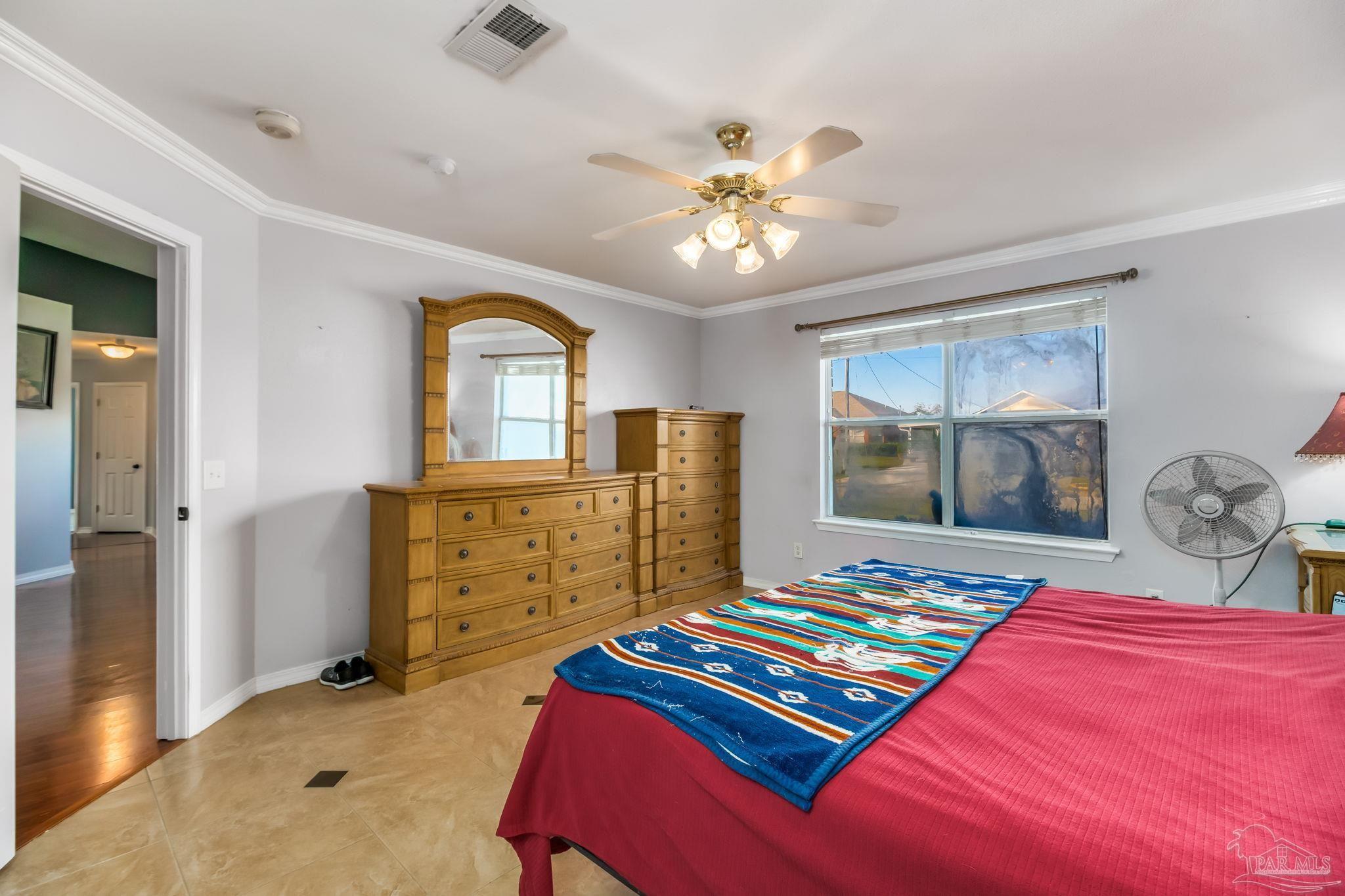 Well-Maintained Home on Nearly Half an Acre! Welcome to this beautifully cared-for 3-bedroom, 2-bathroom home offering 1,726 square feet of comfortable living in a quiet, established neighborhood. Built in 1996 and lovingly maintained by its original owner, this property combines thoughtful updates with timeless charm. Step inside to discover a bright, open living space that flows seamlessly between the living room, dining area, and updated kitchen, complete with modern appliances and stylish finishes. Both bathrooms have been tastefully renovated, and the primary suite features a spacious walk-in shower and ample closet space. The home’s recent upgrades ensure peace of mind for years to come: a new roof and HVAC (2024), plus a whole-house generator for added security during storms, and a washer and dryer that convey. Enjoy year-round comfort in the Florida room, or relax outdoors on the covered patio overlooking the .46-acre lot. The property borders a pond that has never flooded, offering added privacy. This home truly has it all—modern updates, a thoughtful layout, and outdoor space to make your own. Conveniently located near local shops, dining, and NAS Pensacola, it’s the perfect blend of comfort and convenience. Don’t miss your chance to own this lovingly maintained, move-in-ready home—schedule your showing today!
