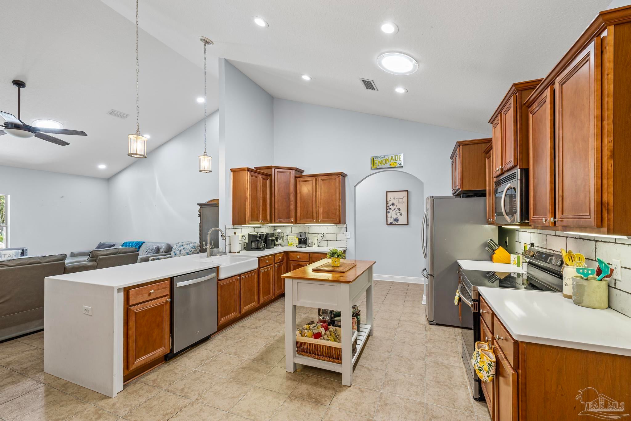 - Electric Water Heater, Built In Microwave, Dishwasher, Disposal, Refrigerator, Self Cleaning Oven