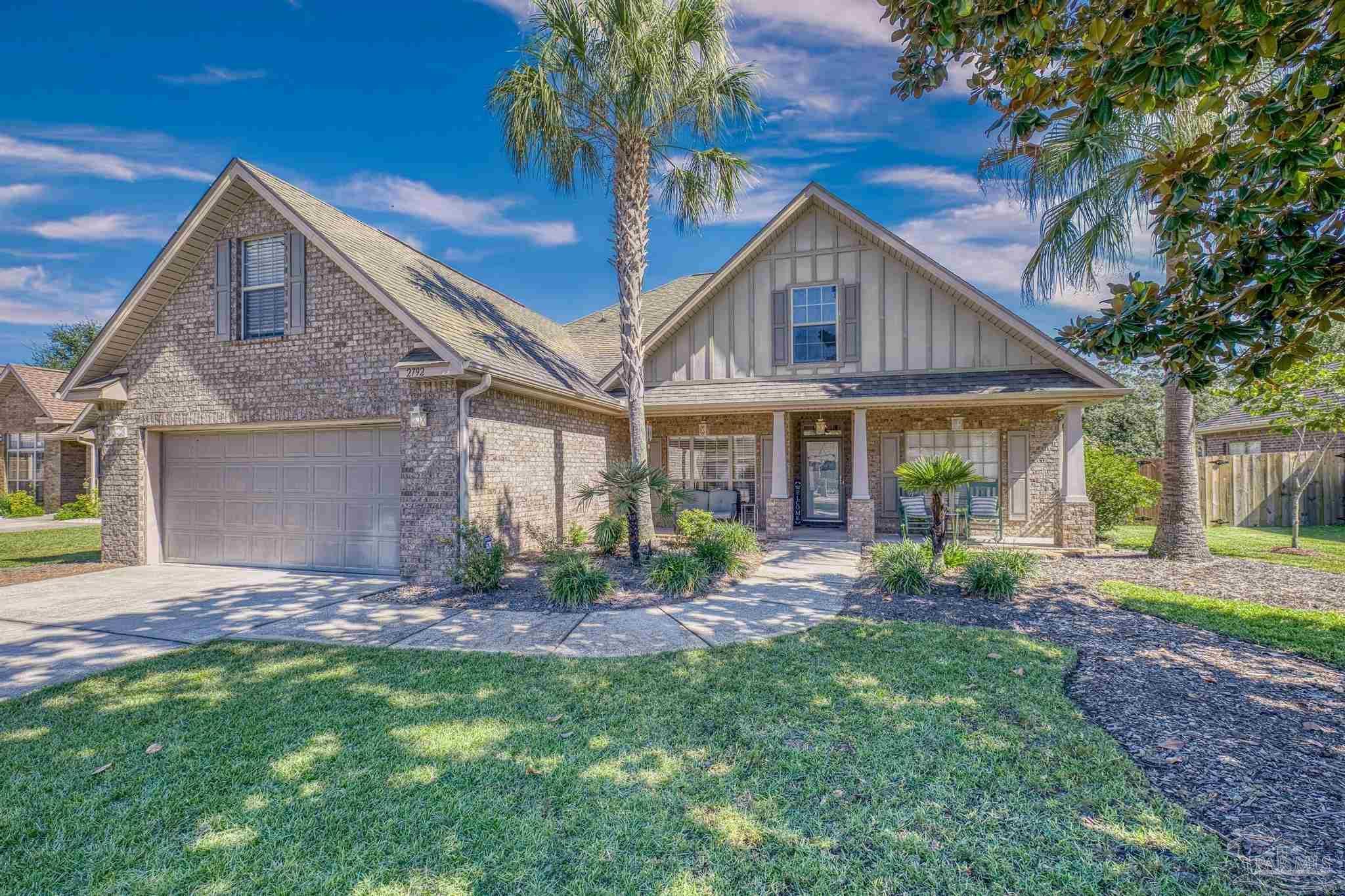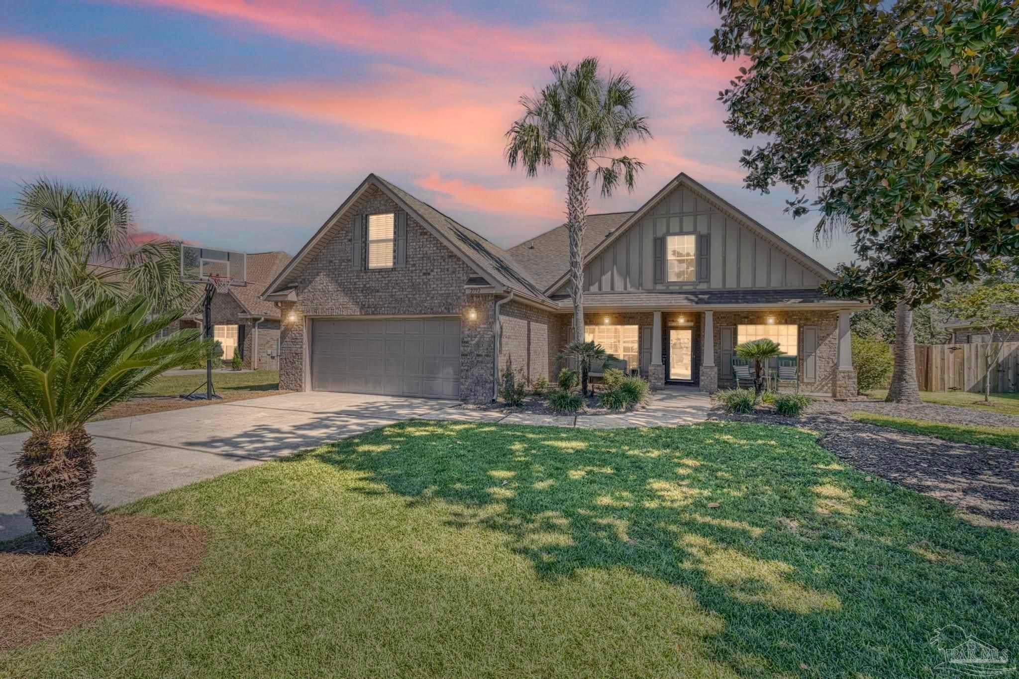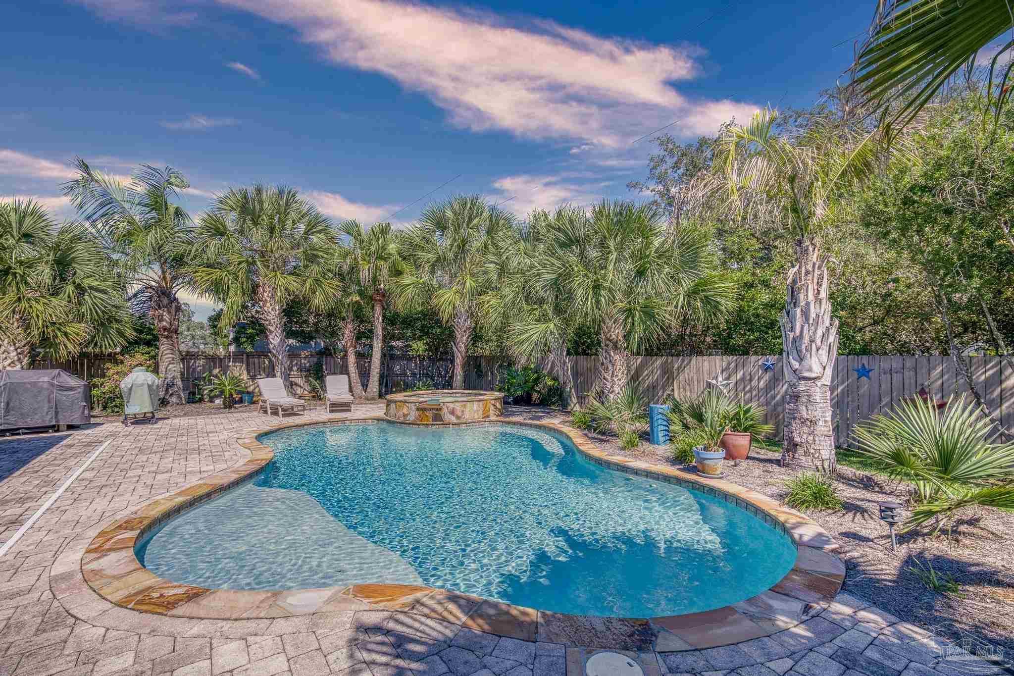 Waiting for a pool home in Navarre? Wait no more! Discover your dream Florida lifestyle in this home within the highly sought-after Grand Bay Estates community in Navarre. This 4-bedroom 2 and 1/2-bath residence, complete with a dedicated private office, offers a split bedroom floorplan, a bonus room upstairs, all hard floors, all solid surface countertops, large open kitchen and lots of added charm and character. Step inside to a bright entry foyer with the office to the right and formal dining room to the left. Then down the hall is an impressive, open-concept design featuring soaring high ceilings that enhance the natural light and spacious feel of the great room. There is one skylight in the kitchen and one in the greatroom - both in the cathedral ceiling.The centerpiece is a chic, modern aesthetic highlighted by a beautifully accented shiplap wall, creating a perfect gathering space for family and friends. Open to the greatroom is the kitchen in the heart of the home - complete with quartz countertops, tile backsplash, stainless appliances, center - moveable - island, pantry and lots of cabinets. The main suite is on the back of the home with a box ceiling with crown molding and a view of the back yard - since the home faces west, is cooler in the afternoon heat of the day. The bath - what can I say - double vanity, granite countertops, large closet with built-ins - no wire shelving here, separate shower, garden tub and water closet. The true highlight is your private outdoor sanctuary! Escape the Florida heat in your very own backyard oasis featuring an in-ground gunite pool with ionizer and an integrated spa - with propane heater. This luxurious feature is perfect for relaxing after a day at the beach, hosting summer BBQs, or simply enjoying the tranquil Navarre evenings. Grand Bay Estates is known for its waterfront access to East Bay with dock, peaceful atmosphere, streetlights, underground utilities, fiber and proximity to Navarre's beautiful beach.