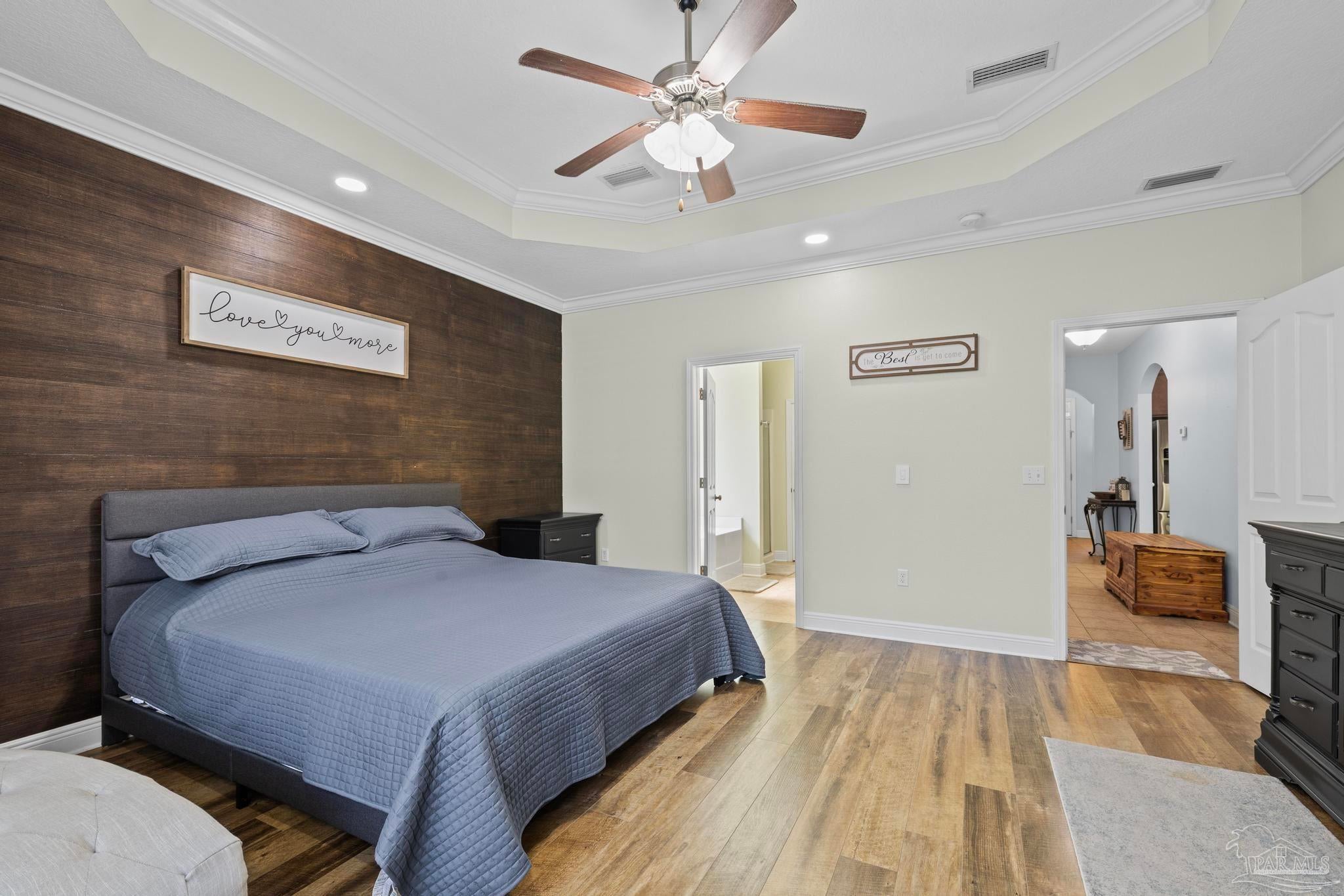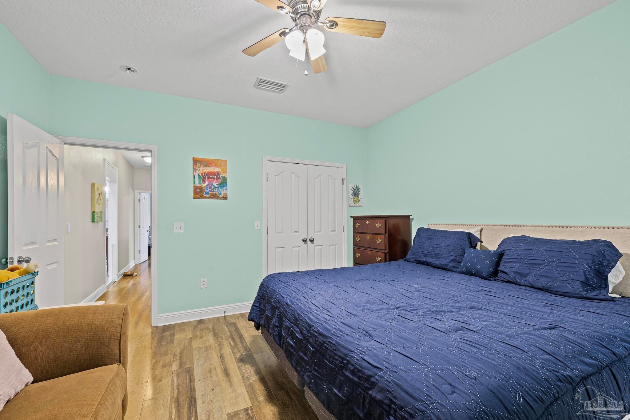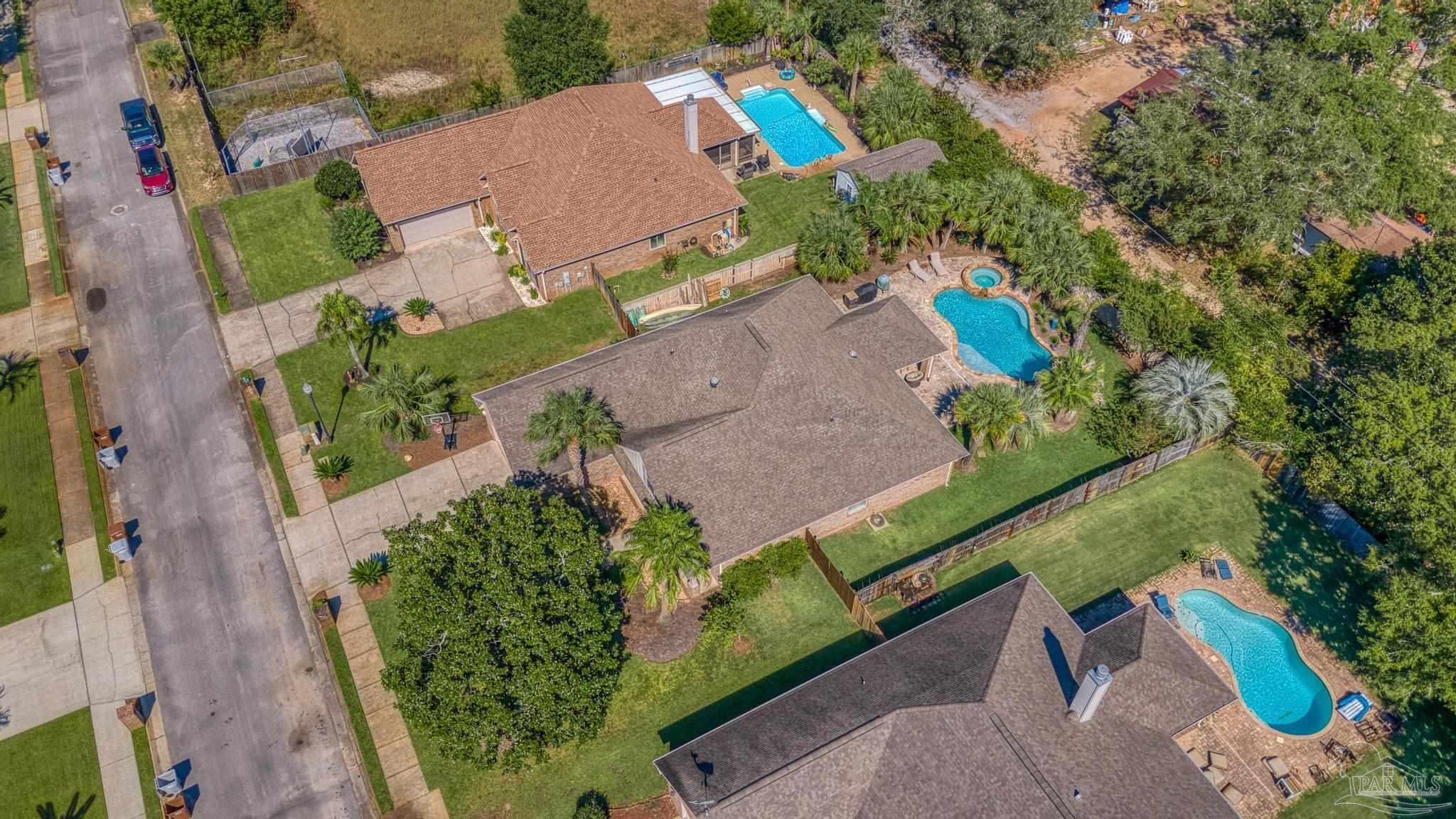 Waiting for a pool home in Navarre? Wait no more! Discover your dream Florida lifestyle in this home within the highly sought-after Grand Bay Estates community in Navarre. This 4-bedroom 2 and 1/2-bath residence, complete with a dedicated private office, offers a split bedroom floorplan, a bonus room upstairs, all hard floors, all solid surface countertops, large open kitchen and lots of added charm and character. Step inside to a bright entry foyer with the office to the right and formal dining room to the left. Then down the hall is an impressive, open-concept design featuring soaring high ceilings that enhance the natural light and spacious feel of the great room. There is one skylight in the kitchen and one in the greatroom - both in the cathedral ceiling.The centerpiece is a chic, modern aesthetic highlighted by a beautifully accented shiplap wall, creating a perfect gathering space for family and friends. Open to the greatroom is the kitchen in the heart of the home - complete with quartz countertops, tile backsplash, stainless appliances, center - moveable - island, pantry and lots of cabinets. The main suite is on the back of the home with a box ceiling with crown molding and a view of the back yard - since the home faces west, is cooler in the afternoon heat of the day. The bath - what can I say - double vanity, granite countertops, large closet with built-ins - no wire shelving here, separate shower, garden tub and water closet. The true highlight is your private outdoor sanctuary! Escape the Florida heat in your very own backyard oasis featuring an in-ground gunite pool with ionizer and an integrated spa - with propane heater. This luxurious feature is perfect for relaxing after a day at the beach, hosting summer BBQs, or simply enjoying the tranquil Navarre evenings. Grand Bay Estates is known for its waterfront access to East Bay with dock, peaceful atmosphere, streetlights, underground utilities, fiber and proximity to Navarre's beautiful beach.