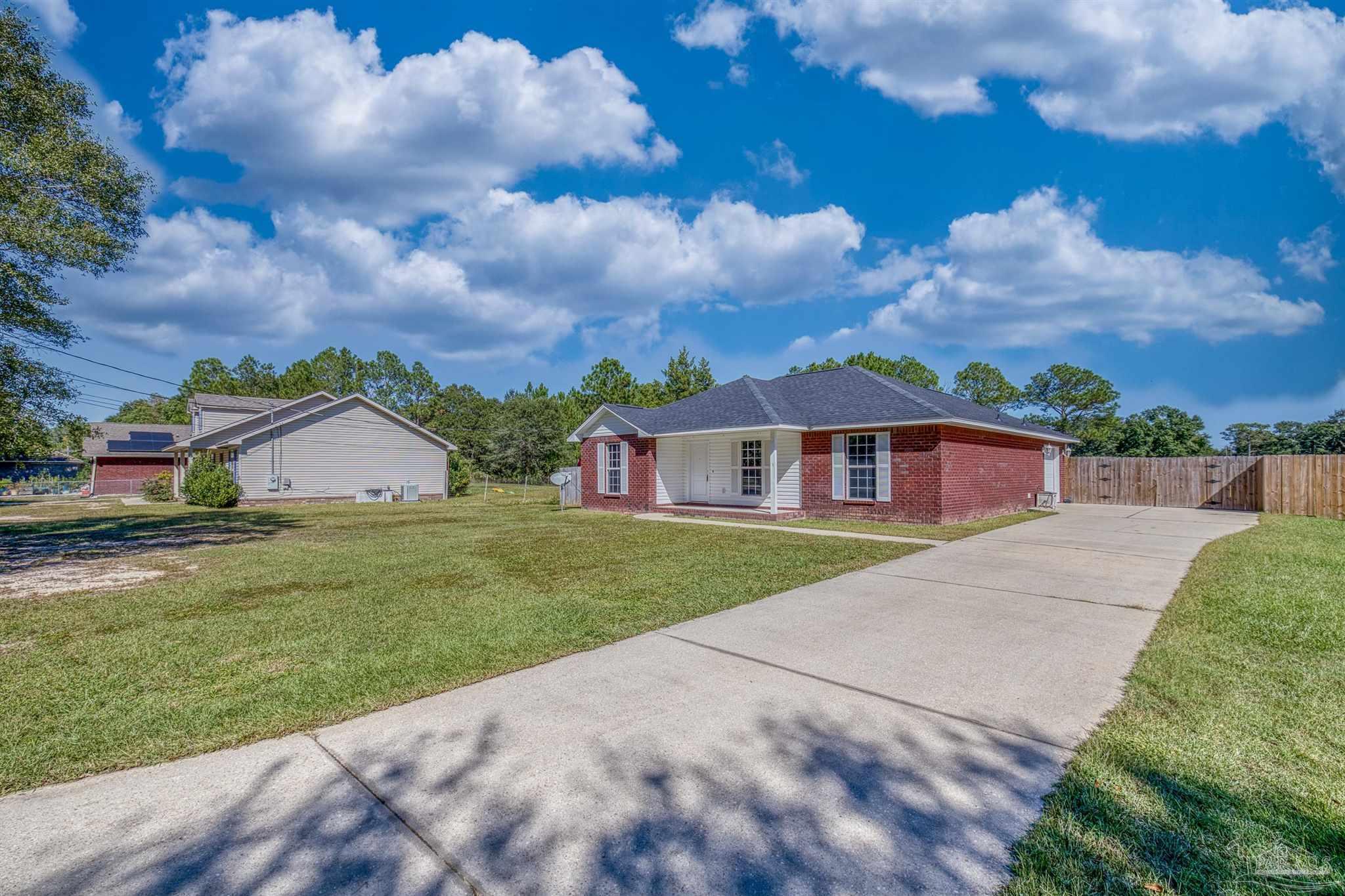 Welcome home to this charming 3-bedroom, 2-bath brick house perfectly situated in Milton, just off Hwy 87! Enjoy the convenience of being only a short distance from Navarre Beach, Interstate 10, restaurants, shopping, and more, while still tucked away in a peaceful setting. Step inside to find a cozy, freshly painted home featuring a functional layout that’s perfect for everyday living. The spacious kitchen opens to the living area, creating a comfortable space for entertaining or relaxing with family. Each bedroom offers plenty of natural light and closet space, while both bathrooms are designed for ease and comfort. Outside, you’ll love the large, fenced backyard—over half an acre of private space ideal for kids, pets, or weekend barbecues. The long driveway provides ample parking for guests, and the one-car garage offers extra storage or workshop potential. Plus, enjoy peace of mind knowing the roof is less than a year old! Whether you’re a first-time homebuyer, downsizing, or looking for an investment opportunity, this home checks all the boxes. Don’t miss your chance to own this adorable Milton gem—schedule your showing today!