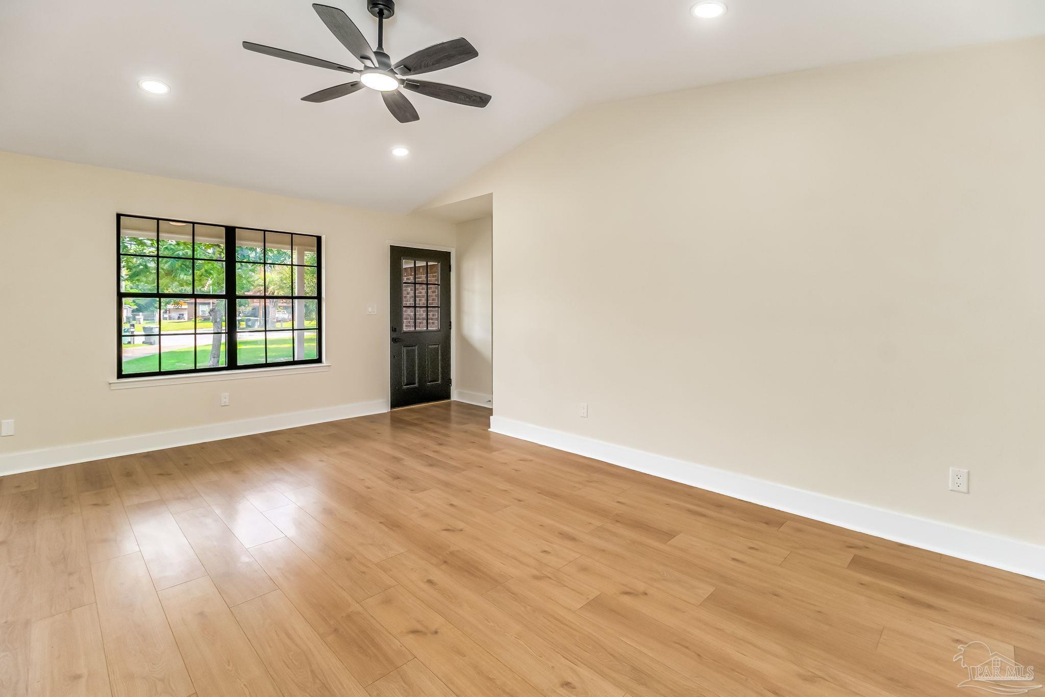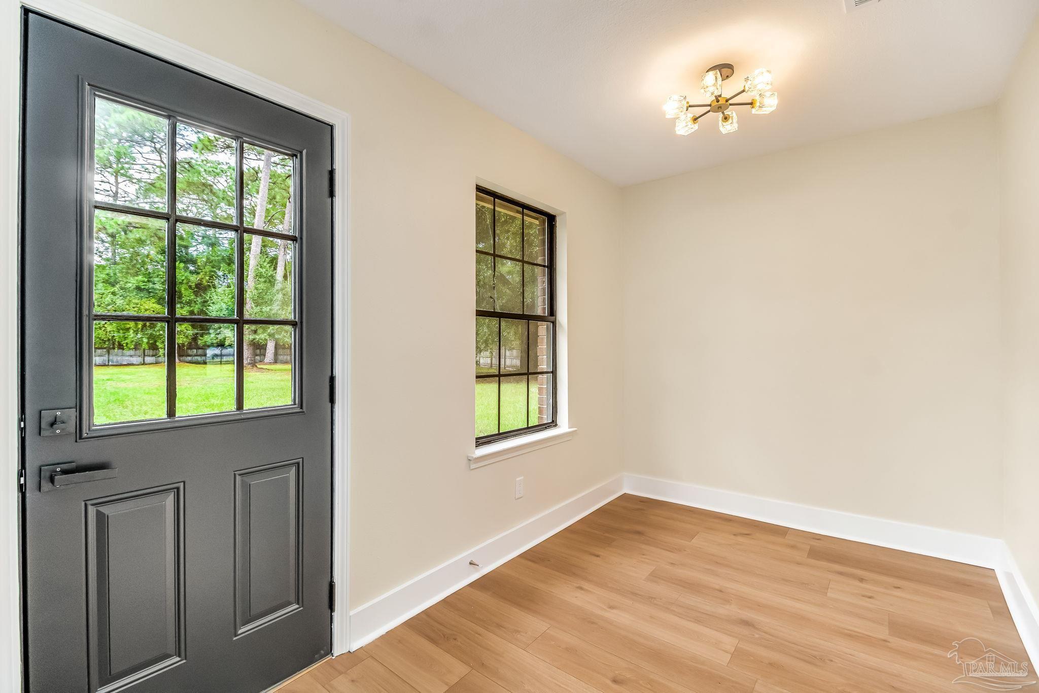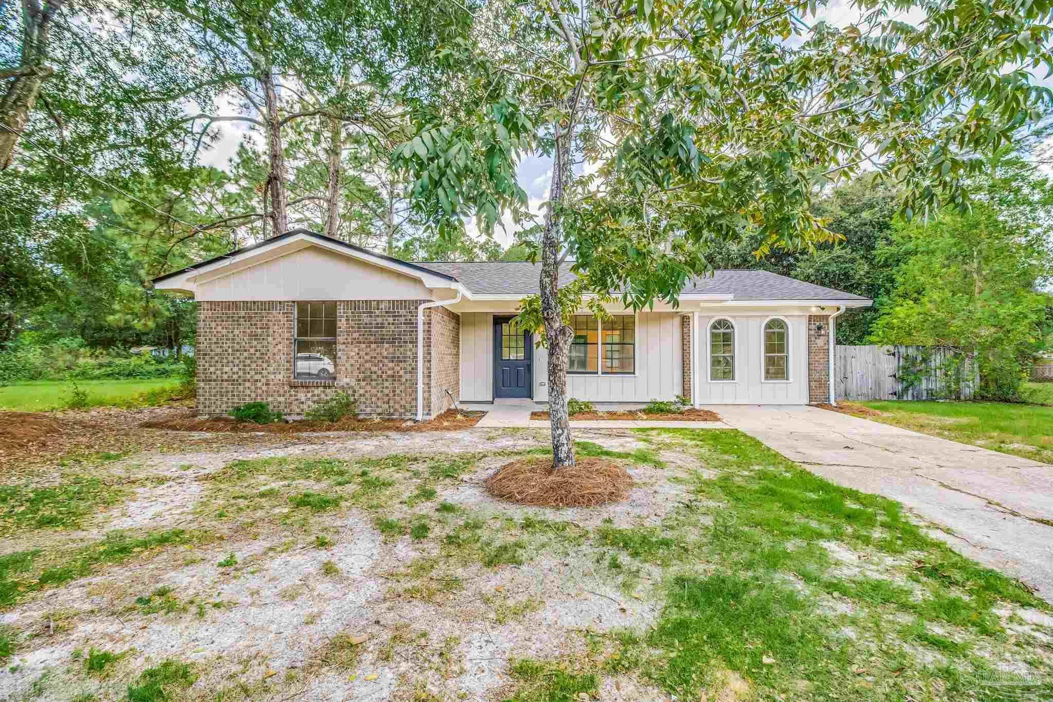 Welcome to this beautifully refreshed 3-bedroom, 1.5-bath home offering 1,416 sq ft of comfort and style. **NEW ROOF 2025, Brand NEW HVAC in and out 2025 and New Water Heater 2025**. Situated on a sprawling .63-acre lot, this property provides plenty of room to relax, entertain, or expand. Step inside to find brand new white cabinets that brighten the kitchen, complemented by Rockwood oak laminate wood flooring that flows throughout. The bathrooms feature new Glacier Bay push flush toilets and a stylish Home Decorators Autumn vanities, creating a modern yet cozy feel. Every room is thoughtfully updated with matte white and black ceiling lamps, adding a touch of contemporary charm. Whether you’re looking for your first home, a peaceful retreat, or a property with space to grow, this one has it all. Just 15 mins from Perdido Key Beach! Don’t miss the opportunity to own this beautifully updated home on one of the largest lots in the area!