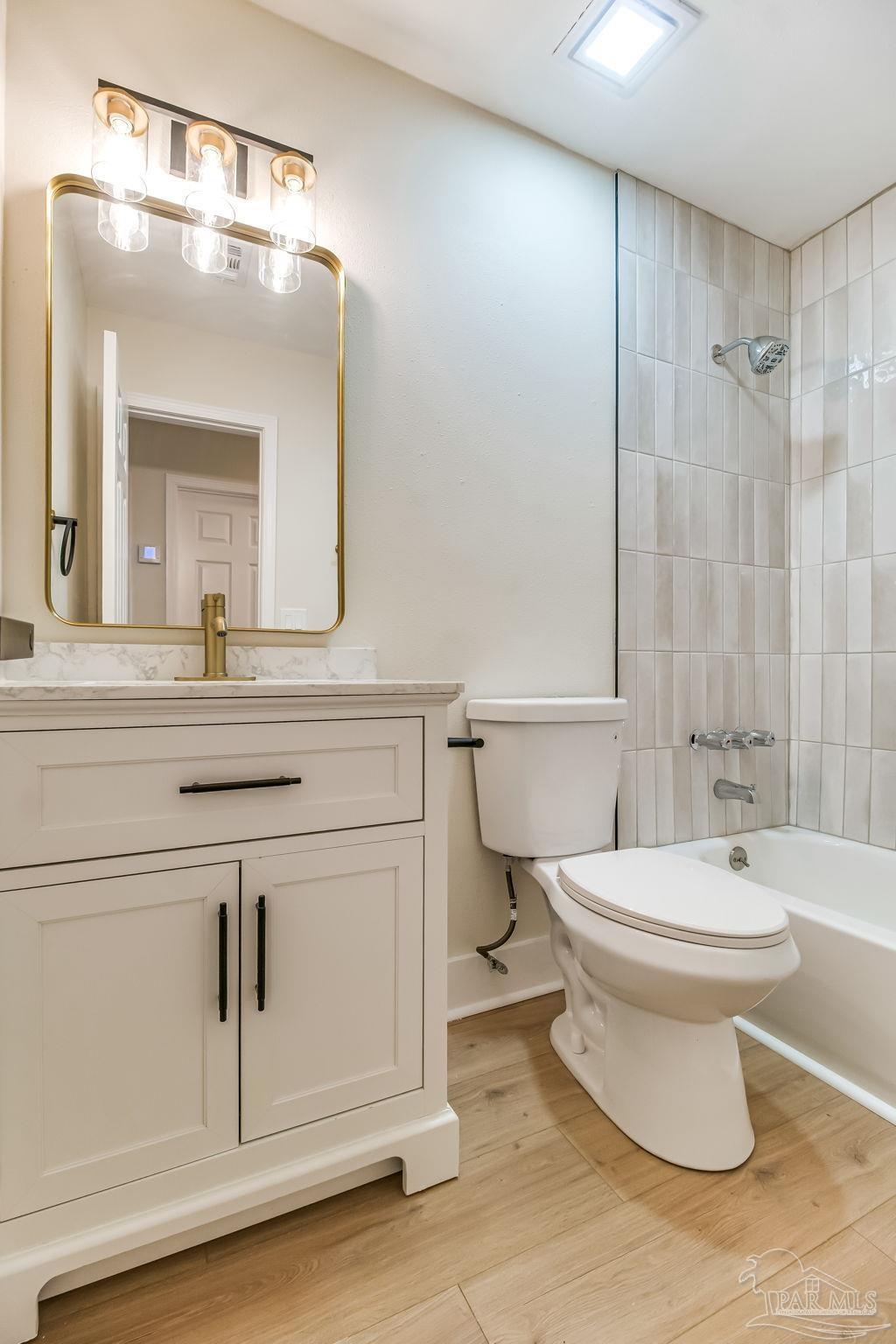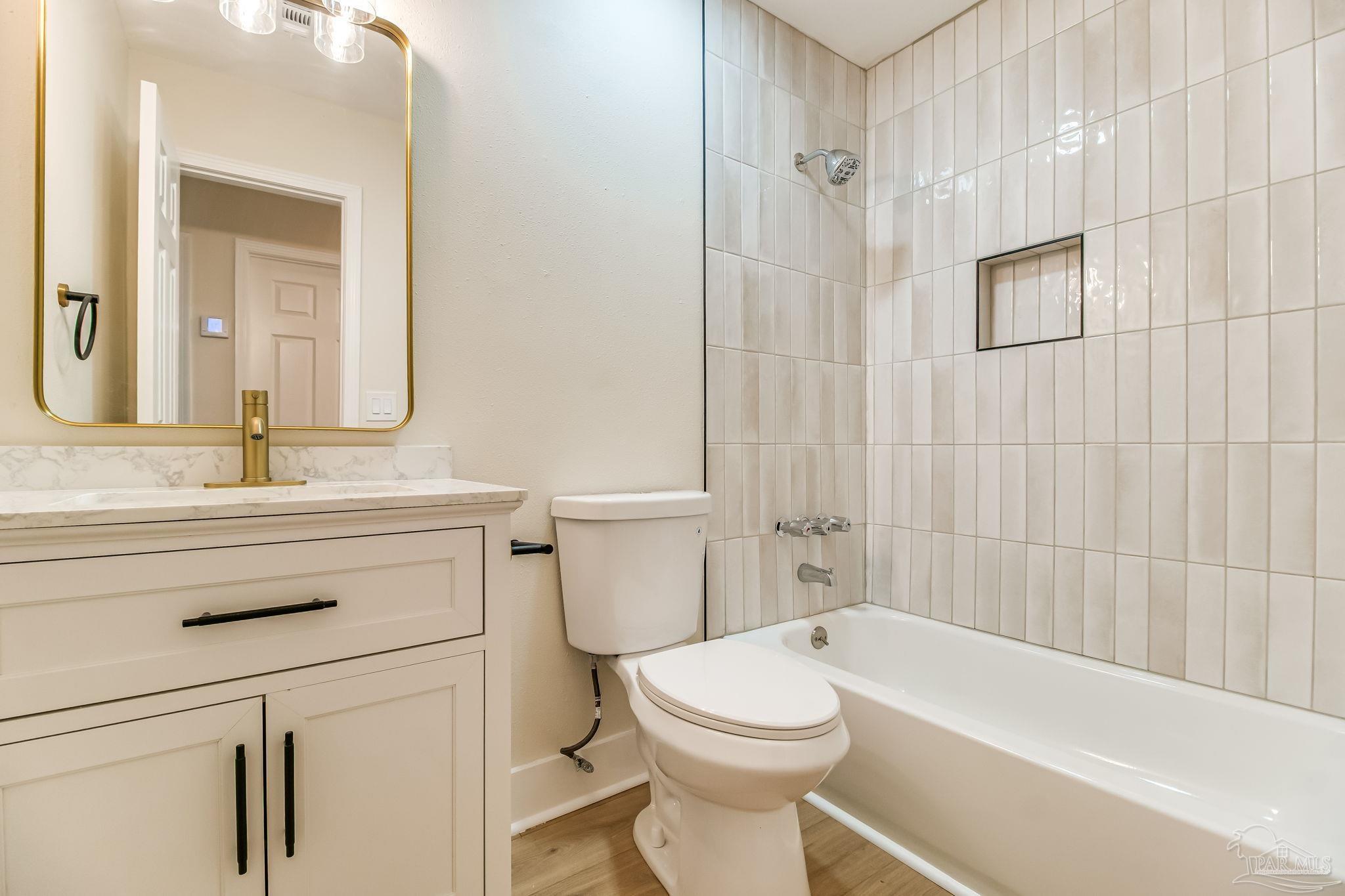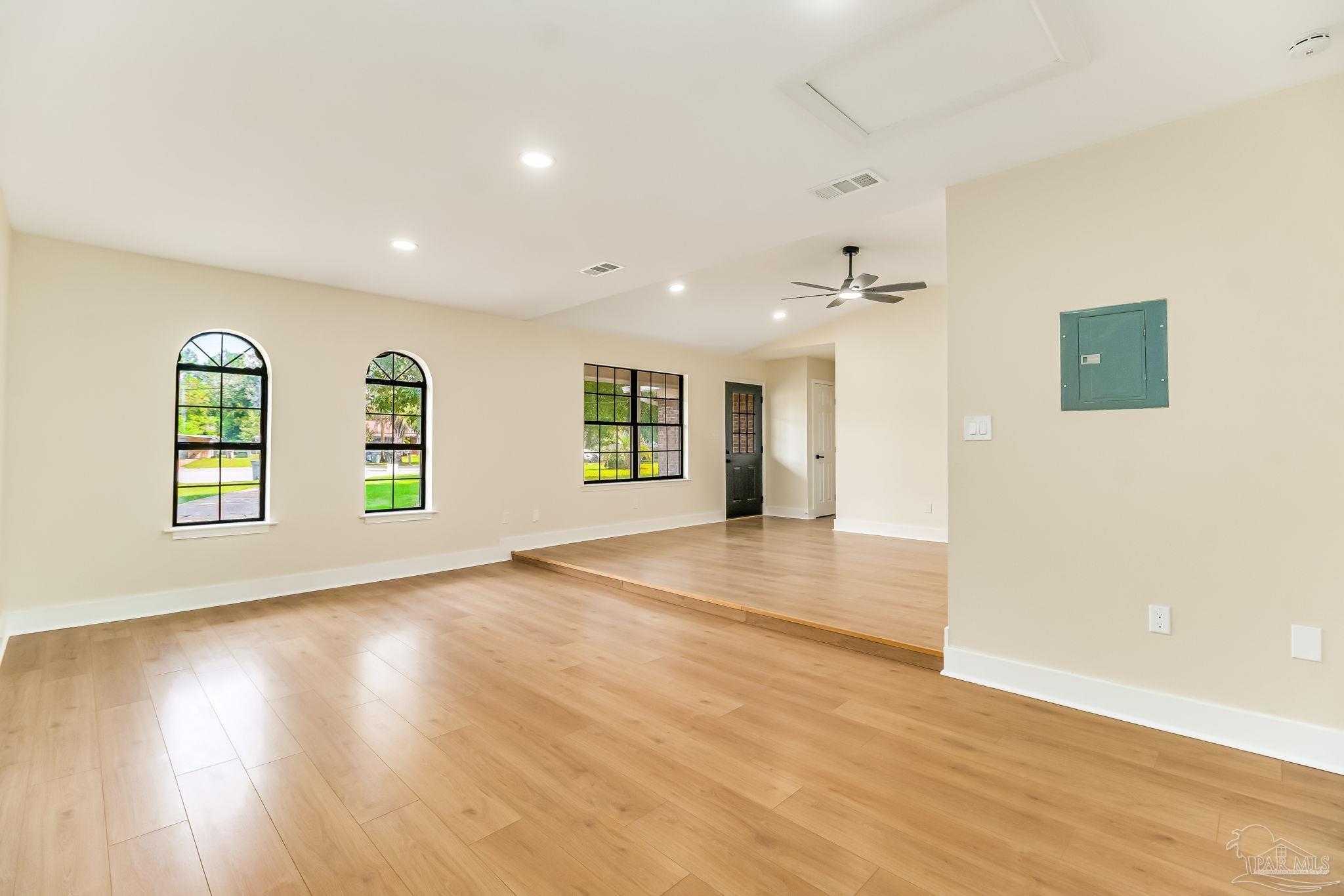 Welcome to this beautifully refreshed 3-bedroom, 1.5-bath home offering 1,416 sq ft of comfort and style. **NEW ROOF 2025, Brand NEW HVAC in and out 2025 and New Water Heater 2025**. Situated on a sprawling .63-acre lot, this property provides plenty of room to relax, entertain, or expand. Step inside to find brand new white cabinets that brighten the kitchen, complemented by Rockwood oak laminate wood flooring that flows throughout. The bathrooms feature new Glacier Bay push flush toilets and a stylish Home Decorators Autumn vanities, creating a modern yet cozy feel. Every room is thoughtfully updated with matte white and black ceiling lamps, adding a touch of contemporary charm. Whether you’re looking for your first home, a peaceful retreat, or a property with space to grow, this one has it all. Just 15 mins from Perdido Key Beach! Don’t miss the opportunity to own this beautifully updated home on one of the largest lots in the area!
