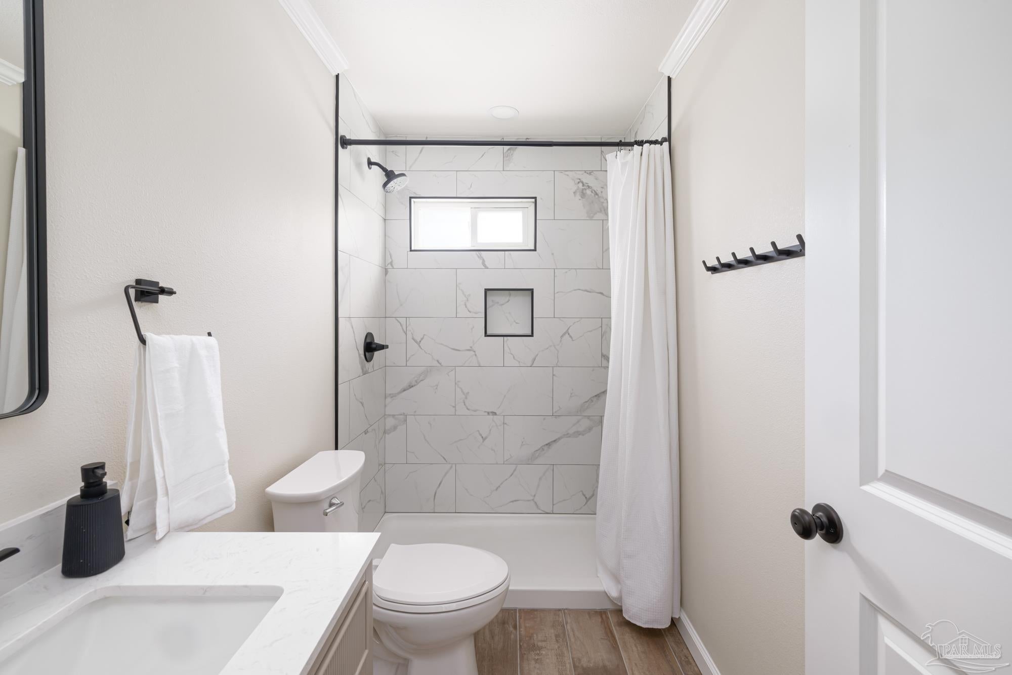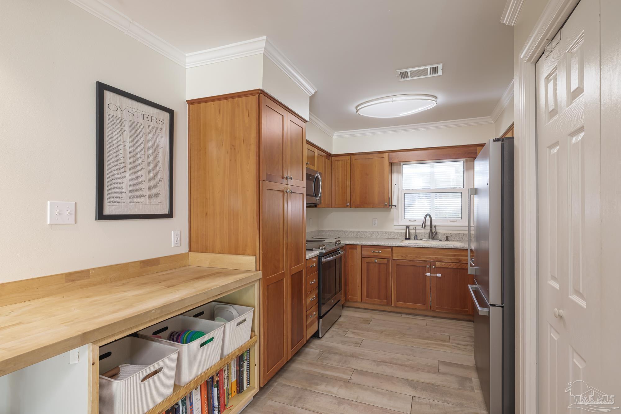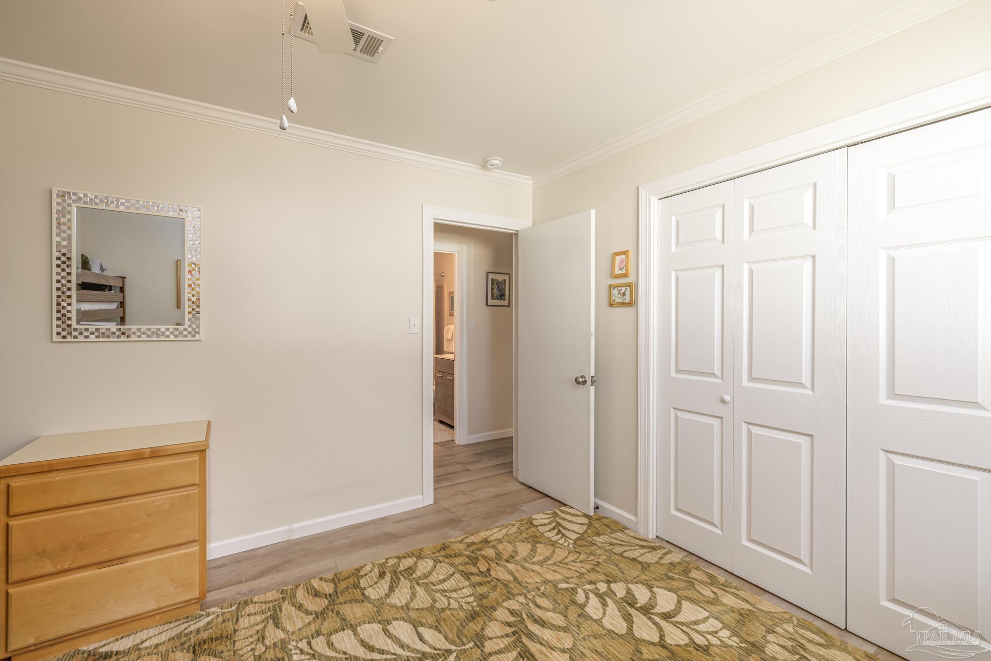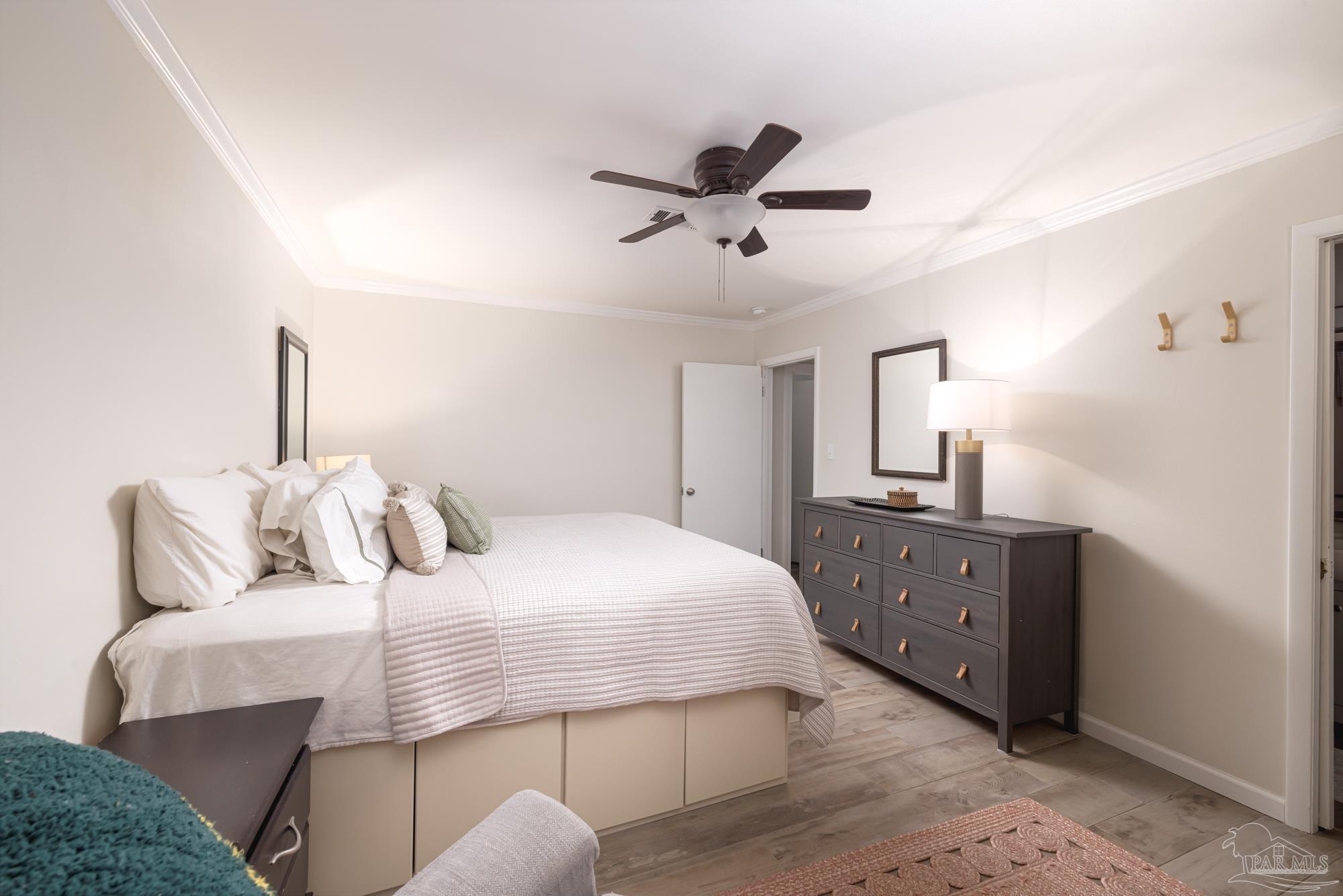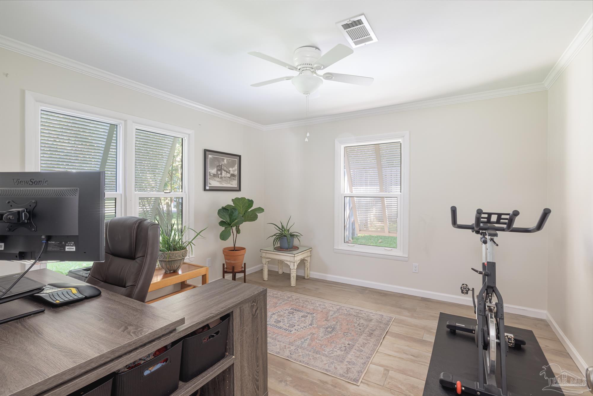 Spacious 5-Bedroom + Office Home on an Expansive Corner Lot in Gulf Breeze Proper. Set back from the road on an enormous corner lot, this beautifully updated Gulf Breeze Proper home offers the perfect blend of comfort, flexibility, and modern upgrades. With five bedrooms plus a dedicated office and over 2,500 square feet of living space, there’s room for everyone to live, work, and play. Step inside to a bright, open layout designed for easy indoor–outdoor living and entertaining. The foyer opens to a large combined living, dining, and kitchen area bathed in natural light from large windows, sliding glass doors, and a central skylight that creates a warm, welcoming focal point. The galley-style kitchen offers ample cabinetry, generous counter space, and stainless steel appliances. Just off the living room, a private office provides the perfect spot for a home workspace, fitness room, or creative studio. Down the main hallway are four spacious bedrooms and a full bath. The bedrooms have plenty of storage and light, with large windows and double closets in each. The primary suite sits at the end of the hall, creating a peaceful retreat with double closets and a tiled shower. With adjoining access to the smallest bedroom, the unique layout is especially convenient for families with a young child. The south wing of the home functions perfectly as a guest or in-law suite, and features its own living room, a fifth bedroom, a laundry room, a full bath, and access to the brand-new two car garage (added in 2024). Outside, enjoy the ultimate year-round entertaining space. The expansive fenced backyard features an outdoor kitchen with a pizza oven, a large patio for dining and relaxing, and plenty of space for children to play. In recent years, this home has seen numerous high-value upgrades, including 400 square feet of additional living space, a new two-car garage, and upgraded, impact-rated windows and exterior doors. Located just minutes from parks and A rated schools!