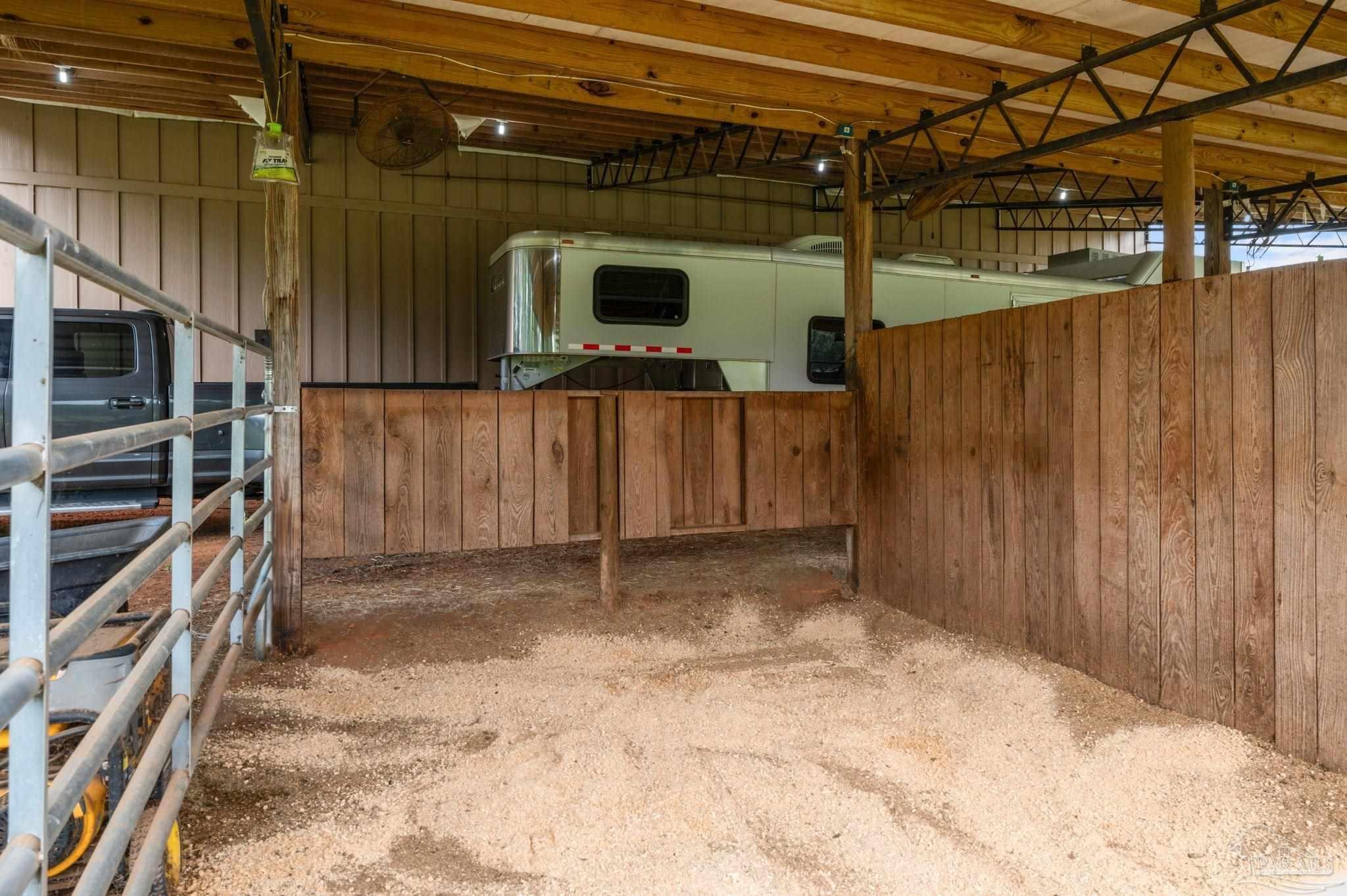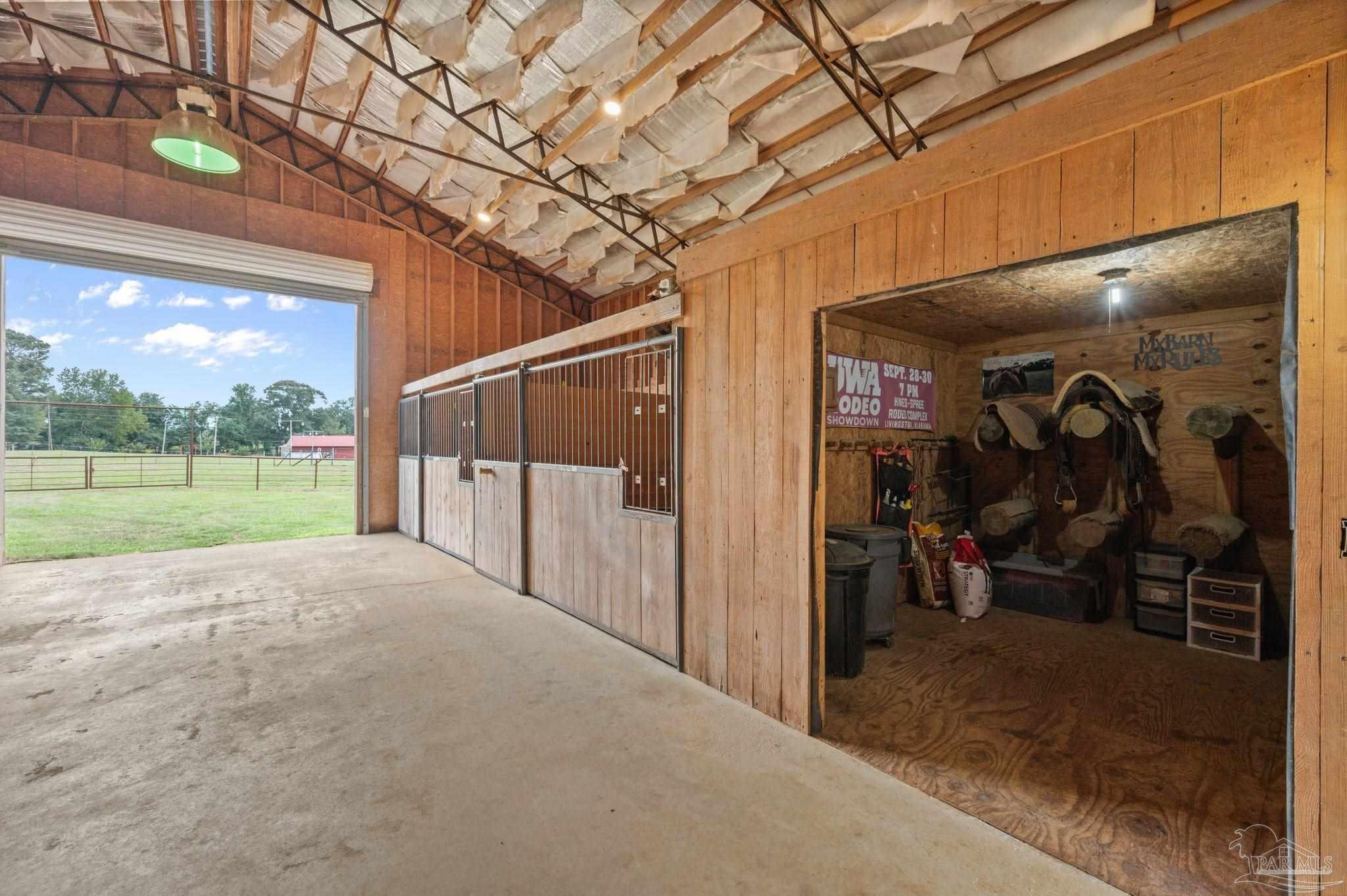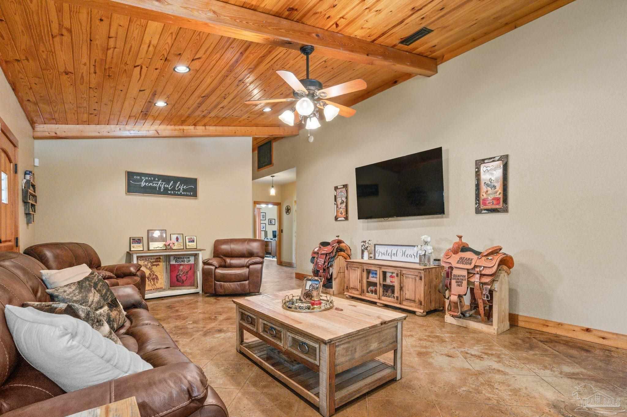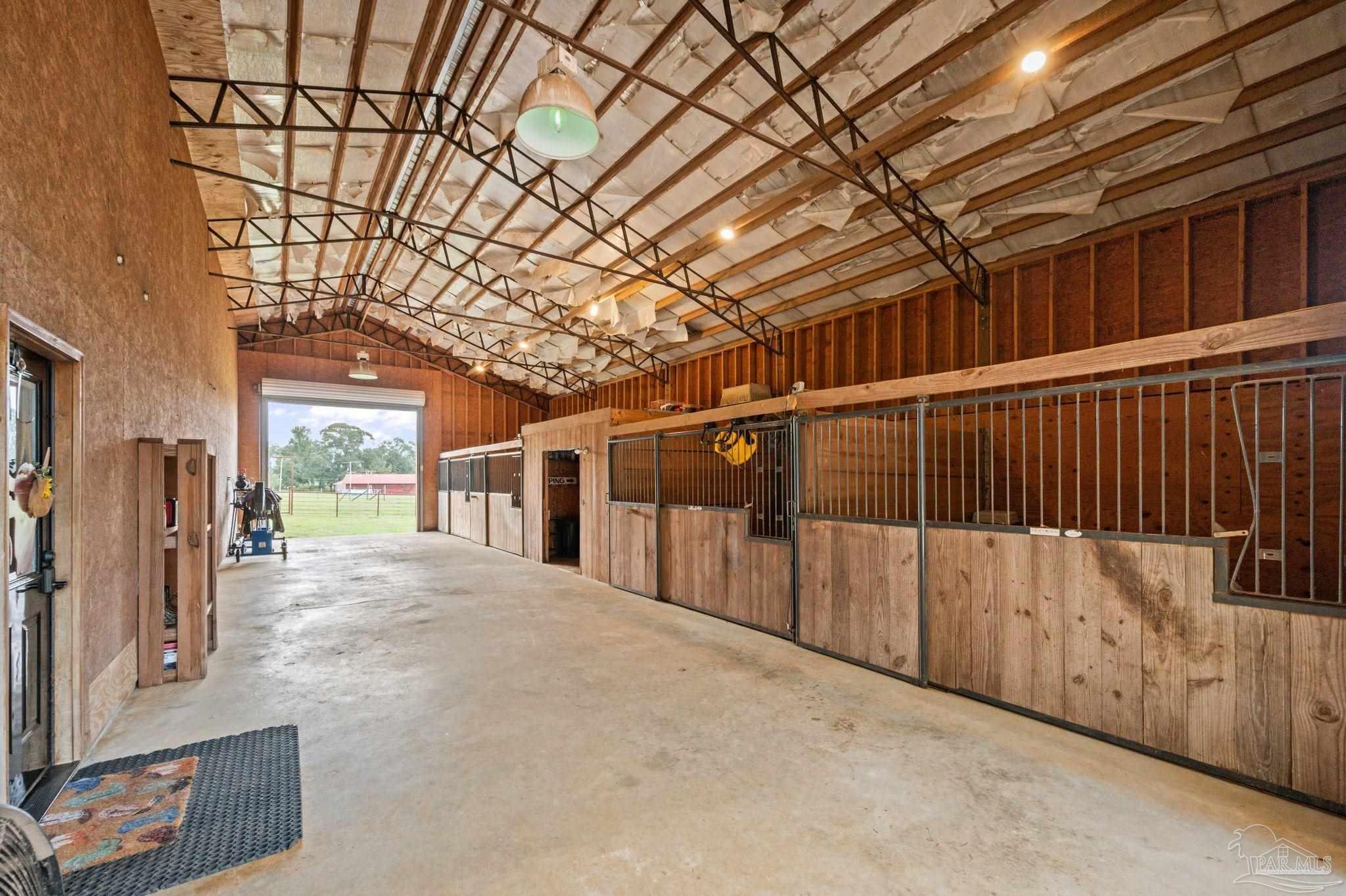 Discover your country oasis in Monroe County, AL! This one-of-a-kind Barndominium sitting on +/- 10 acres blends country charm with modern living across an expansive 7,800 sq ft total and 1,560 sq ft of thoughtfully designed living space. Inside, 14-foot ceilings soar above a warm, inviting layout featuring 3 bedrooms and 1.5 baths, with striking custom stained concrete floors that add texture and depth. Outdoor enthusiasts will be delighted by the fully equipped equestrian amenities: 9 separate livestock paddocks, 7 stalls, a complete tack and feed room, sturdy pipe fencing, and a lighted 150’ x 225’ arena with an announcer’s stand for events and practice. Convenience and practicality abound with a gated drive, RV/horse trailer cover with hookups, a carport, and two roll-up barn doors for easy access. Peach trees are an added bonus! Location could not be better - just 70 miles from Pensacola or Mobile, 90 miles to Gulf Shores, and within easy reach of Montgomery (120 miles) and New Orleans (200 miles). This home truly has it all, so call us today and make this property the address of your dreams!