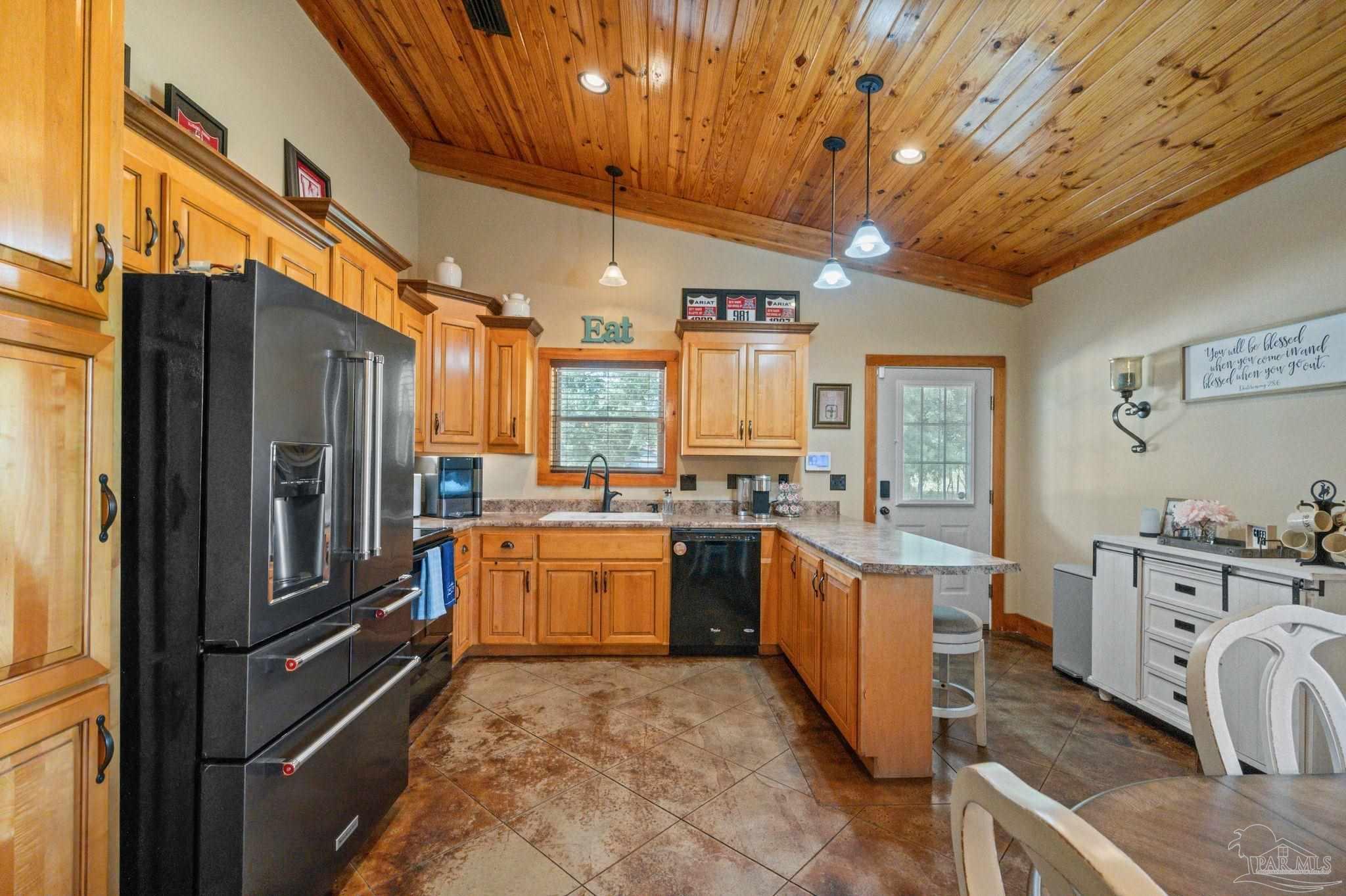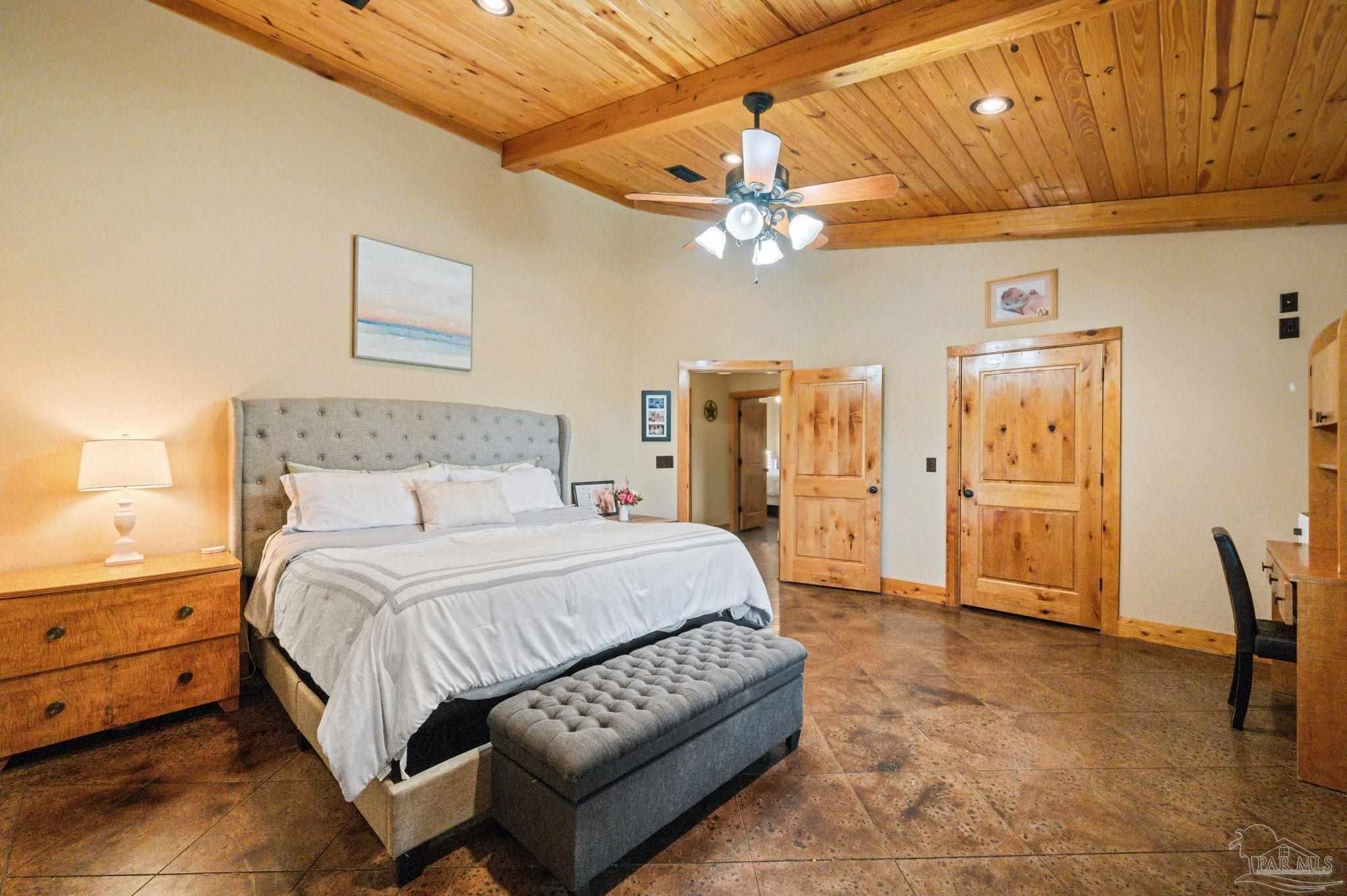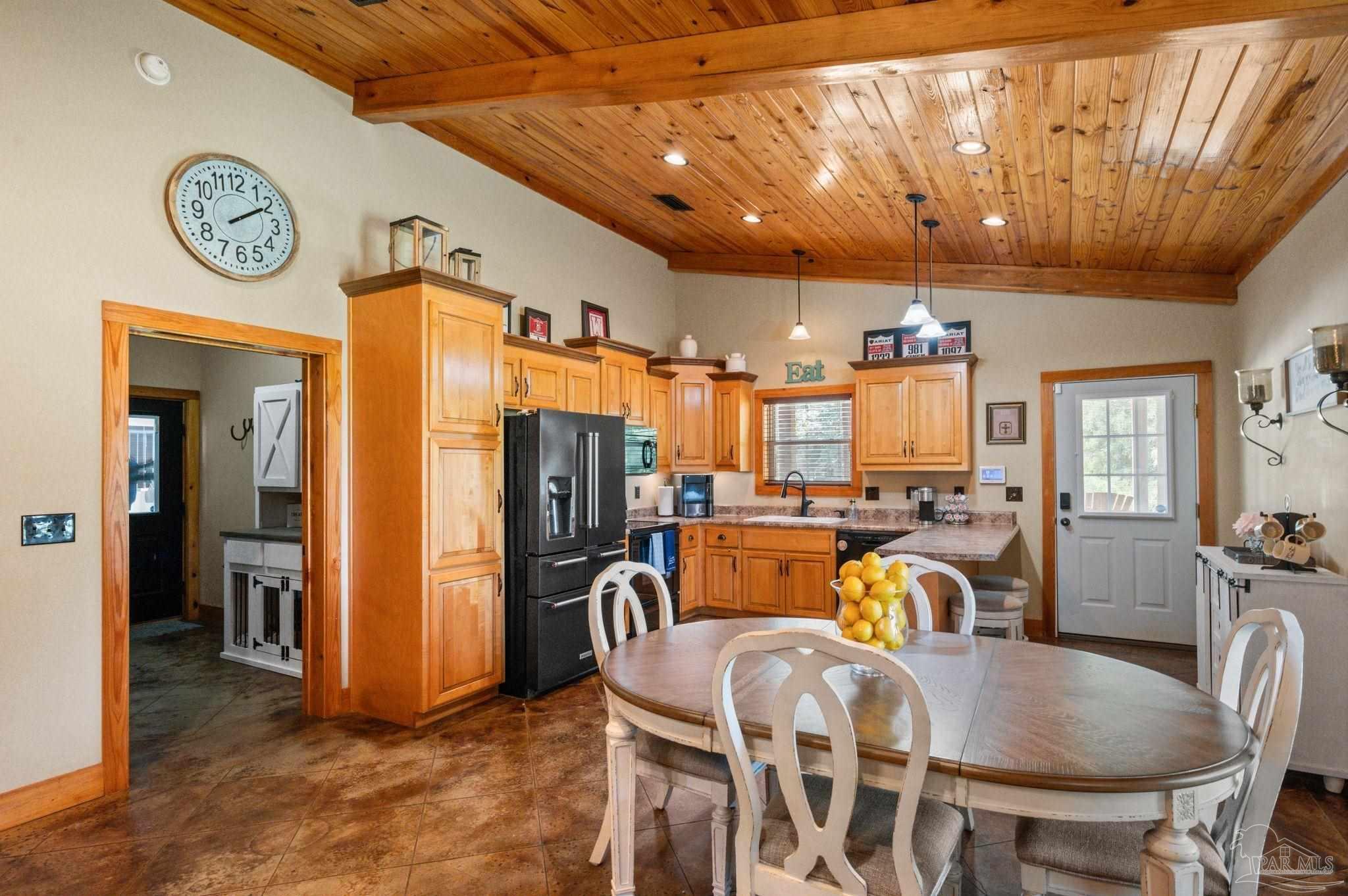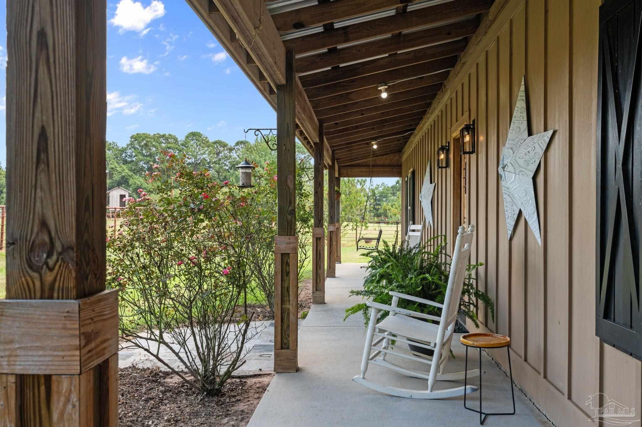 Discover your country oasis in Monroe County, AL! This one-of-a-kind Barndominium sitting on +/- 10 acres blends country charm with modern living across an expansive 7,800 sq ft total and 1,560 sq ft of thoughtfully designed living space. Inside, 14-foot ceilings soar above a warm, inviting layout featuring 3 bedrooms and 1.5 baths, with striking custom stained concrete floors that add texture and depth. Outdoor enthusiasts will be delighted by the fully equipped equestrian amenities: 9 separate livestock paddocks, 7 stalls, a complete tack and feed room, sturdy pipe fencing, and a lighted 150’ x 225’ arena with an announcer’s stand for events and practice. Convenience and practicality abound with a gated drive, RV/horse trailer cover with hookups, a carport, and two roll-up barn doors for easy access. Peach trees are an added bonus! Location could not be better - just 70 miles from Pensacola or Mobile, 90 miles to Gulf Shores, and within easy reach of Montgomery (120 miles) and New Orleans (200 miles). This home truly has it all, so call us today and make this property the address of your dreams!