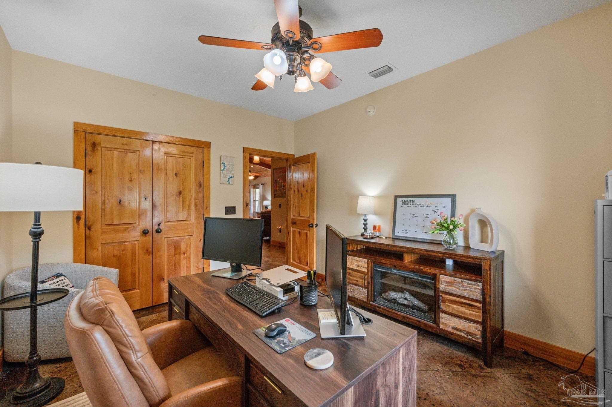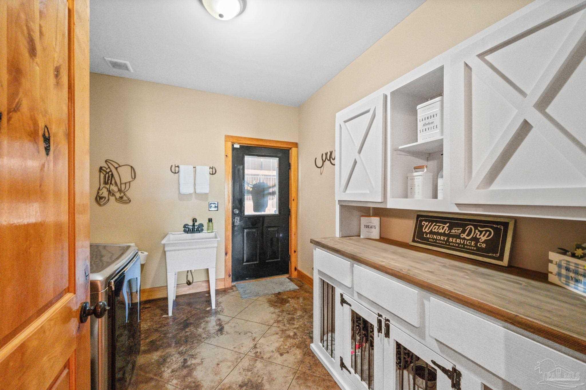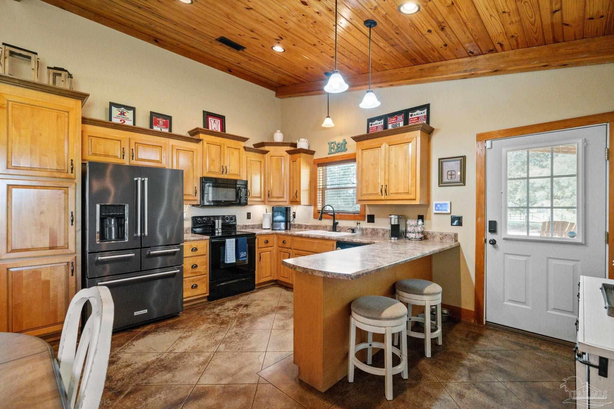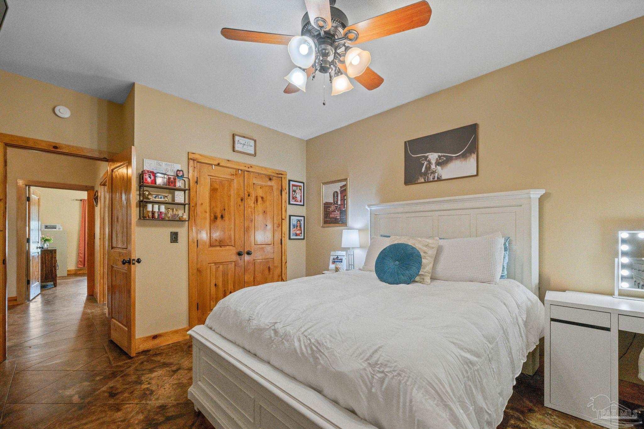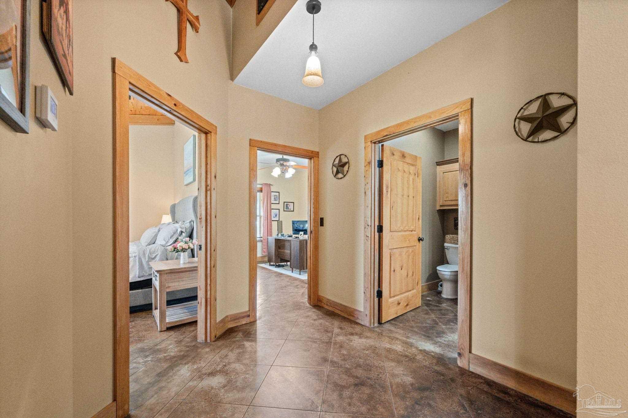 Discover your country oasis in Monroe County, AL! This one-of-a-kind Barndominium sitting on +/- 10 acres blends country charm with modern living across an expansive 7,800 sq ft total and 1,560 sq ft of thoughtfully designed living space. Inside, 14-foot ceilings soar above a warm, inviting layout featuring 3 bedrooms and 1.5 baths, with striking custom stained concrete floors that add texture and depth. Outdoor enthusiasts will be delighted by the fully equipped equestrian amenities: 9 separate livestock paddocks, 7 stalls, a complete tack and feed room, sturdy pipe fencing, and a lighted 150’ x 225’ arena with an announcer’s stand for events and practice. Convenience and practicality abound with a gated drive, RV/horse trailer cover with hookups, a carport, and two roll-up barn doors for easy access. Peach trees are an added bonus! Location could not be better - just 70 miles from Pensacola or Mobile, 90 miles to Gulf Shores, and within easy reach of Montgomery (120 miles) and New Orleans (200 miles). This home truly has it all, so call us today and make this property the address of your dreams!