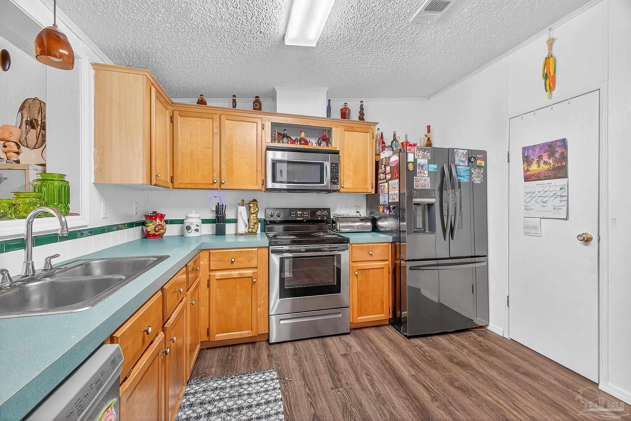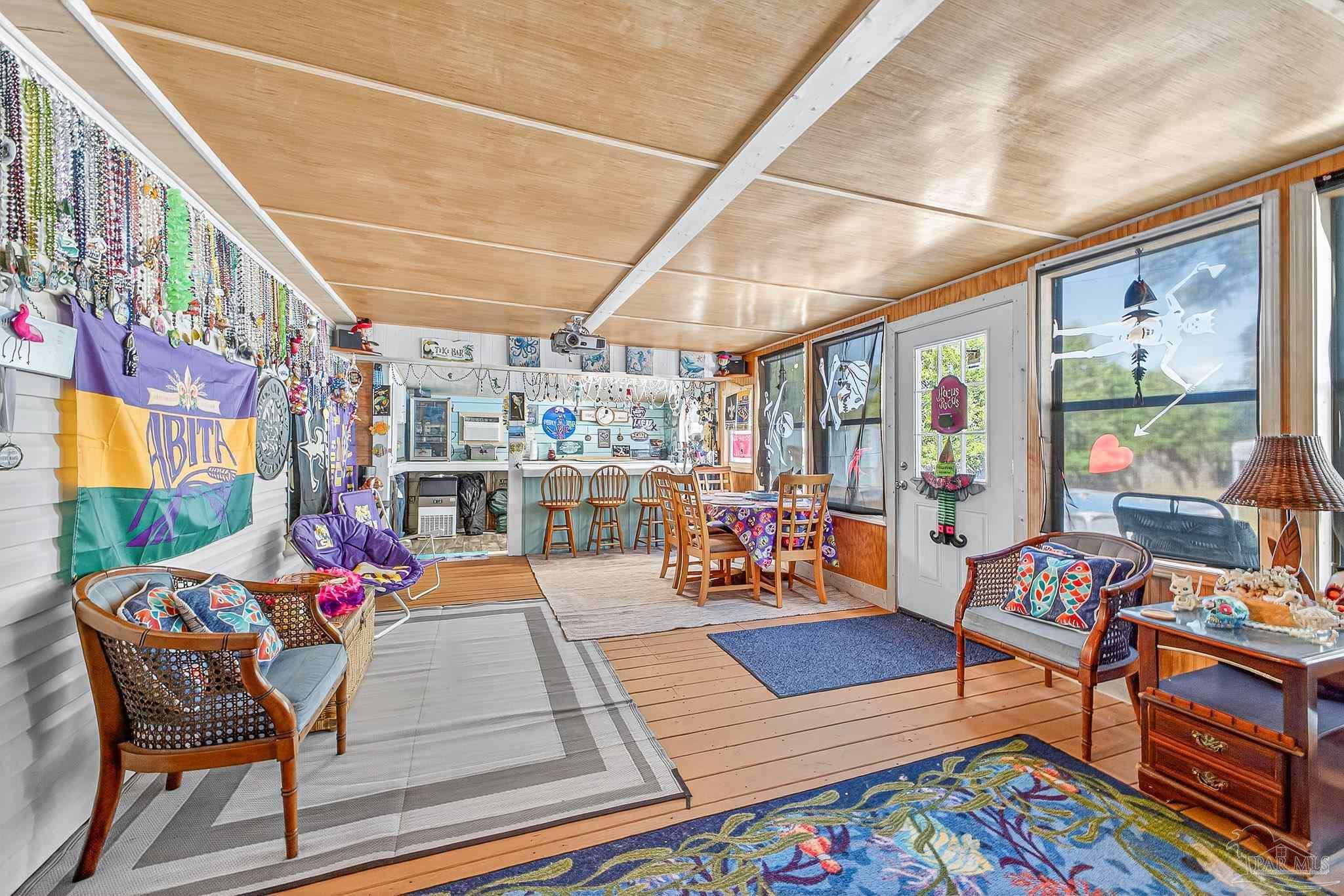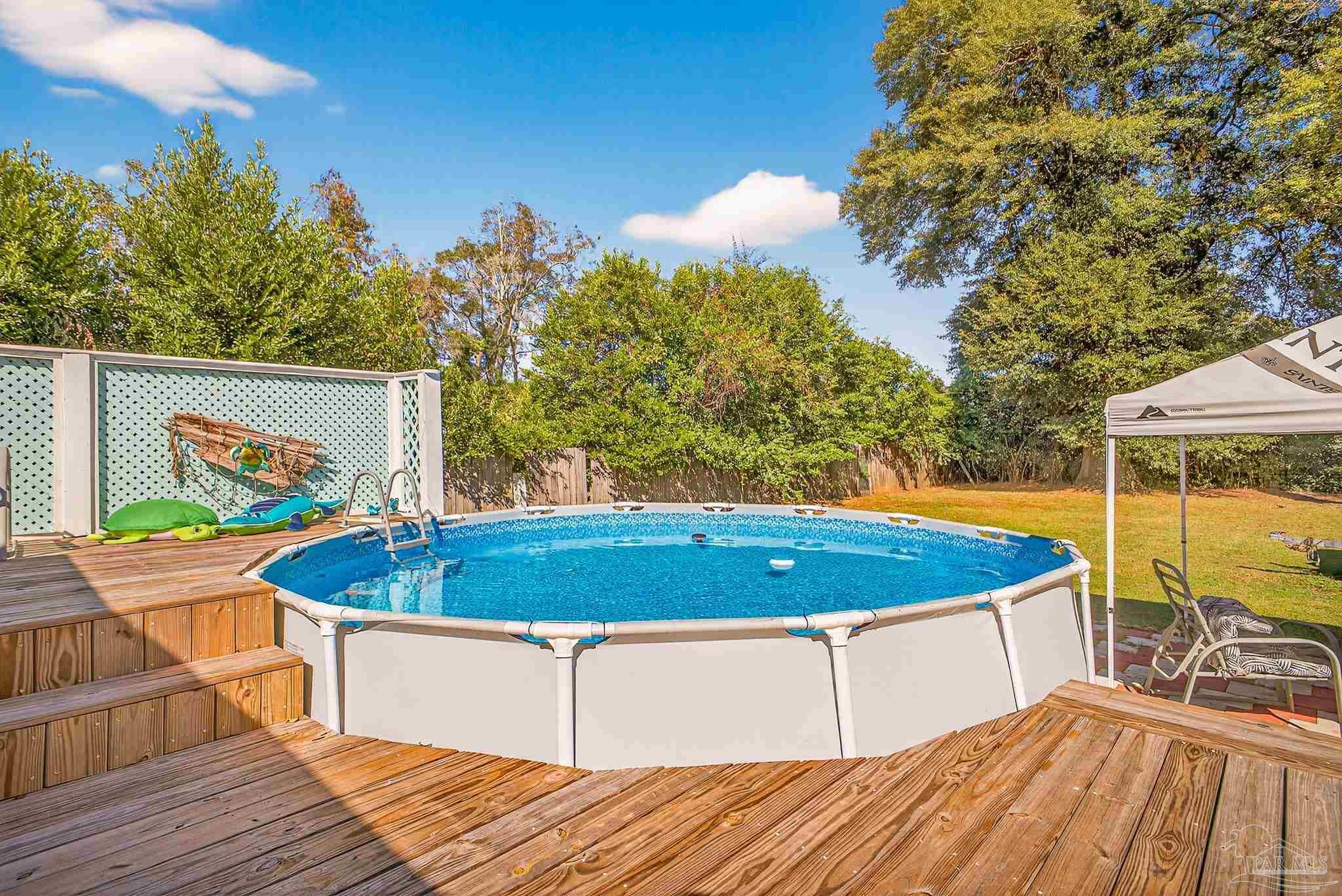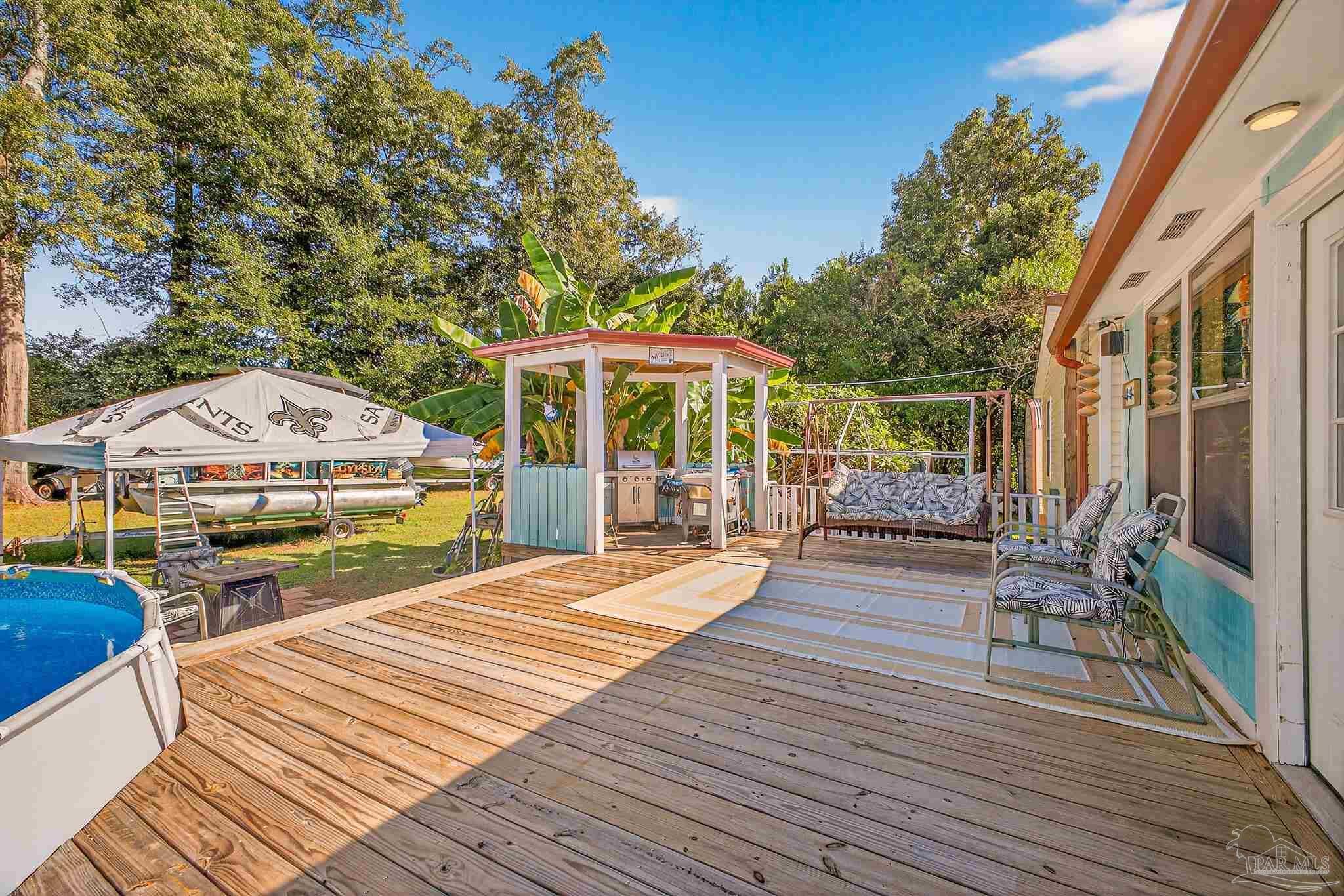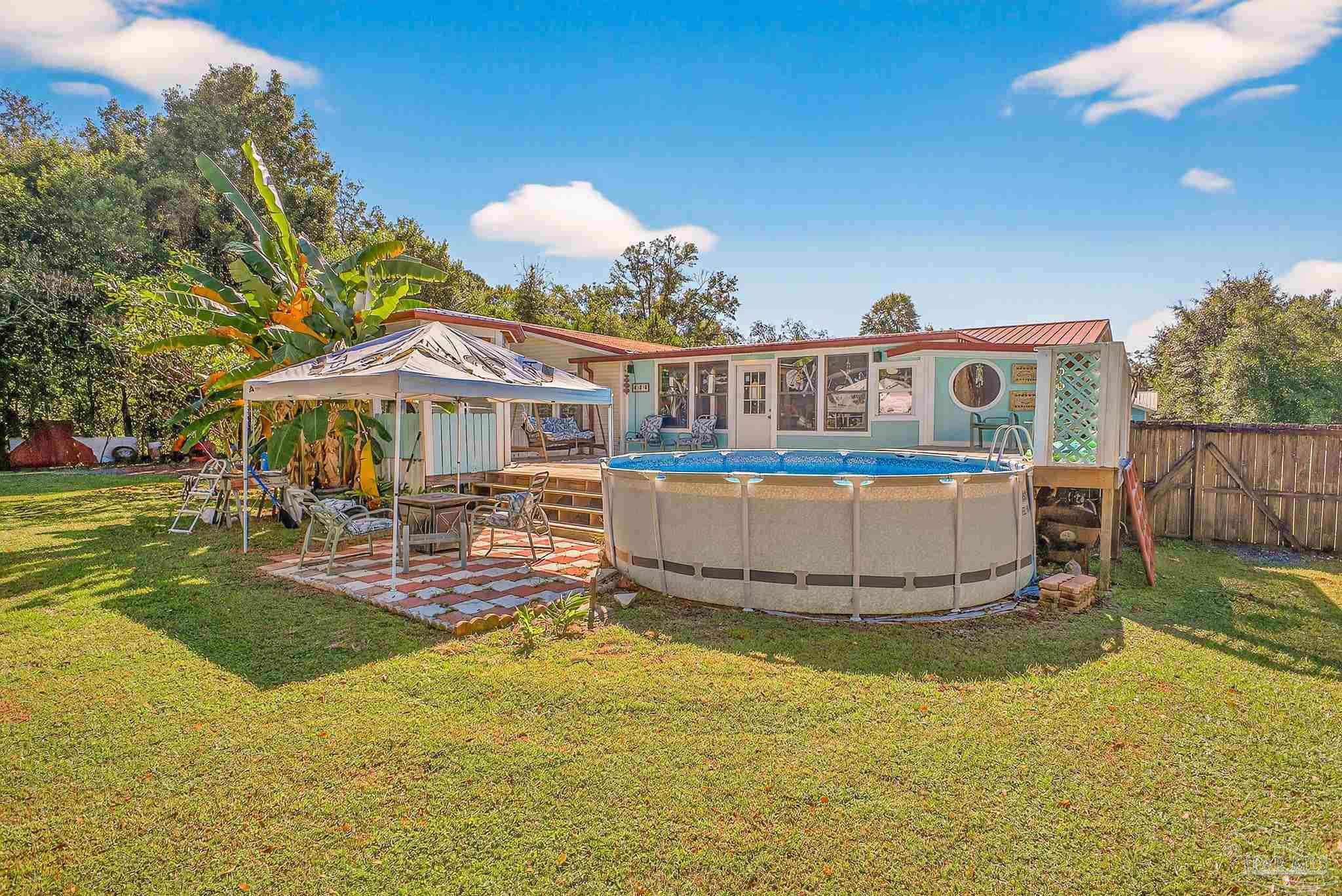 Welcome home to this spacious and inviting property, perfectly situated on nearly half an acre of lush land! As you arrive, you’ll immediately notice the ample parking area with space for 4+ vehicles, along with a 12x24 storage shed that is ideal for extra parking, hobbies, or a workshop. Step inside to discover an open and airy floor plan designed for comfortable living and entertaining. The formal dining room greets you to the left, with the kitchen just ahead, seamlessly flowing into the warm and welcoming living area. To the left of the dining room, you’ll find the private primary suite complete with its own bath, while to the right of the entryway are two additional bedrooms and a versatile craft room perfect for hobbies, an office, or a guest space. Continue through the living room to the expansive enclosed Florida room, fully heated and cooled, featuring a built-in bar and a cozy electric fireplace, creating the perfect space for year-round enjoyment. Step outside to your large back deck overlooking the sparkling above-ground pool with a brand-new sand filter and a charming gazebo offering endless potential for outdoor relaxation and entertaining. Surrounded by mature shade trees, banana trees, and a fruiting fig tree, this property truly offers a serene retreat with plenty of room to live, play, and grow.