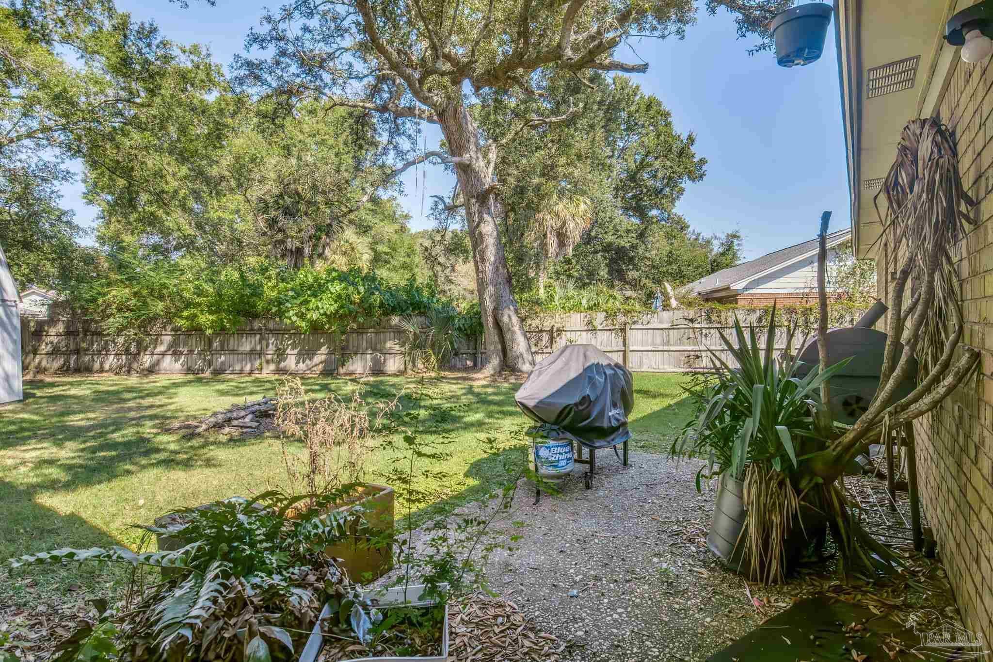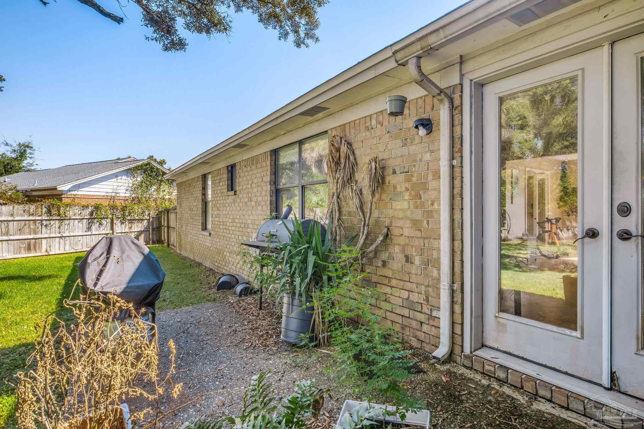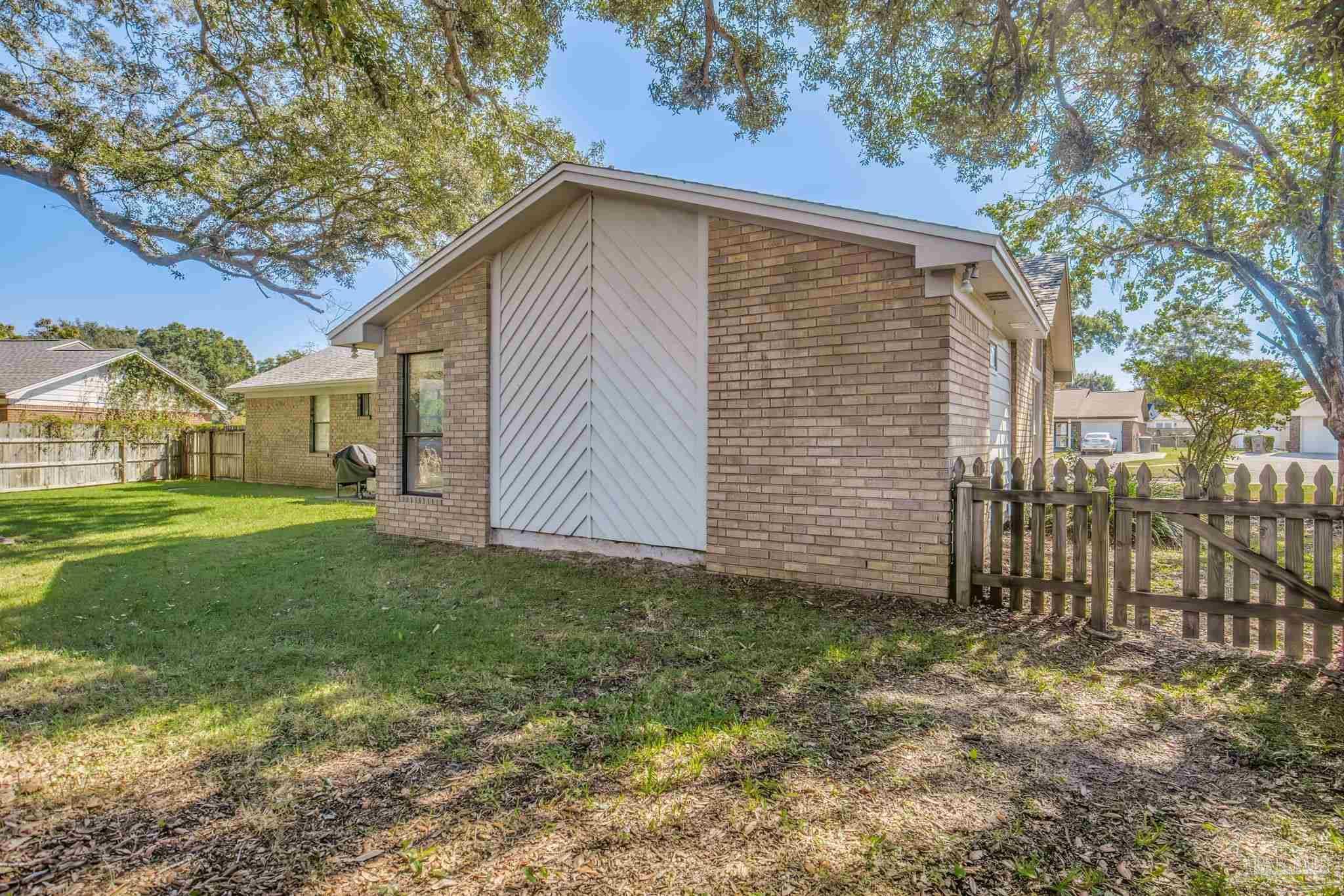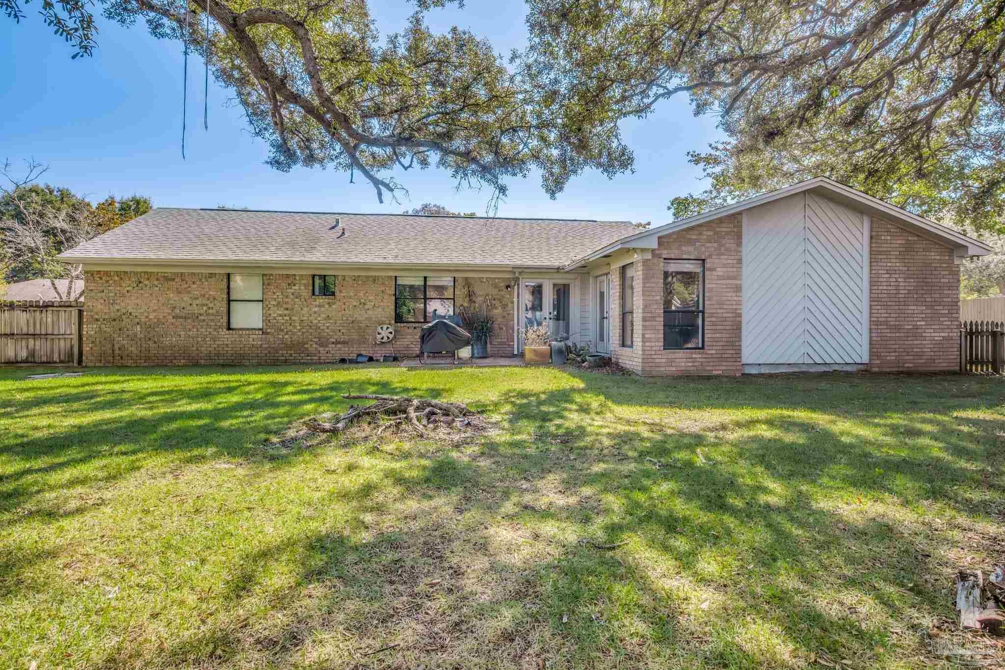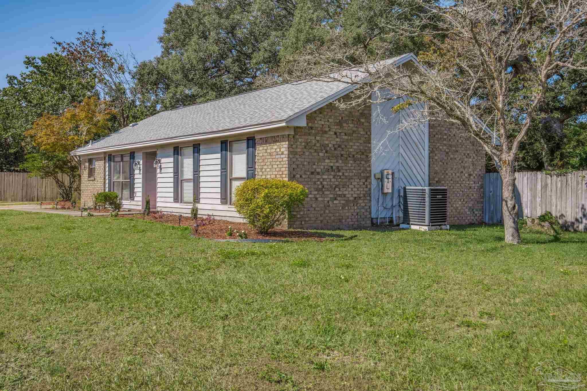 This single-story brick home offers space, comfort, and updates in a great north Pensacola location. Inside you’ll find two true primary suites, each with its own full bath plus two additional bedrooms, giving everyone plenty of room and privacy. The living area feels open and bright with vaulted ceilings, recessed lighting, crown molding, and built-in bookcases. The kitchen features granite counters, modern appliances, and a dining area that looks out over the fenced backyard. Major updates include a new roof (2020) with hurricane clips, HVAC under 3 years, and a water heater under 5 years. Energy-efficient touches like double-pane windows, insulated walls and ceilings, and a ridge vent help keep things comfortable year-round. Out back, enjoy a private yard with a storage shed and patio, ideal for outdoor dining, gardening, or pets. Convenient access to I-10 makes commuting easy, and grocery stores, restaurants, and shopping along Nine Mile Road are just minutes away. 5.5 mi to UWF Trails • 6 mi to The Drowsy Poet Coffee