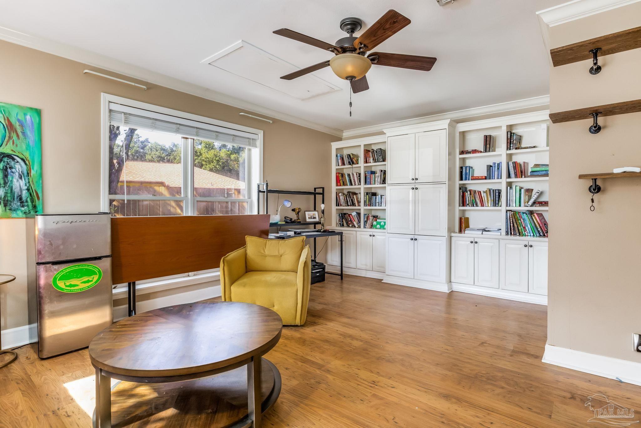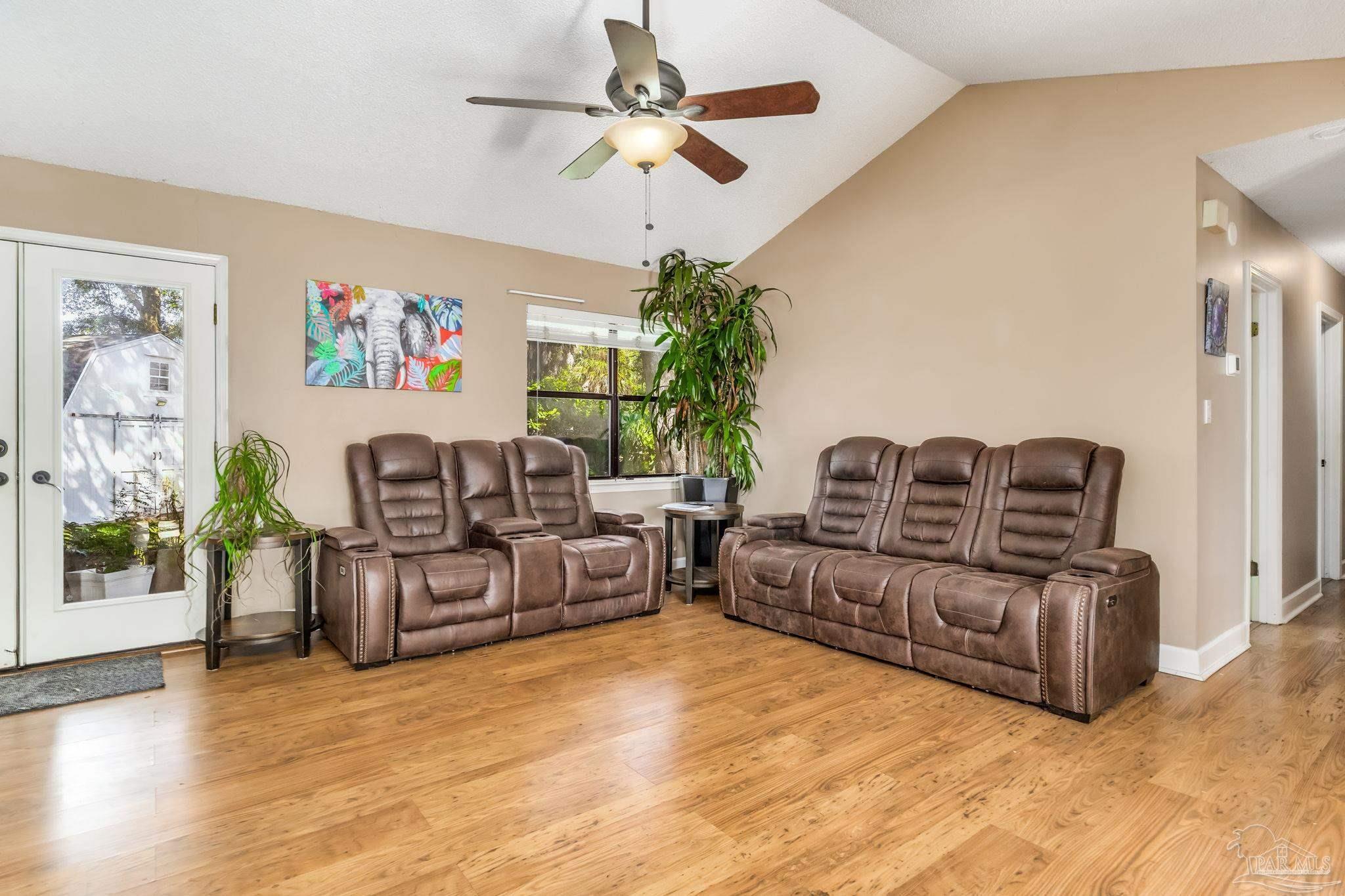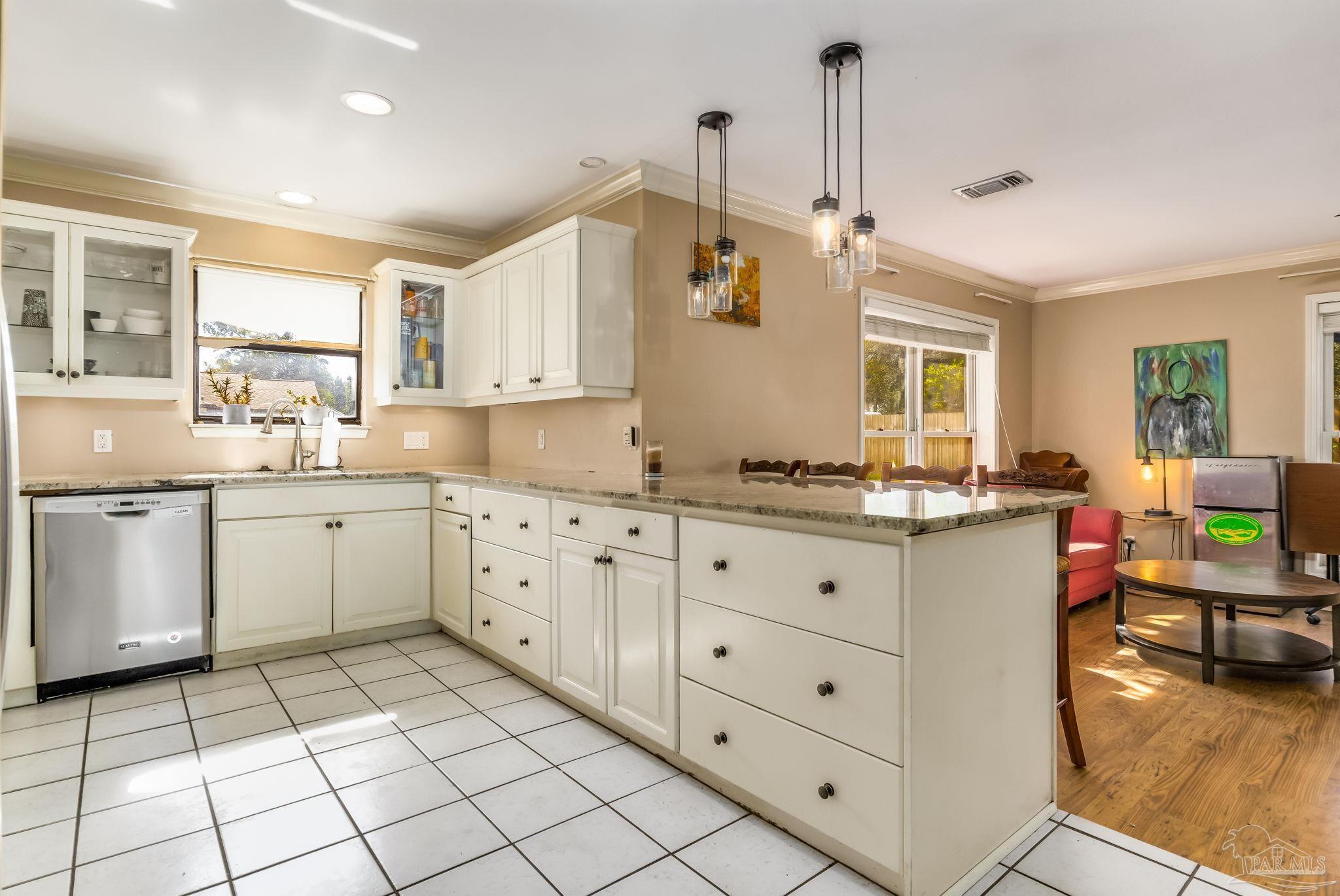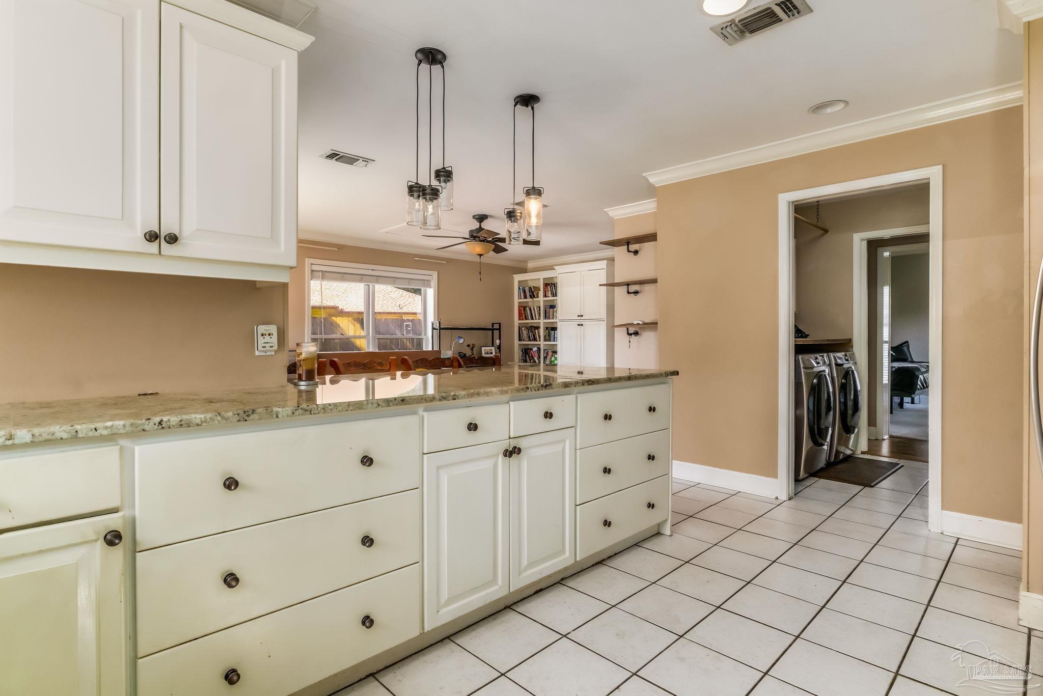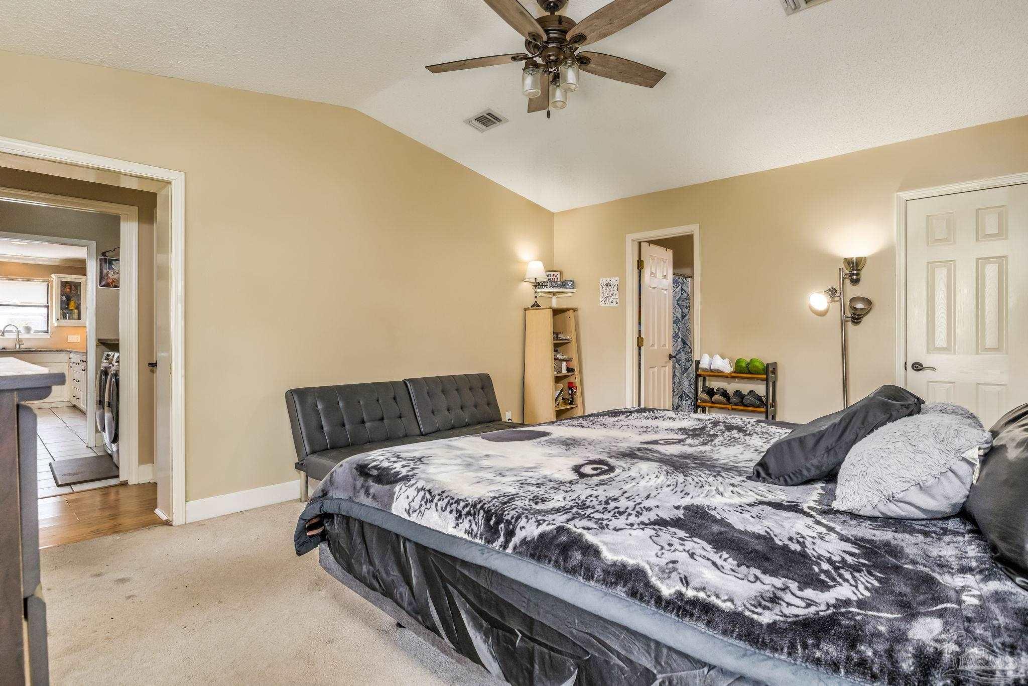 This single-story brick home offers space, comfort, and updates in a great north Pensacola location. Inside you’ll find two true primary suites, each with its own full bath plus two additional bedrooms, giving everyone plenty of room and privacy. The living area feels open and bright with vaulted ceilings, recessed lighting, crown molding, and built-in bookcases. The kitchen features granite counters, modern appliances, and a dining area that looks out over the fenced backyard. Major updates include a new roof (2020) with hurricane clips, HVAC under 3 years, and a water heater under 5 years. Energy-efficient touches like double-pane windows, insulated walls and ceilings, and a ridge vent help keep things comfortable year-round. Out back, enjoy a private yard with a storage shed and patio, ideal for outdoor dining, gardening, or pets. Convenient access to I-10 makes commuting easy, and grocery stores, restaurants, and shopping along Nine Mile Road are just minutes away. 5.5 mi to UWF Trails • 6 mi to The Drowsy Poet Coffee