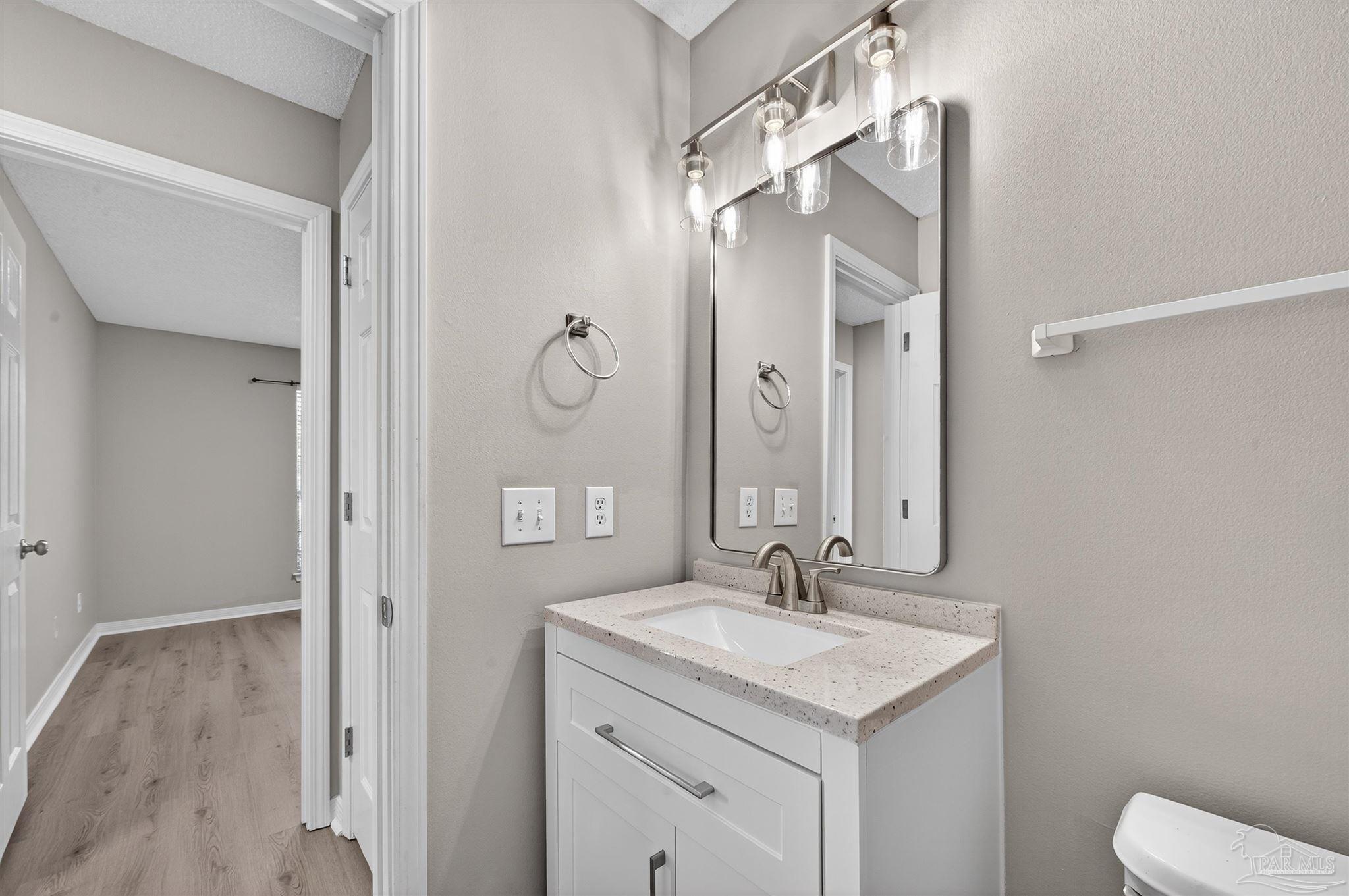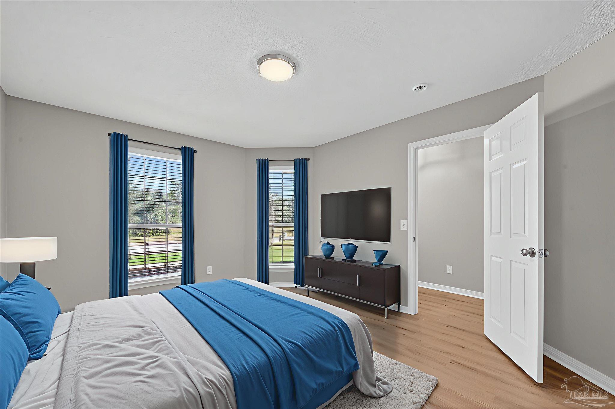 Beautiful 5-Bedroom 3 bath Home Minutes From Perdido Key Beaches! Come discover this immaculate, spacious 5-bedroom, 3-bath all-brick home perfectly situated just outside NAS Pensacola and only a short drive to the white-sand beaches of Perdido Key. Offering comfort, convenience, and coastal living at its finest, this home provides plenty of space for relaxing, entertaining, and enjoying everything the Gulf Coast lifestyle has to offer. Inside, you’ll find a split-bedroom floor plan with an inviting open-concept layout. The large master suite features a luxurious bathroom with double vanity sinks, a soaking garden tub, a separate walk-in shower, and two spacious walk-in closets. Natural light fills the home through plentiful windows, creating a bright and cheerful atmosphere throughout the day. Step outside to your privacy-fenced backyard—the perfect space for summer get-togethers, grilling with friends, or simply relaxing with a glass of sweet tea. The neighborhood offers additional outdoor amenities just a short stroll away, including a shaded playground, large picnic pavilion, and walking/jogging paths ideal for morning exercise or evening strolls. Nature lovers and outdoor enthusiasts will appreciate the home’s close proximity to Perdido Key beaches, Big Lagoon State Park, and Tarkiln Bayou Preserve, where you can enjoy fishing, boating, kayaking, hiking, and other recreational activities year-round. Golf courses, sports fields, and local dining are also just minutes away. If you’ve been searching for a beautifully maintained home in a peaceful, convenient location near the best of Pensacola’s coastal attractions—this one checks all the boxes. Schedule your private showing today and come experience the perfect blend of comfort, space, and coastal charm **To help you envision how this space could look furnished, some photos have been virtually staged. Actual property is unfurnished.