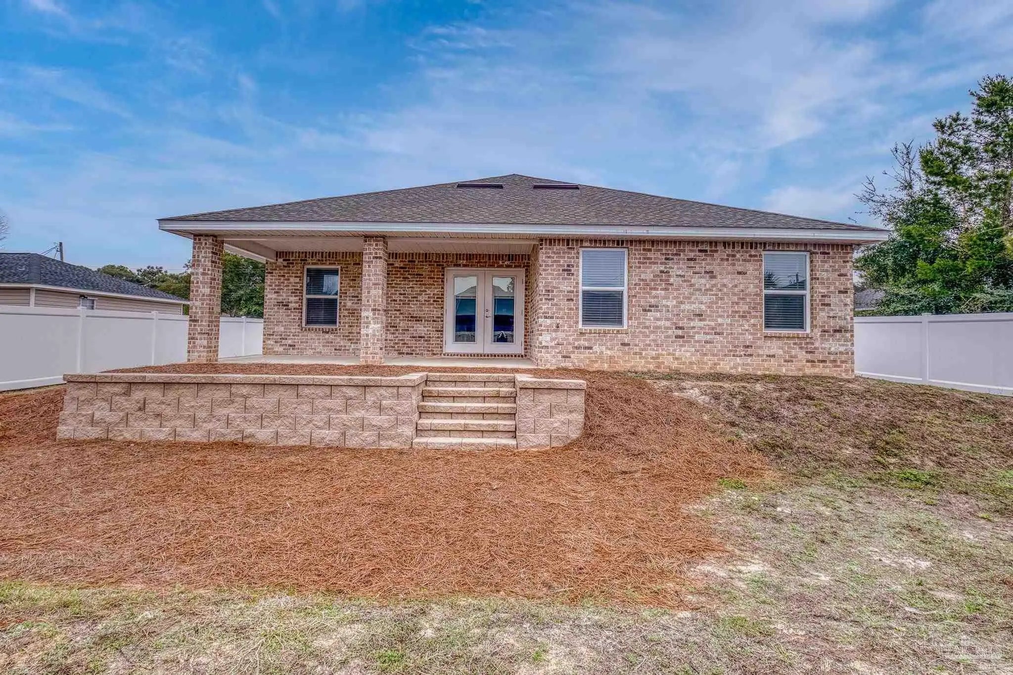 Welcome to this charming brick home featuring 3 bedrooms and 2 full bathrooms, offering 1,690 square feet of comfortable living space on a .21-acre lot. Tucked away in a quiet cul-de-sac, this home greets you with light, neutral colors throughout its open floor plan, creating a warm and inviting atmosphere. The kitchen is designed to impress with an island, sleek white cabinetry, and a seamless flow into the living and dining areas—perfect for both daily living and entertaining. The bedrooms and bathrooms are thoughtfully arranged for comfort and functionality. Step outside to enjoy a large covered patio and a fully fenced backyard—ideal for relaxing or hosting gatherings.
