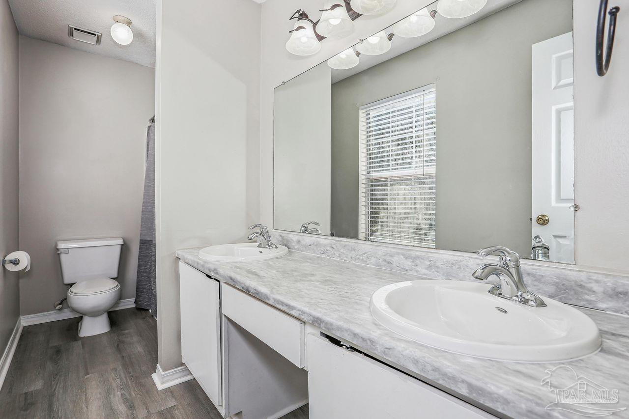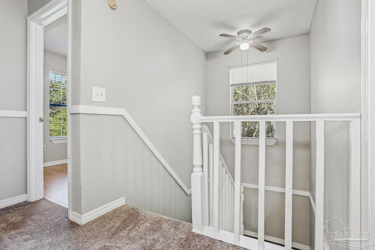 Centrally located and move-in ready! This updated 3-bedroom, 2.5-bath home offers comfort and convenience just minutes from I-10. All bedrooms are located upstairs, providing a quiet retreat, while the main level features a bright and open layout with a half bath for guests. The home has been recently refreshed with new flooring and paint throughout, and the bathrooms feature modern updates including upgraded vanities and new flooring. Enjoy extra living space in the bonus Florida room, perfect for a home office, playroom, or relaxation area. Outside, you’ll find a large fenced yard with a back deck—ideal for entertaining or enjoying the outdoors. Additional features include a one-car garage and a great location close to shopping, dining, and schools.