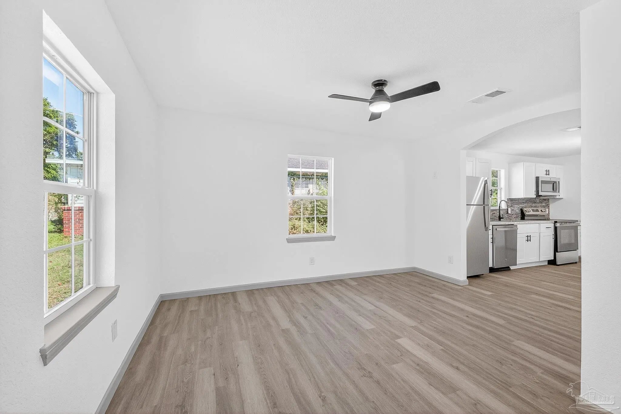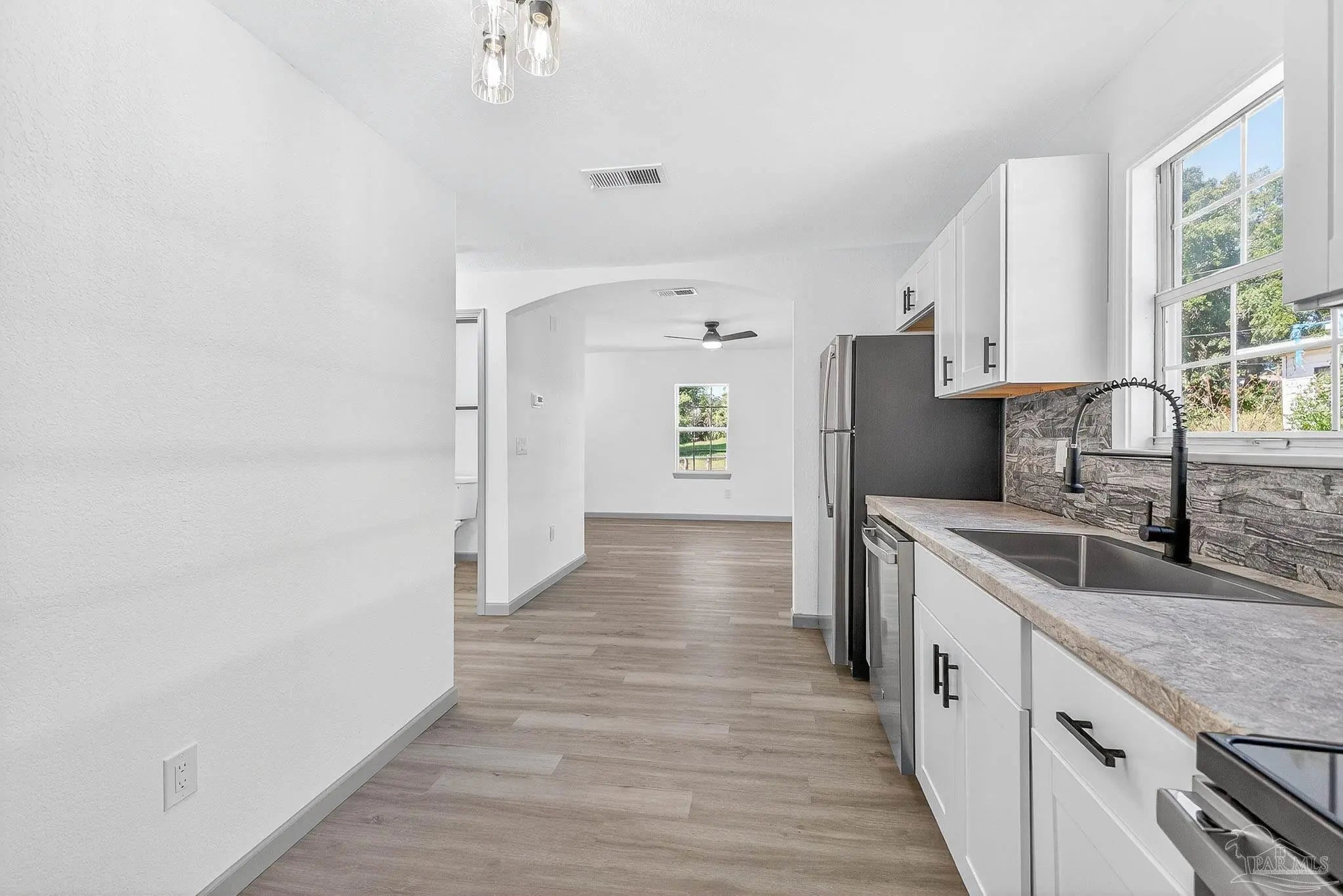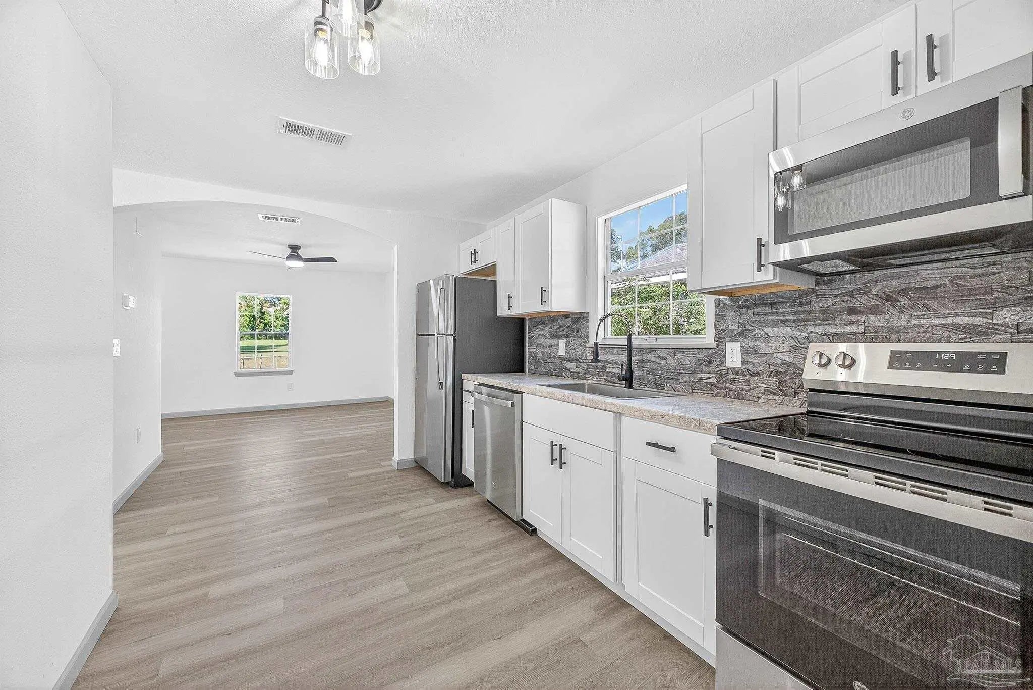 Completely remodeled 2-bedroom, 1.5-bath home located just minutes from Downtown Pensacola and the beach. This move-in-ready property features all-new systems and finishes throughout, including a new roof, HVAC, electrical, plumbing, flooring, kitchen, appliances, lighting, and interior/exterior paint. The modern kitchen offers white shaker cabinets, stainless steel appliances, and a designer backsplash. The bathroom has been fully updated with a new vanity, fixtures, and tub/shower surround. Enjoy the clean, modern aesthetic with luxury vinyl plank flooring and neutral colors throughout. Conveniently located near local restaurants, shopping, entertainment, Blue Wahoos Stadium, and Pensacola’s beautiful waterfront. Perfect for first-time homebuyers or investors looking for a turnkey property in a prime location.