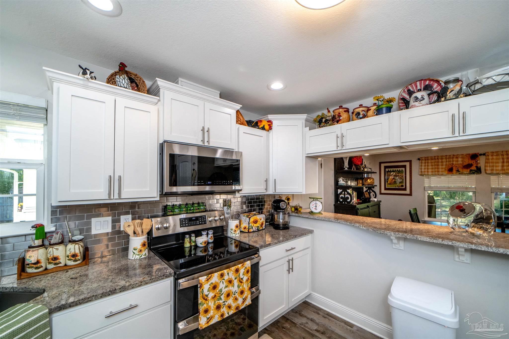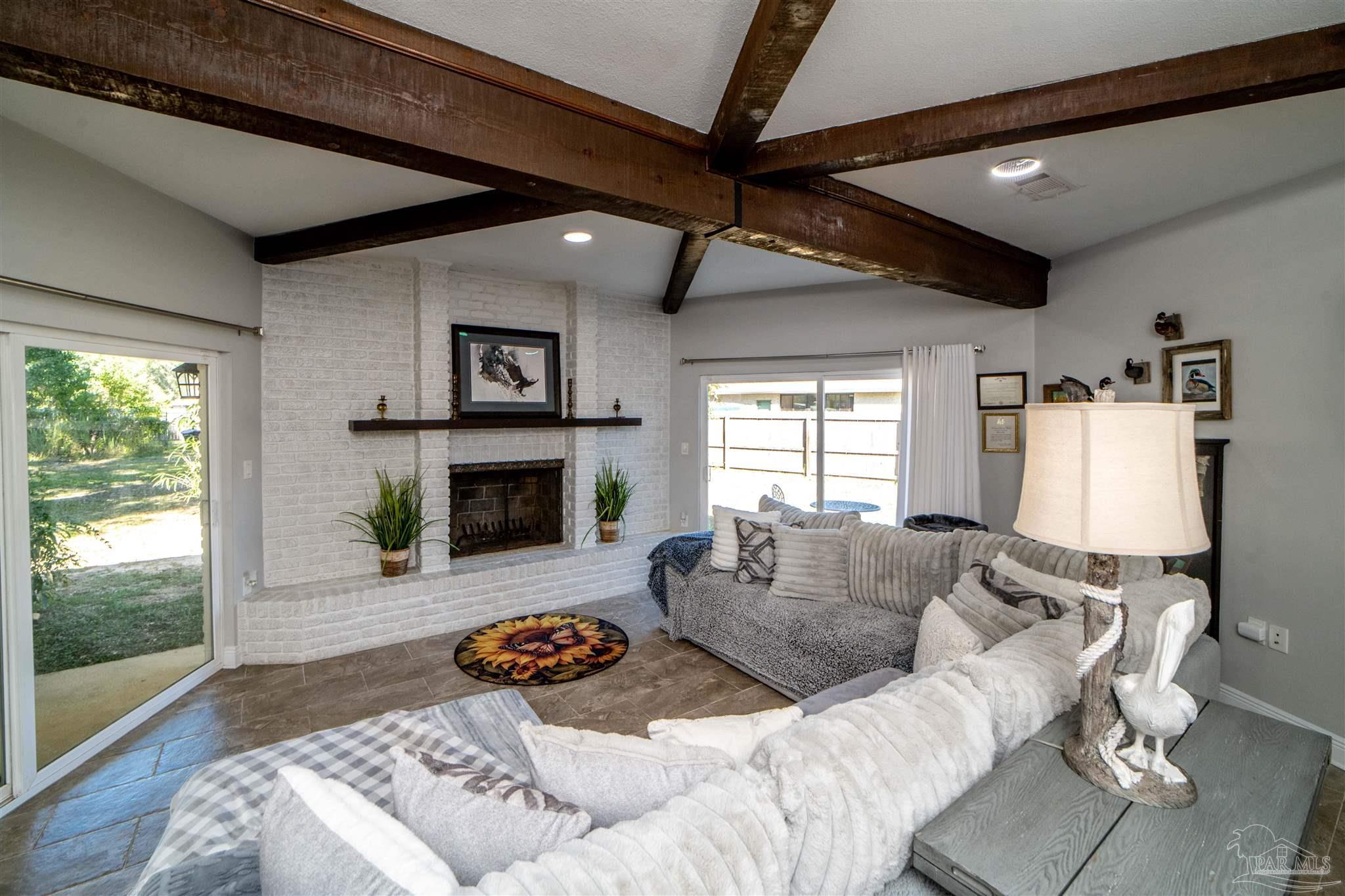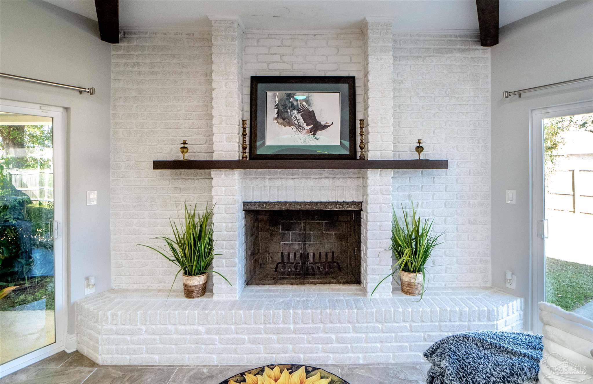 Welcome home to this 3-bedroom, 2 1/2 bathroom beautifully remodeled property located on 1 acre with no HOA! New roof, new HVAC, etc! Upon entering, you are greeted by natural light, and charming details such as a wood burning fireplace in an open concept space. The kitchen and breakfast nook welcome you with stylish updates, granite countertops, new and updated appliances, and sleek finishings. The welcoming owner's suite features an en-suite bathroom while the other two bedrooms are spacious and located by the guest bathroom. Steps away, a large versatile bonus room is being used as a media/game room with large tv conveying with the home! Outside, beautiful landscaping and water features beckon you to play outdoors at the horseshoe pit. There's also a workshop in the back for storage or woodworking, along with the back yard being completely fenced in for privacy. Vivant alarm system protected and system conveys with home.