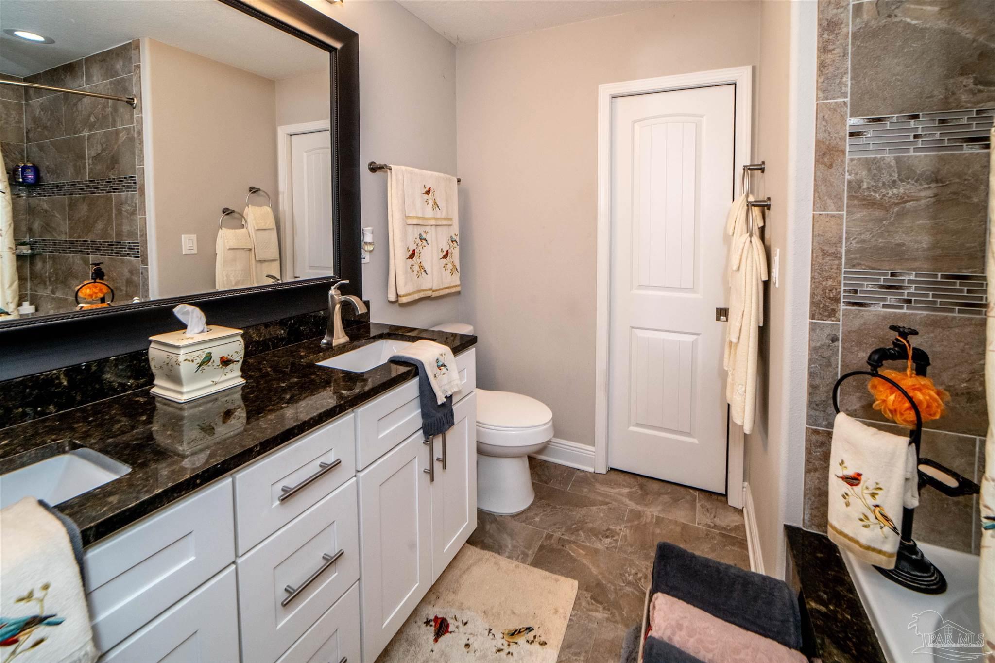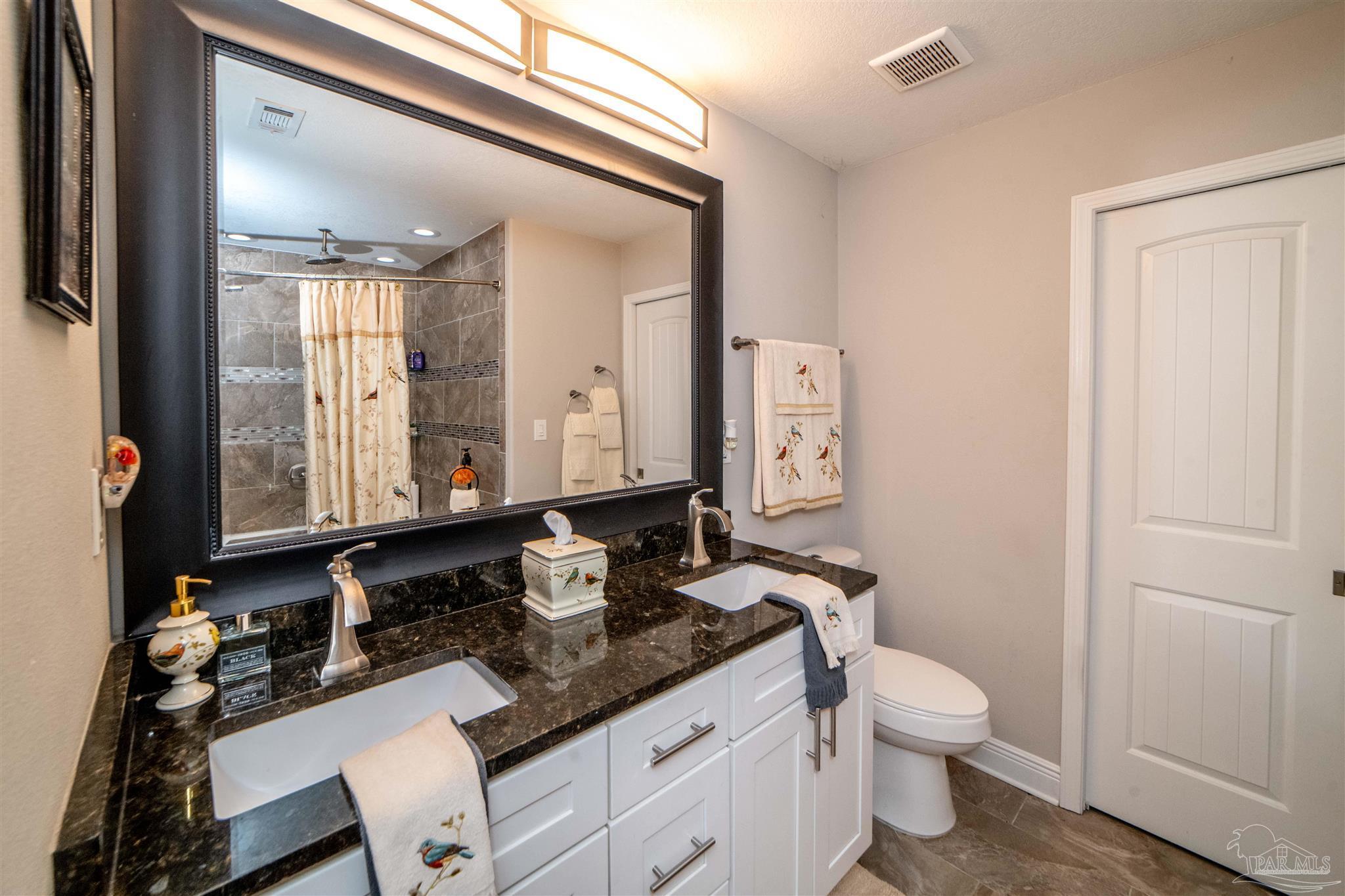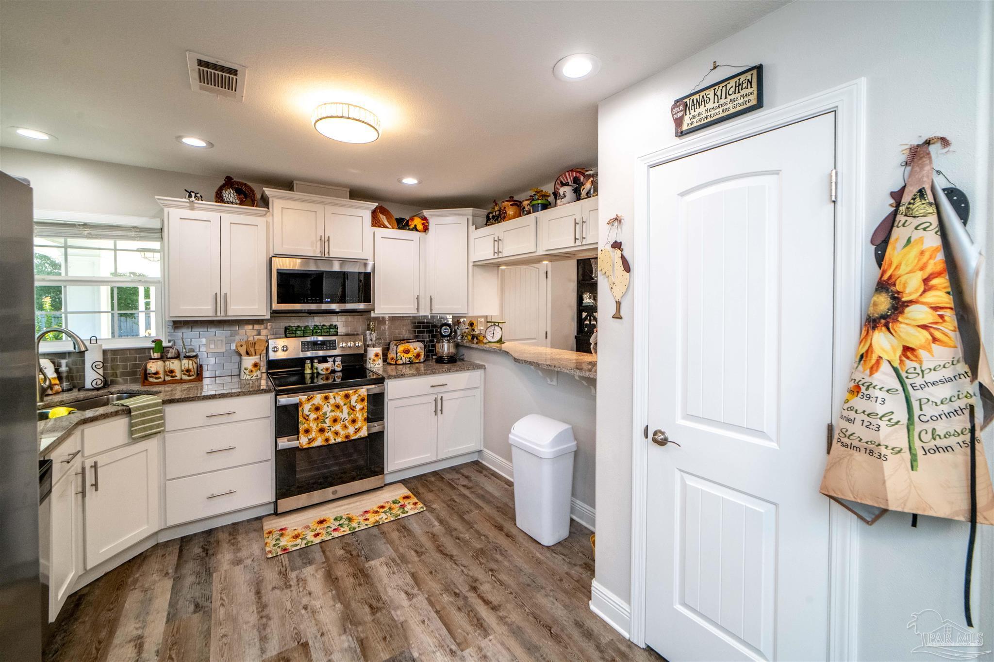 Welcome home to this 3-bedroom, 2 1/2 bathroom beautifully remodeled property located on 1 acre with no HOA! New roof, new HVAC, etc! Upon entering, you are greeted by natural light, and charming details such as a wood burning fireplace in an open concept space. The kitchen and breakfast nook welcome you with stylish updates, granite countertops, new and updated appliances, and sleek finishings. The welcoming owner's suite features an en-suite bathroom while the other two bedrooms are spacious and located by the guest bathroom. Steps away, a large versatile bonus room is being used as a media/game room with large tv conveying with the home! Outside, beautiful landscaping and water features beckon you to play outdoors at the horseshoe pit. There's also a workshop in the back for storage or woodworking, along with the back yard being completely fenced in for privacy. Vivant alarm system protected and system conveys with home.