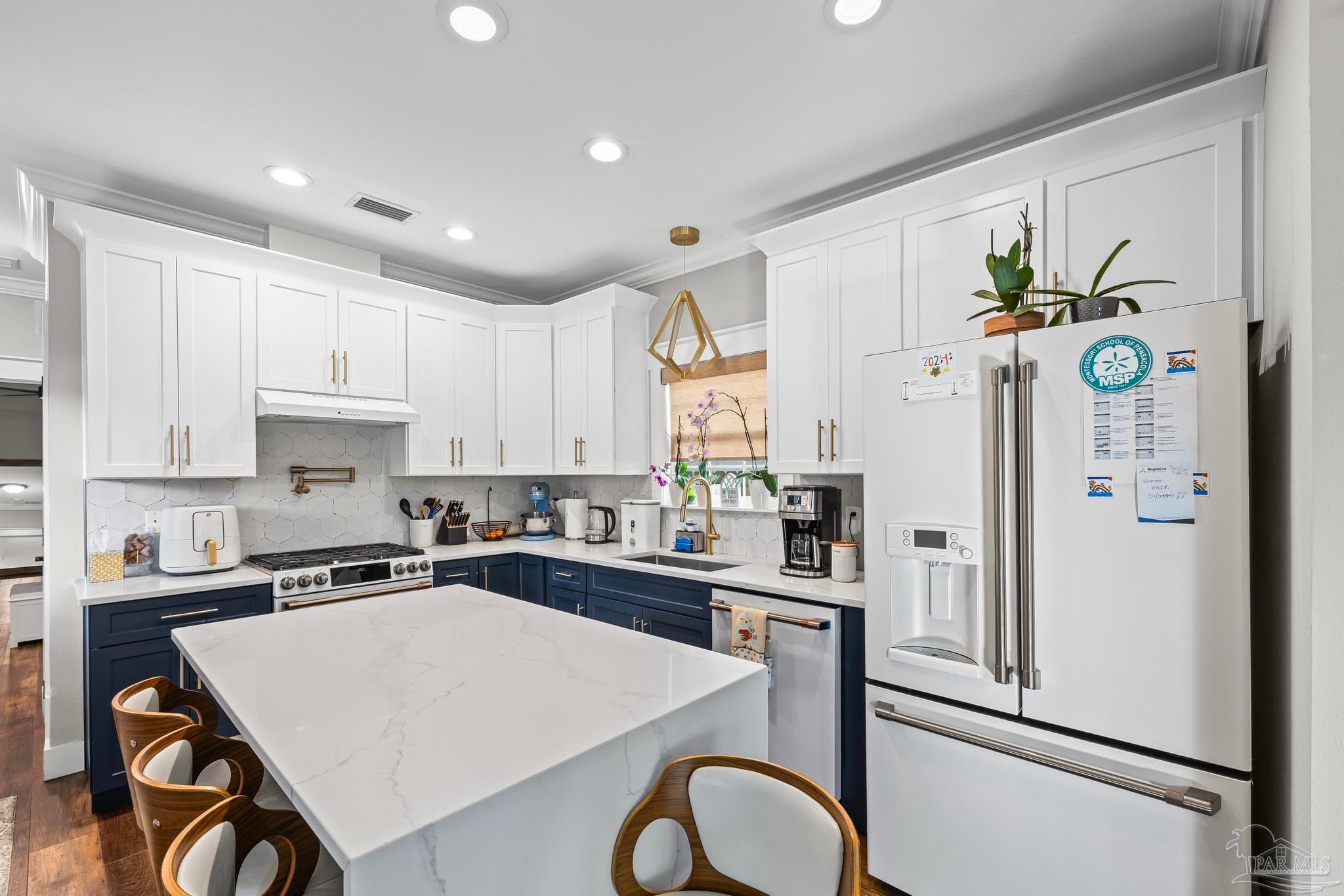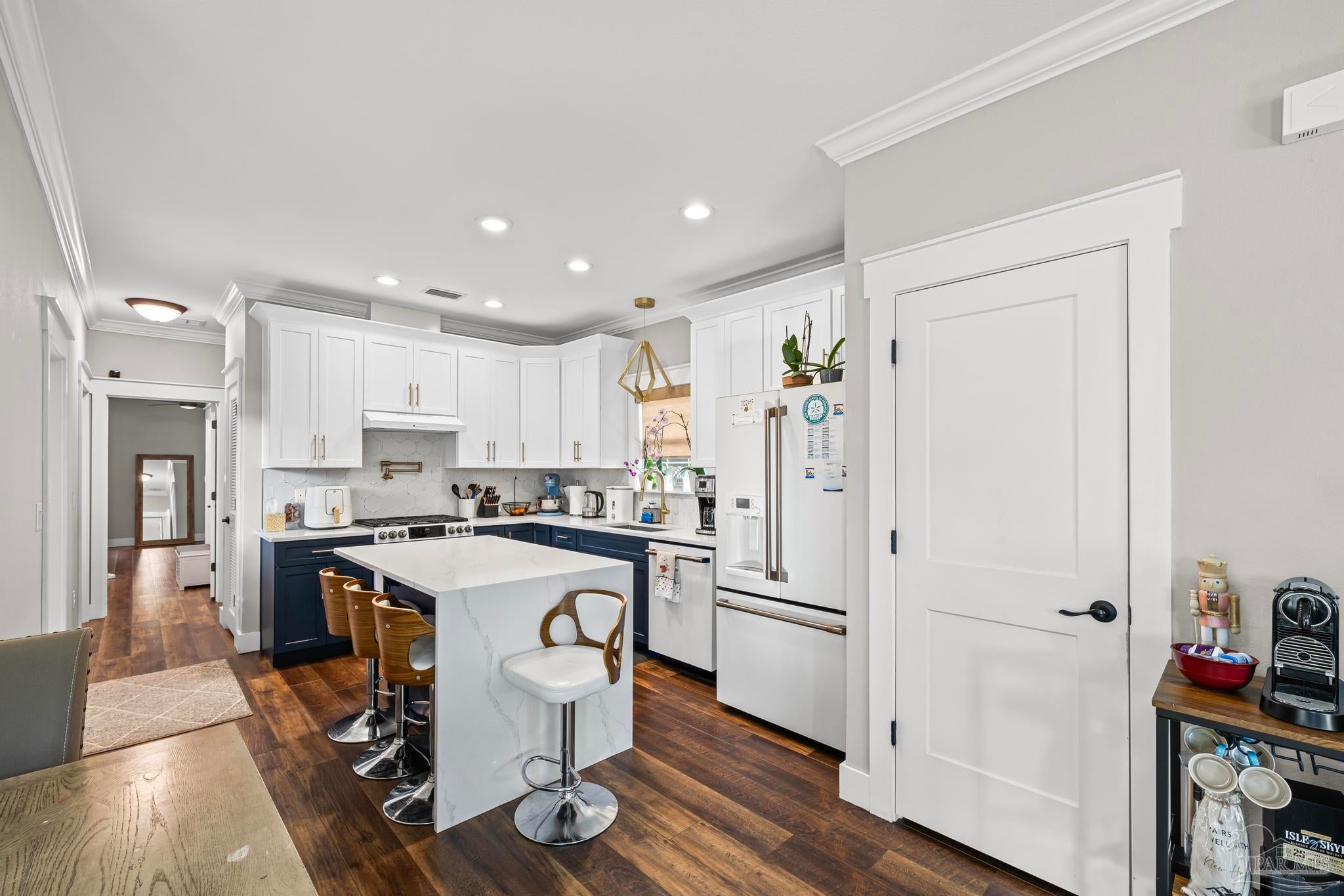 East Hill living at its finest! Discover the perfect blend of modern luxury and neighborhood charm in this stunning custom-built home, ideally positioned among friendly neighbors—with ALGA Brewery just steps away and a brand-new Wine Bar opening right across the street. Inside, every detail shines. You’ll be greeted by gorgeous gold hardware, luxury vinyl plank wood-look flooring, and custom-finished bathrooms designed for both style and comfort. The kitchen is a true showstopper, featuring waterfall quartz countertops, matching GE Café appliances, and high-end finishes that elevate your everyday living. The primary suite is conveniently located on the first floor, while the second level offers a spacious loft complete with its own built-in bar and storage, perfect for entertaining or relaxing. Step outside to your own private oasis: a beautiful upstairs balcony, two outdoor gazebos, paver walkways surrounding the home, and a full sprinkler system for effortless maintenance. The property also includes extra parking space and a 6-ft privacy fence—ideal for kids, pets, and added peace of mind. Modern comfort, luxury touches, and East Hill charm—this home truly has it all.