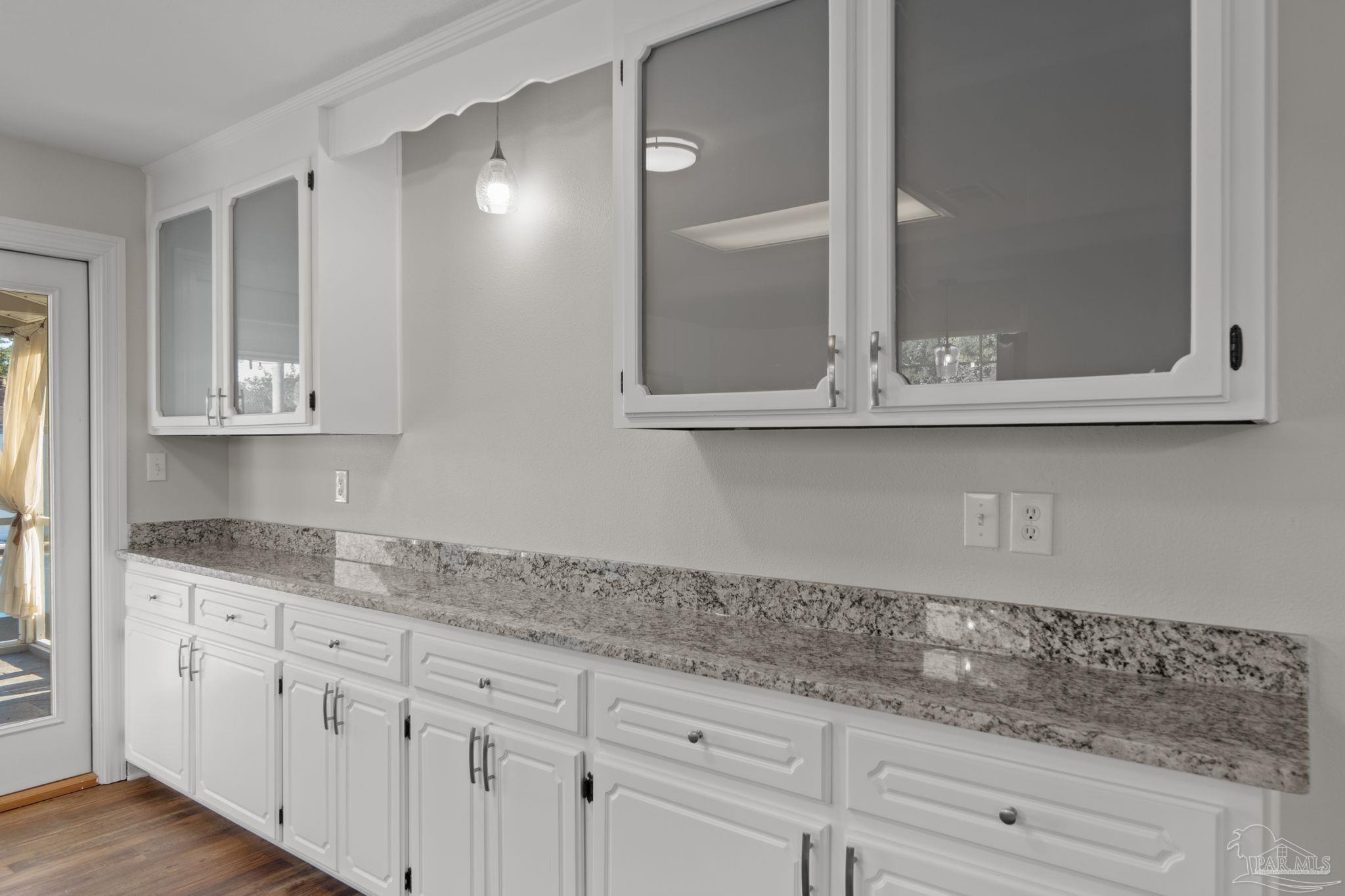 New flooring, stone countertops, flooring, paint, fixtures. Beautifully updated and move-in ready. of comfortable living space in the desirable South Gulf Manor neighborhood. From the curb, you’ll love the spacious front yard and inviting double-door entry that leads into a bright, open living area. Inside, the home features durable LVP flooring and stylish modern light fixtures throughout. The kitchen is truly stunning, with crisp white shaker cabinets, stainless steel appliances, and plenty of counter space for cooking and entertaining. Both bathrooms are fresh and modern, featuring clean white finishes and contemporary details. Step outside to enjoy a backyard built for relaxation and fun including a sparkling, well-maintained in-ground pool, a large fenced yard, and a beautiful screened porch with vaulted, beamed ceilings and a ceiling fan. It’s the perfect setup for morning coffee, evening gatherings, or weekend cookouts. Located near Marcus Pointe, this home offers easy access to hospitals, shopping, dining, and major commuter routes, blending comfort, convenience, and classic Florida outdoor living in one stylish package. Schedule your showing today!