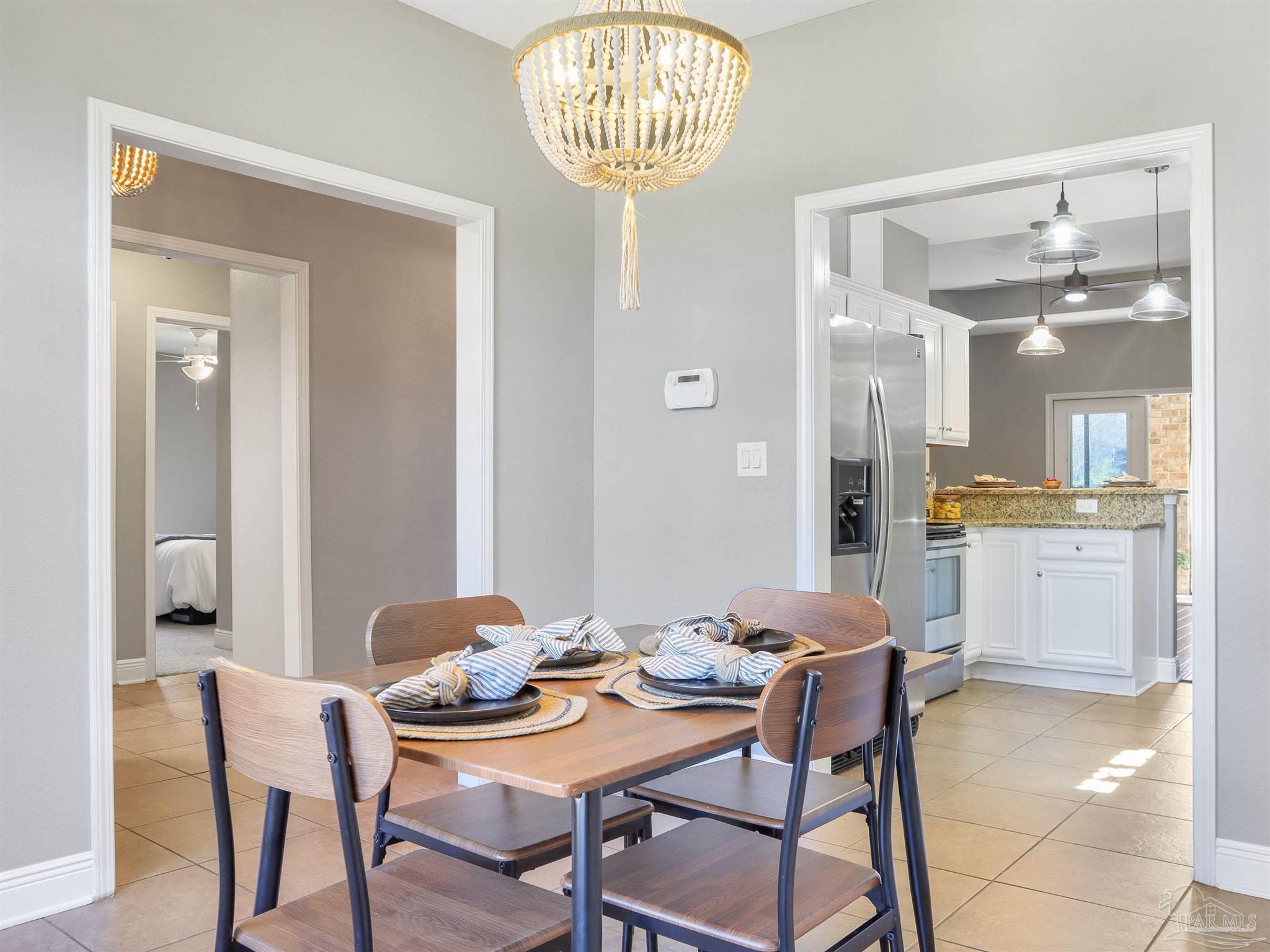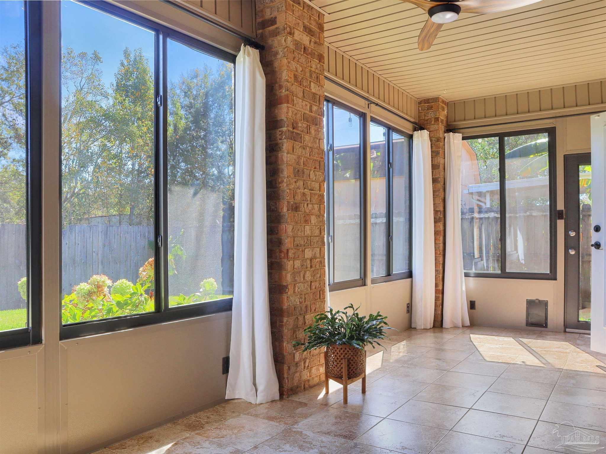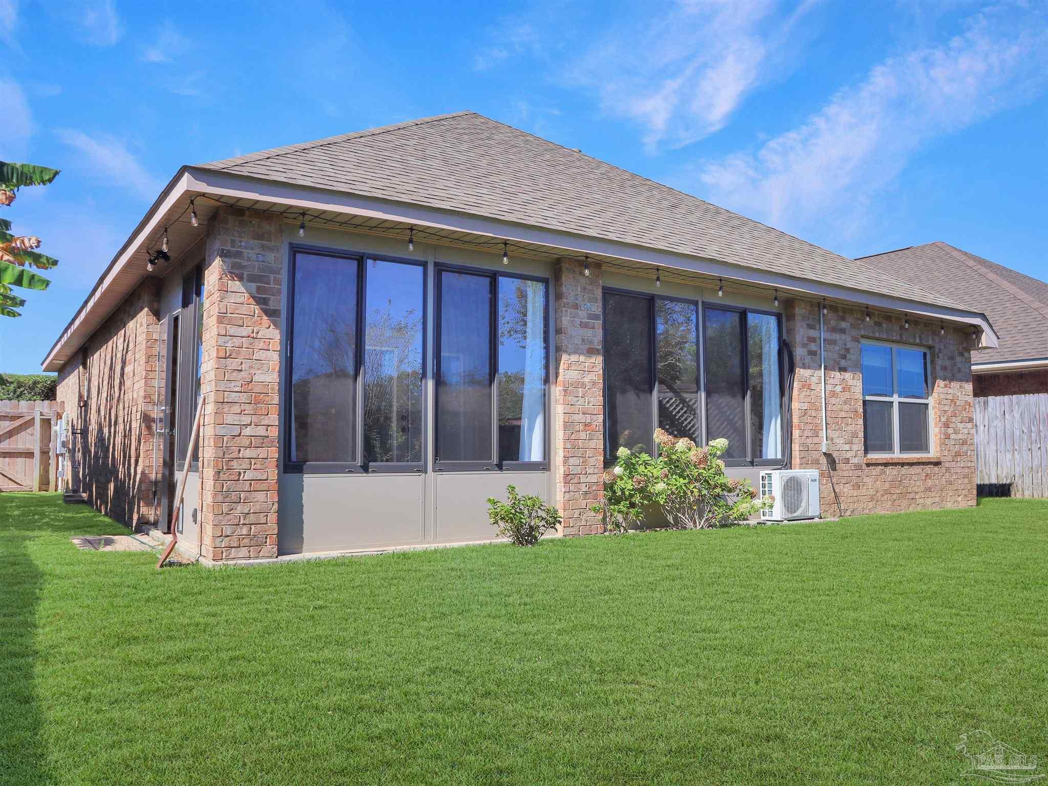 Near Navy Federal campus and I-10. Florida room with mini-split HVAC, tankless gas water heater, fenced yard with irrigation, new bedroom carpet, and fresh interior paint. Located in the Fiddler’s Walk community of Cantonment, this single-level brick home offers approximately 1,700 heated and cooled square feet with a functional three-bedroom, two-bath layout and attached two-car garage. The enclosed Florida room adds valuable living space and includes a dedicated mini-split for year-round heating and cooling. Inside, the living room connects directly to the kitchen, creating an open, comfortable flow for daily living. Engineered wood flooring defines the main gathering area, while tile extends through the kitchen, dining area, and baths for durability and easy care. Bedrooms feature new carpet and fresh paint. The kitchen provides ample cabinetry and a breakfast bar for casual meals. The primary suite includes a soaking tub, separate shower, dual vanity, and walk-in closet. Additional highlights include a tankless gas water heater for energy-efficient endless hot water, a sprinkler system, and a privacy-fenced backyard. The home’s location offers quick access to Pine Forest Road and West Roberts Road, placing everyday conveniences within easy reach, including Publix and restaurants on Pine Forest (about 3 miles) and Navy Federal Credit Union (about 3.9 miles). Convenient to Highway 29 and I-10 for commutes toward Pensacola and nearby beaches.