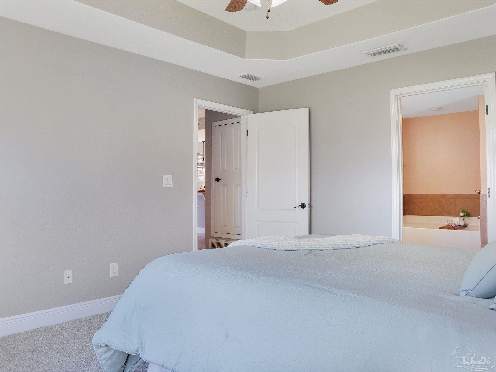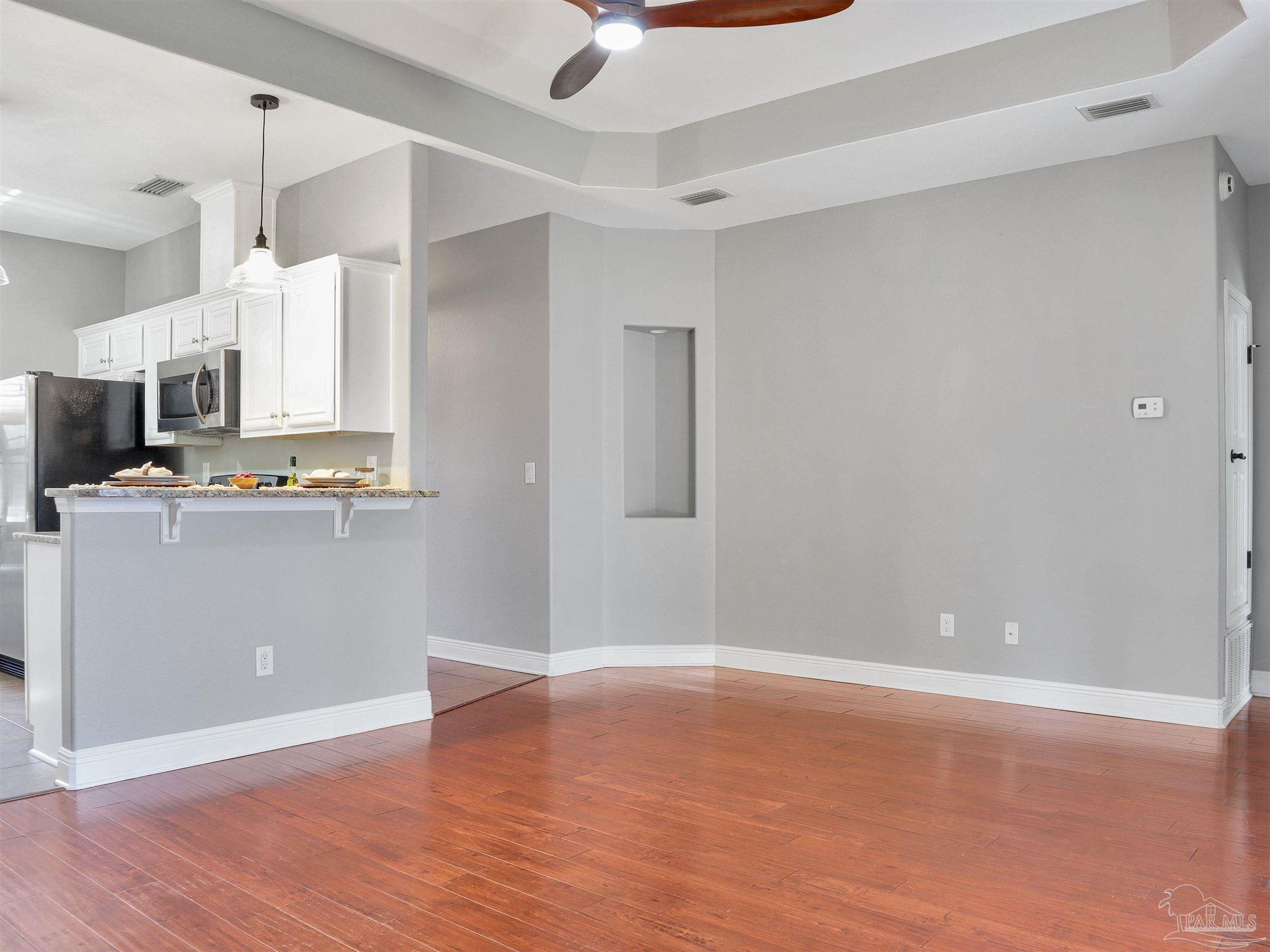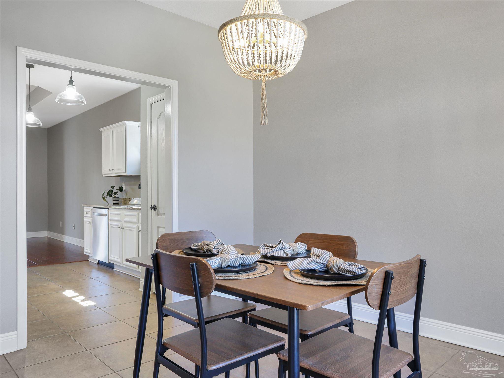 Near Navy Federal campus and I-10. Florida room with mini-split HVAC, tankless gas water heater, fenced yard with irrigation, new bedroom carpet, and fresh interior paint. Located in the Fiddler’s Walk community of Cantonment, this single-level brick home offers approximately 1,700 heated and cooled square feet with a functional three-bedroom, two-bath layout and attached two-car garage. The enclosed Florida room adds valuable living space and includes a dedicated mini-split for year-round heating and cooling. Inside, the living room connects directly to the kitchen, creating an open, comfortable flow for daily living. Engineered wood flooring defines the main gathering area, while tile extends through the kitchen, dining area, and baths for durability and easy care. Bedrooms feature new carpet and fresh paint. The kitchen provides ample cabinetry and a breakfast bar for casual meals. The primary suite includes a soaking tub, separate shower, dual vanity, and walk-in closet. Additional highlights include a tankless gas water heater for energy-efficient endless hot water, a sprinkler system, and a privacy-fenced backyard. The home’s location offers quick access to Pine Forest Road and West Roberts Road, placing everyday conveniences within easy reach, including Publix and restaurants on Pine Forest (about 3 miles) and Navy Federal Credit Union (about 3.9 miles). Convenient to Highway 29 and I-10 for commutes toward Pensacola and nearby beaches.
