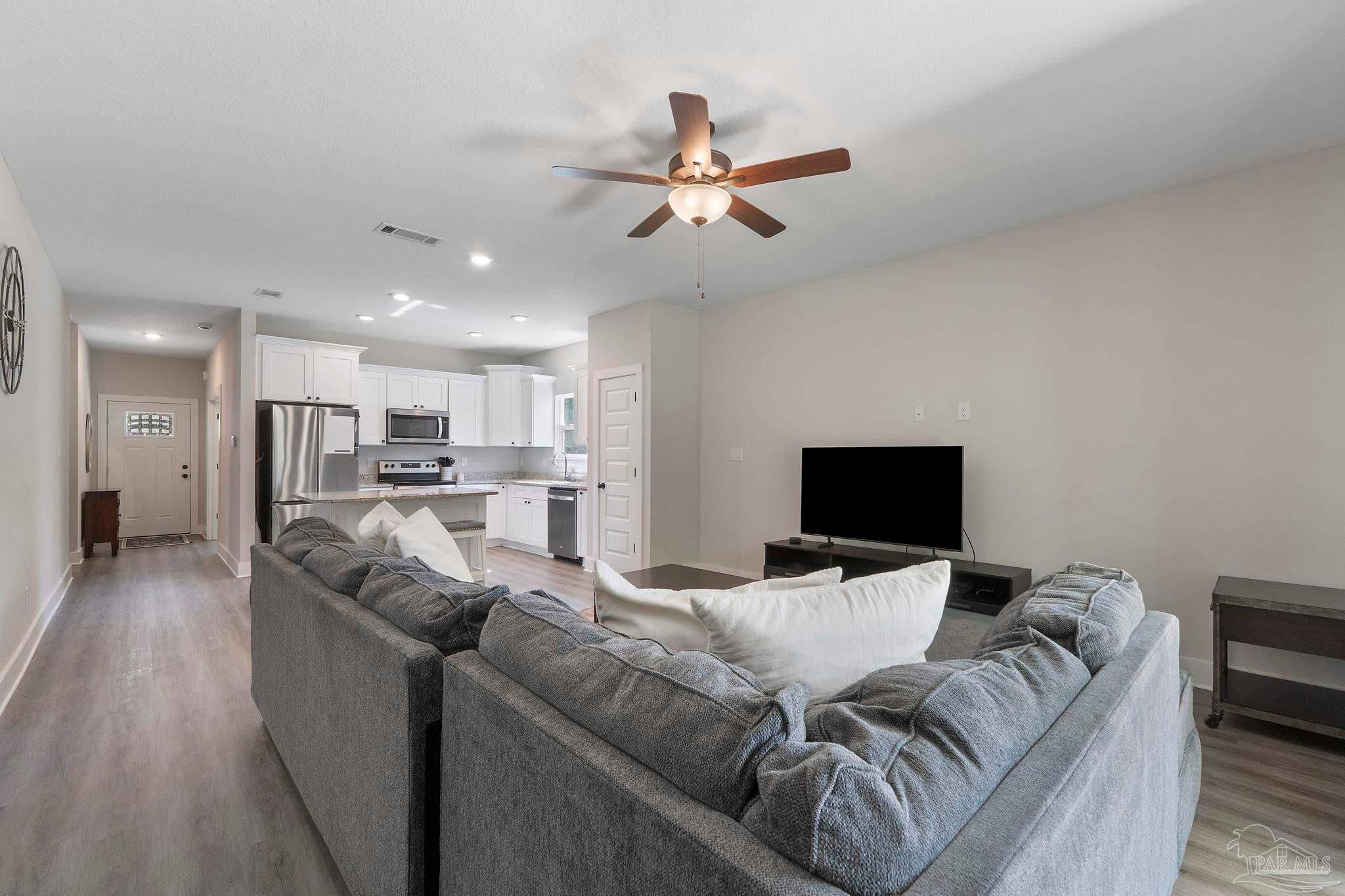 Welcome to this like-new 2023 home in Avalon Beach! Featuring 4 bedrooms, 2 full bathrooms and a 2 car garage with newly epoxied flooring! Inside, you'll find LVP flooring throughout the home. The open concept kitchen features granite countertops, stainless steel appliances, and soft-close cabinets! The kitchen flows into the spacious living room with access to the covered patio in the backyard. This home offers a split floor plan with the primary bedroom and ensuite bathroom in the back of the home and the 3 additional bedrooms and 2nd full bathroom in the front of the home. The primary bathroom features a double vanity with a granite countertop, an oversized closet, a linen closet, and an oversized shower! No HOA! No rental restrictions! Located within a few miles of 2 boat ramps!