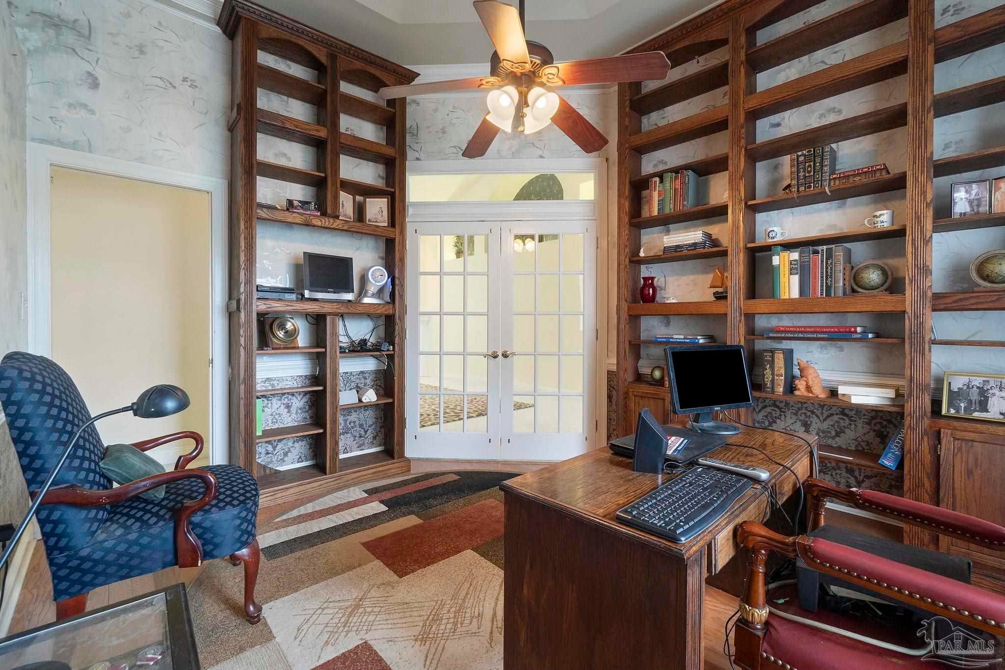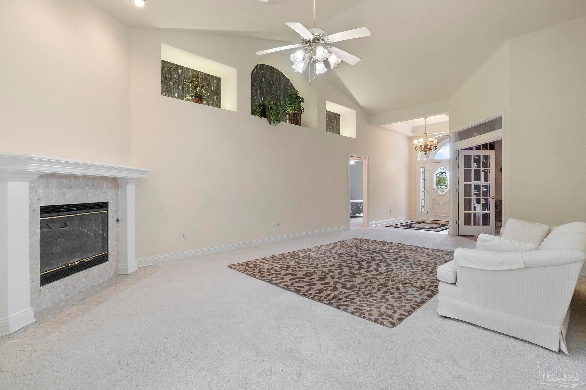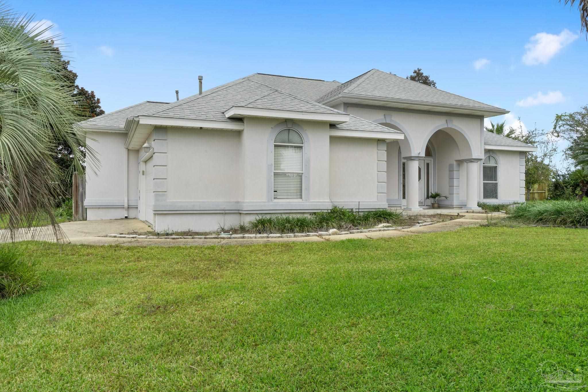 PROFESSIONAL PHOTOS TO BE UPLOADED 10/29/25. This beautifully maintained South Florida–style home in Chevalier, built in 1997, offers 2,045 square feet of inviting living space. With 3 bedrooms and 2 baths, and a large office area, this home combines comfort, functionality, and timeless design. Inside, vaulted ceilings in the kitchen and great room create an open, airy feel, while skylights and lighted plant ledges bring warmth and character. Flooring includes a mix of tile and carpet, and the great room is centered by a cozy gas fireplace. The kitchen features a gas cooktop, complemented by a gas water heater for efficiency. An indoor laundry room adds everyday convenience. The primary suite serves as a private retreat, while the additional bedrooms provide ample space for family or guests. A side-entry garage, complete with built-in cabinets, ensures privacy and extra storage. Situated on a desirable high corner lot with established landscaping, this property includes a new roof, HVAC system, pool enclosure, and brand new windows. Outdoors, enjoy your private inground swimming pool, enhanced by a screened enclosure. Located just minutes from Johnson Beach and military bases, this home offers the perfect blend of relaxation, convenience, and coastal living. A must-see property that is move-in ready and designed for both everyday comfort and entertaining.