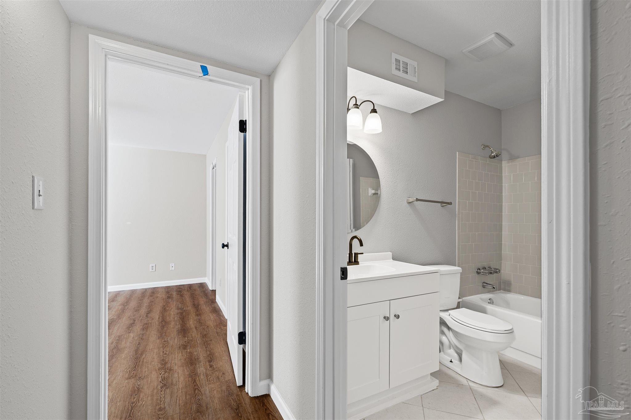 Best bang for the buck! This Beautifully Renovated unit has class and charm, all with a prime location just off of 9 Mile Rd between Chemstrand and UWF! 5 Minutes to the University, and 10 minutes to Malls, Hospitals, the Airport and Pensacola Center. Just a half hour puts you on the Beach or Pensacola NAS! Freshly renovated with all new premium scratch and water resistant LVP wood laminate flooring, paint and trim with all new doors. Fresh Kitchen with all new stainless appliance package, and fresh paint and hardware on the cabinets. Both full bathrooms have been hit with new vanities, toilets, lighting and bathtub hardware. All new panel doors throughout as well. The master suite has its own dedicated bathroom and oversized walk in closet. The entire unit has been freshly painted and fitted with new light fixtures. New sliding glass door to your patio and storage area. Minimal HOA dues cover all building insurance, roof and exterior maintenance. Fresh Asphalt on the driveway with 2 parking spaces per unit! Don't miss this one before it's gone! Call today for a showing or information.