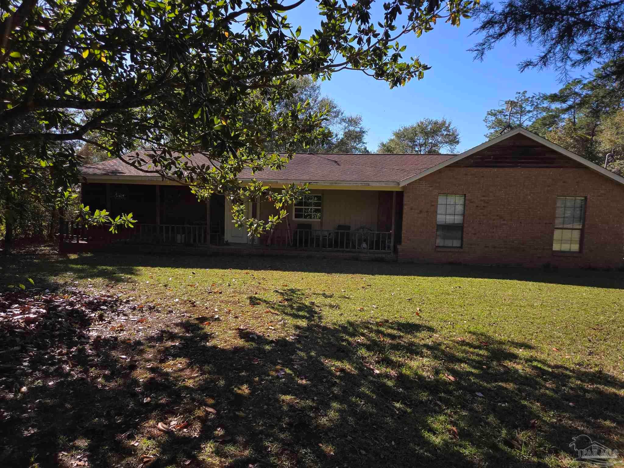 This spacious 4 bedroom, 2 bath home sits on 2 acres in quiet privacy with a covered porch in the front and in the back. The home will need some updating and is priced to accommodate it. There are fruit trees and most of the acreage is cleared and fenced. There is also a garden area and a large shop and wildlife is plentiful because behind the property is approximately 2000 acres of privately owned forest land that will provide privacy for some time to come! Travel time to Atmore is around 20 minutes and to Pensacola is around 30 minutes.