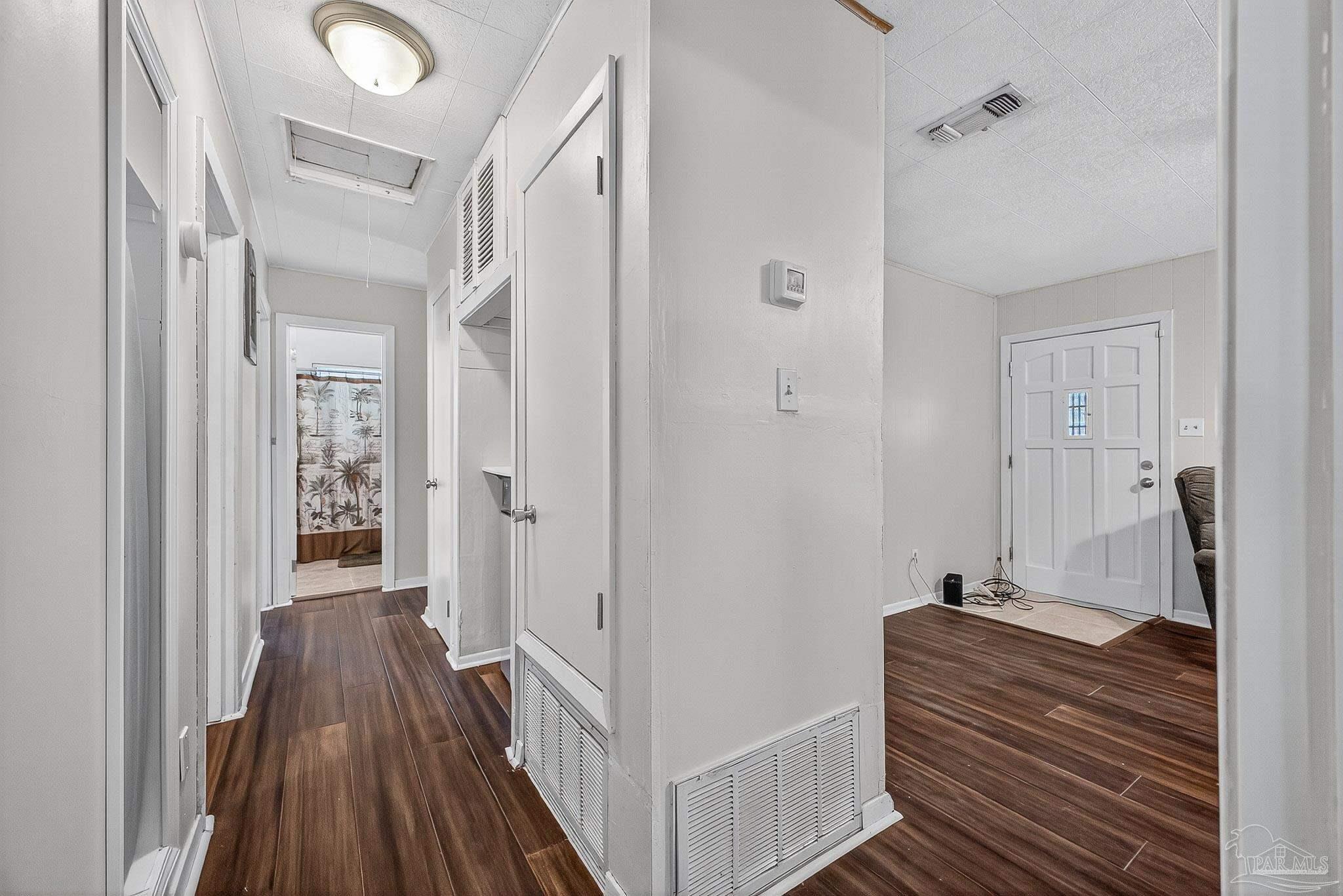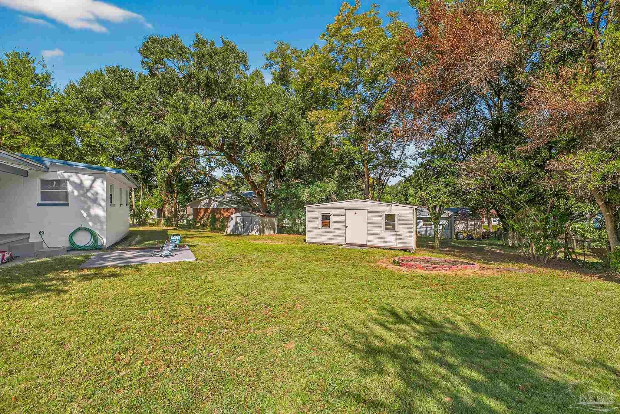 Beautifully remodeled and landscaped home with new engineered hardwood flooring throughout bedrooms, hallway & living room. New ceramic tile installed in kitchen & bath. Remodeled kitchen with new countertops & new glass top oven and range. Garden, patio, firepit. 220 square-foot Powered work shed. Lots of built-in bookshelves and nooks. Locking in-wall safe. New metal roof installed 2019. New HVAC installed 2019. Hurricane Protection Dev Centrally located within 15 minutes of downtown, Cordova Mall & nine mile corridor.