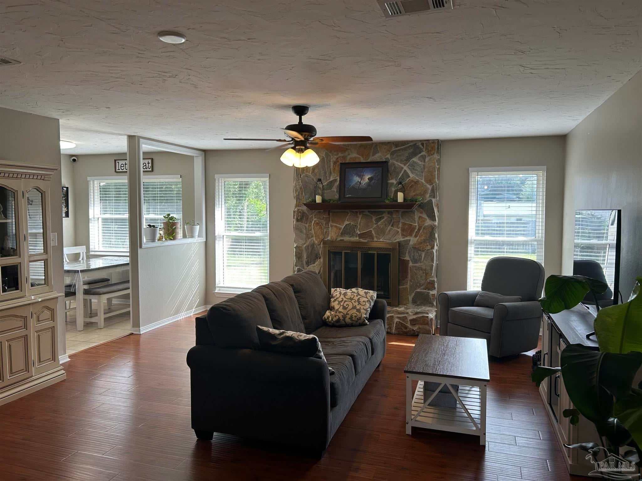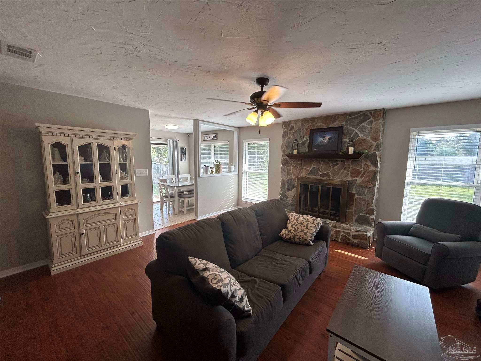 This beautifully maintained home sits on just over a quarter acre in a prime central location—close to restaurants, schools, hospitals, shopping, and major routes. Step onto the covered front porch and into a warm, inviting interior featuring wood-like flooring throughout the main areas and a cozy wood-burning fireplace, perfect for relaxing evenings. Enjoy peace of mind with major updates already completed—a new roof (2021), HVAC (2021), and hot water heater (2024). The open, spacious layout provides plenty of room to gather and entertain, while the covered patio out back lets you enjoy being outside in the shade while barbecuing! The backyard offers endless possibilities—room for a pool, workshop, boat, or RV, plus plenty of space for kids or pets to play. This home combines comfort, convenience, and charm in one move-in-ready package!