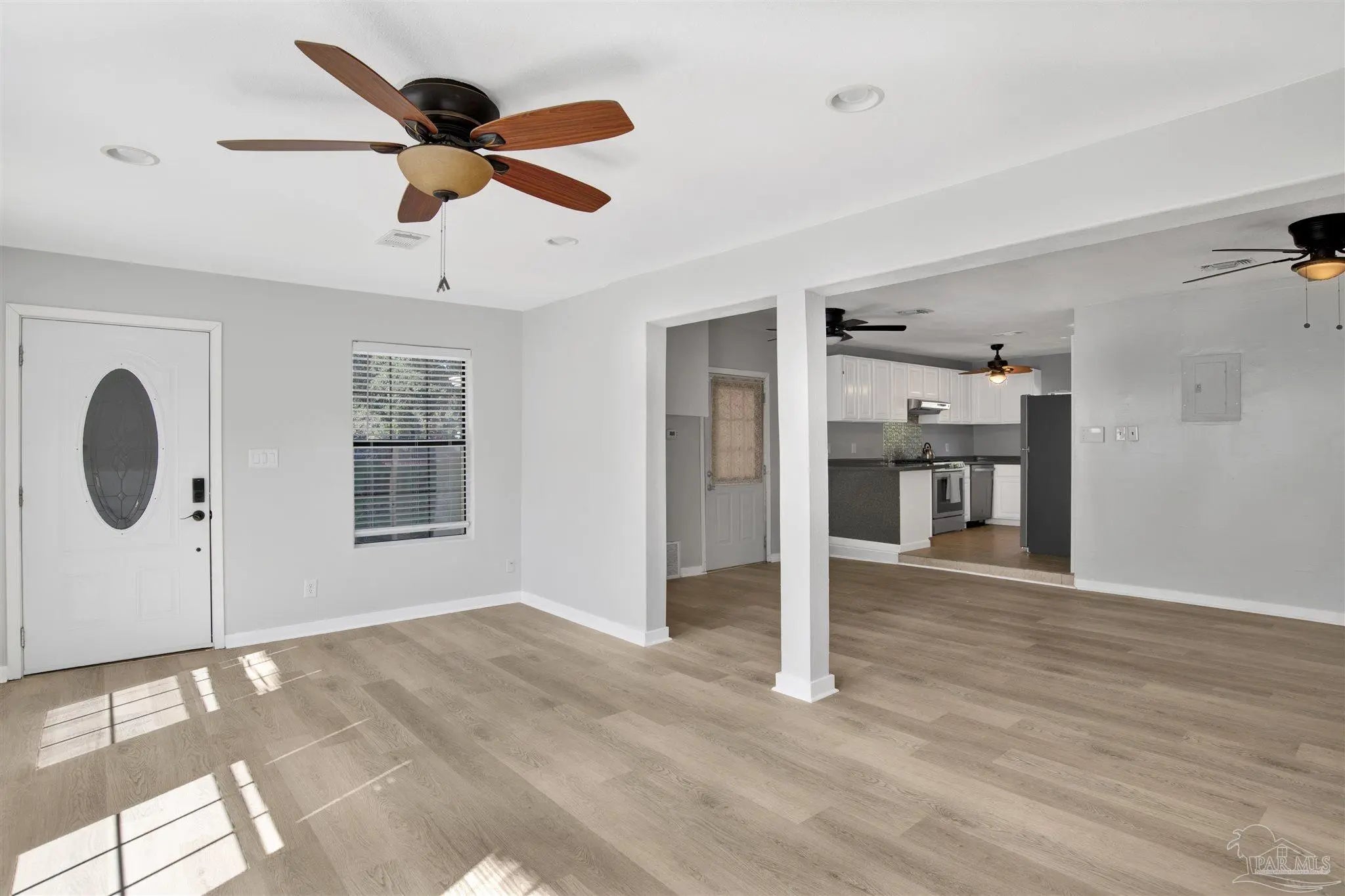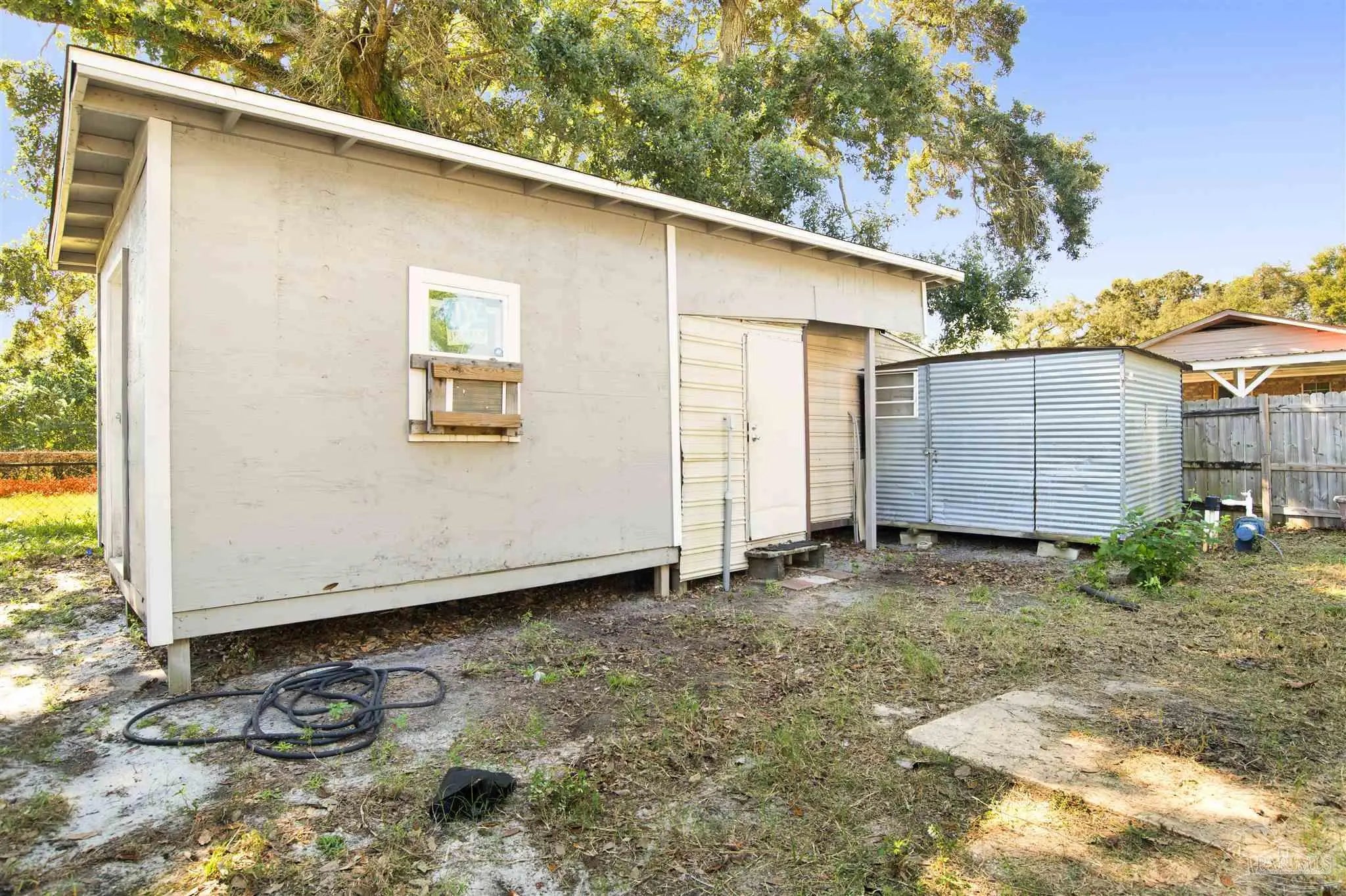 Just down the street from the NAS P gate!! Welcome to this move-in ready home or exceptional investment opportunity, perfectly positioned in a Pensacola area seeing significant growth, flips, and new construction. This spacious 2 bedroom, 2 bathroom home offers just over 1,400sqft of modern living, highlighted by recent updates designed for peace of mind. The interior features brand new flooring and new light fixtures throughout, featuring large, comfortable bedrooms with large closets. The kitchen is equipped with a gas range and all other brand new appliances that come complete with manufacturer warranties. Location is everything here: the property is conveniently located down the street from shopping and restaurants, just a couple of miles from NAS Pensacola and Corry Station, and less than 5 miles to vibrant Downtown Pensacola. Beyond the home's updates, the property offers unmatched utility with an air-conditioned workshop with electricity and a large work table that provides tons of extra space for hobbies or business, plus a separate shed offers additional storage for lawn care tools. With crucial insurance items in good shape and the washer and dryer included in the sale upon request, this property offers a complete, low-maintenance package for an owner-occupant or a savvy investor. Virtually staged.