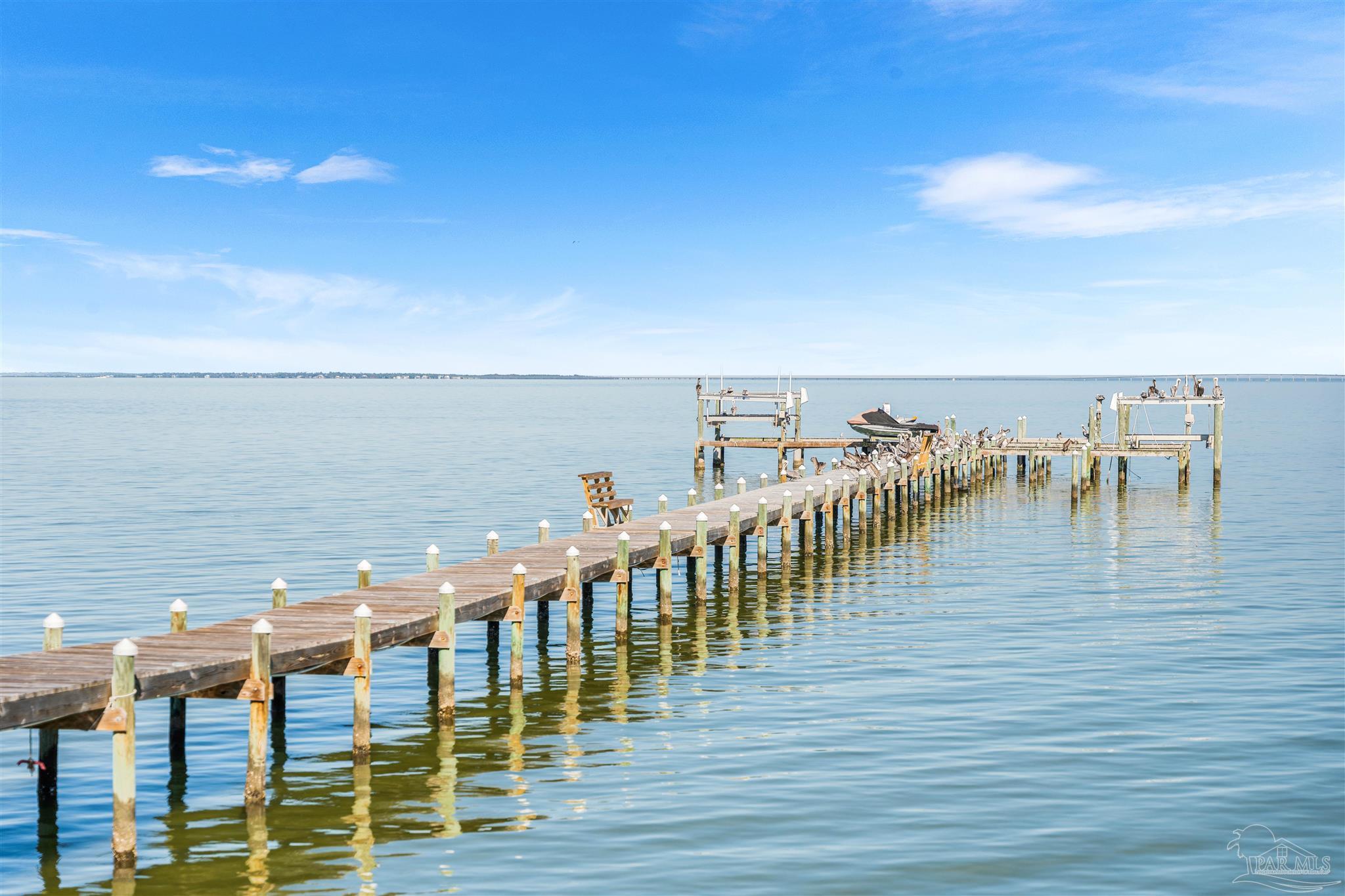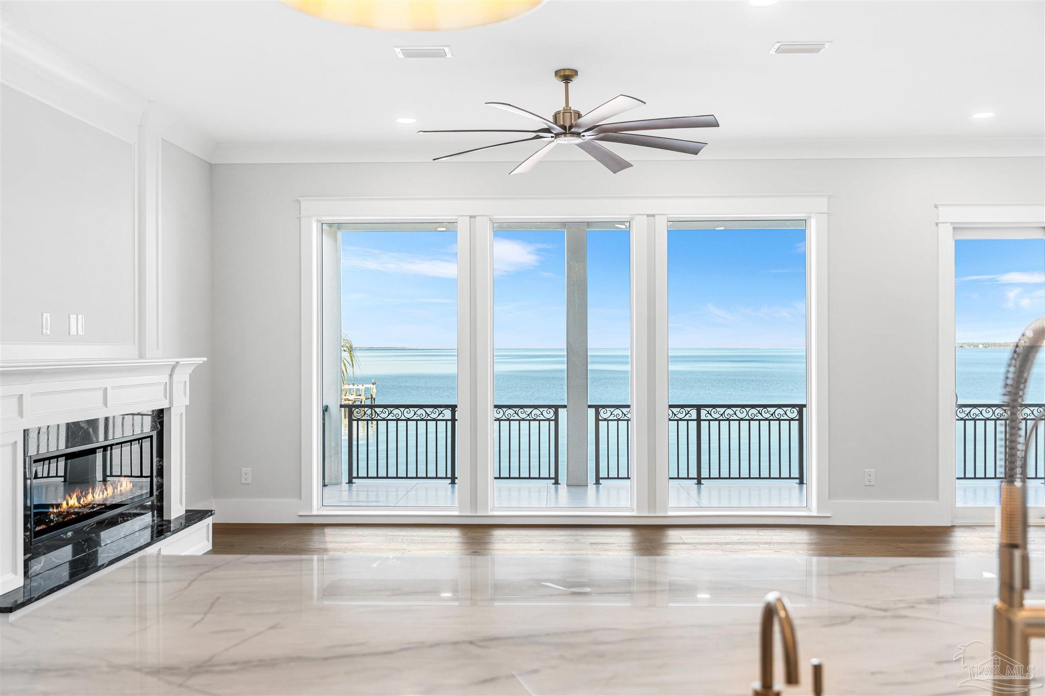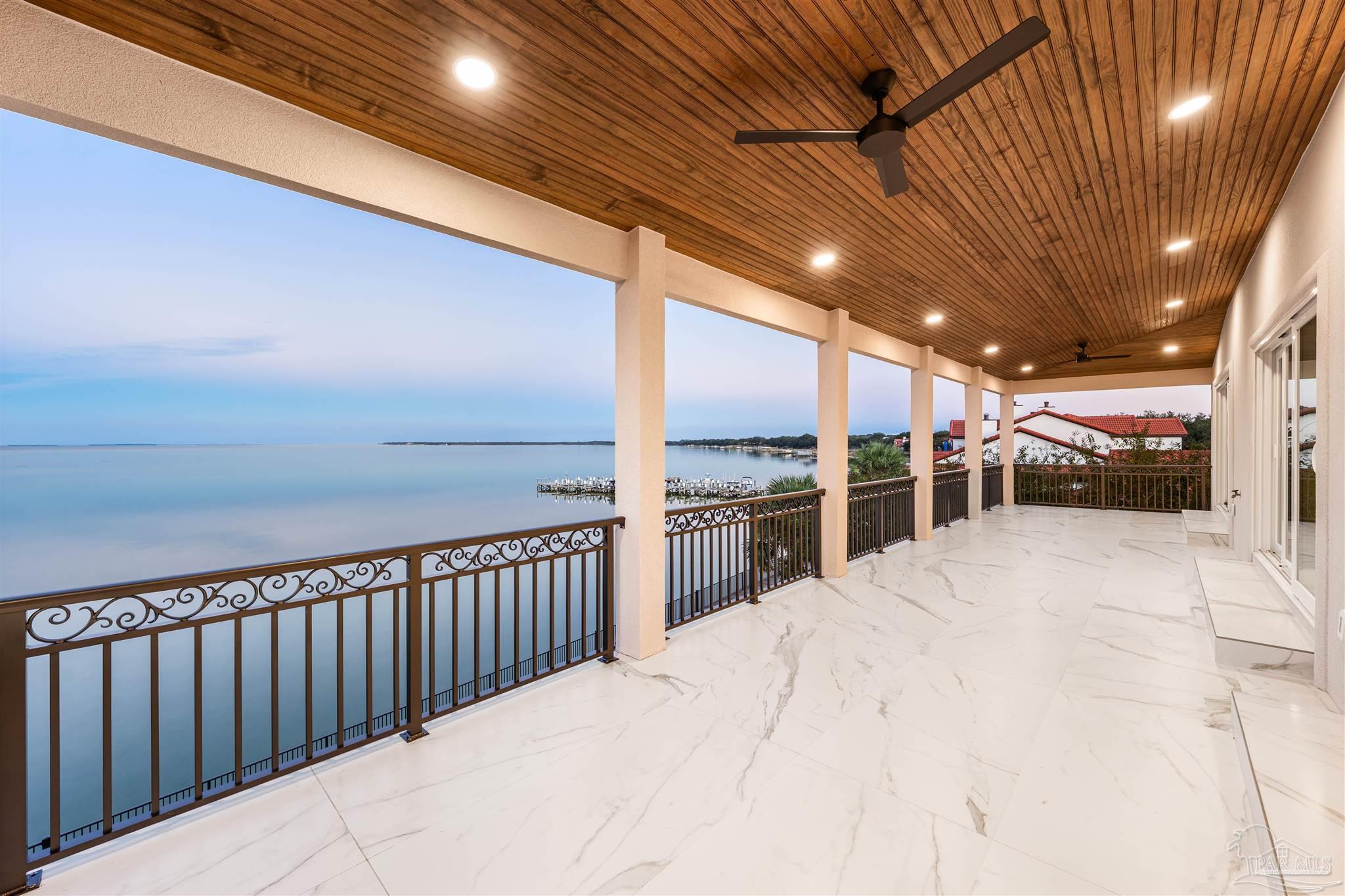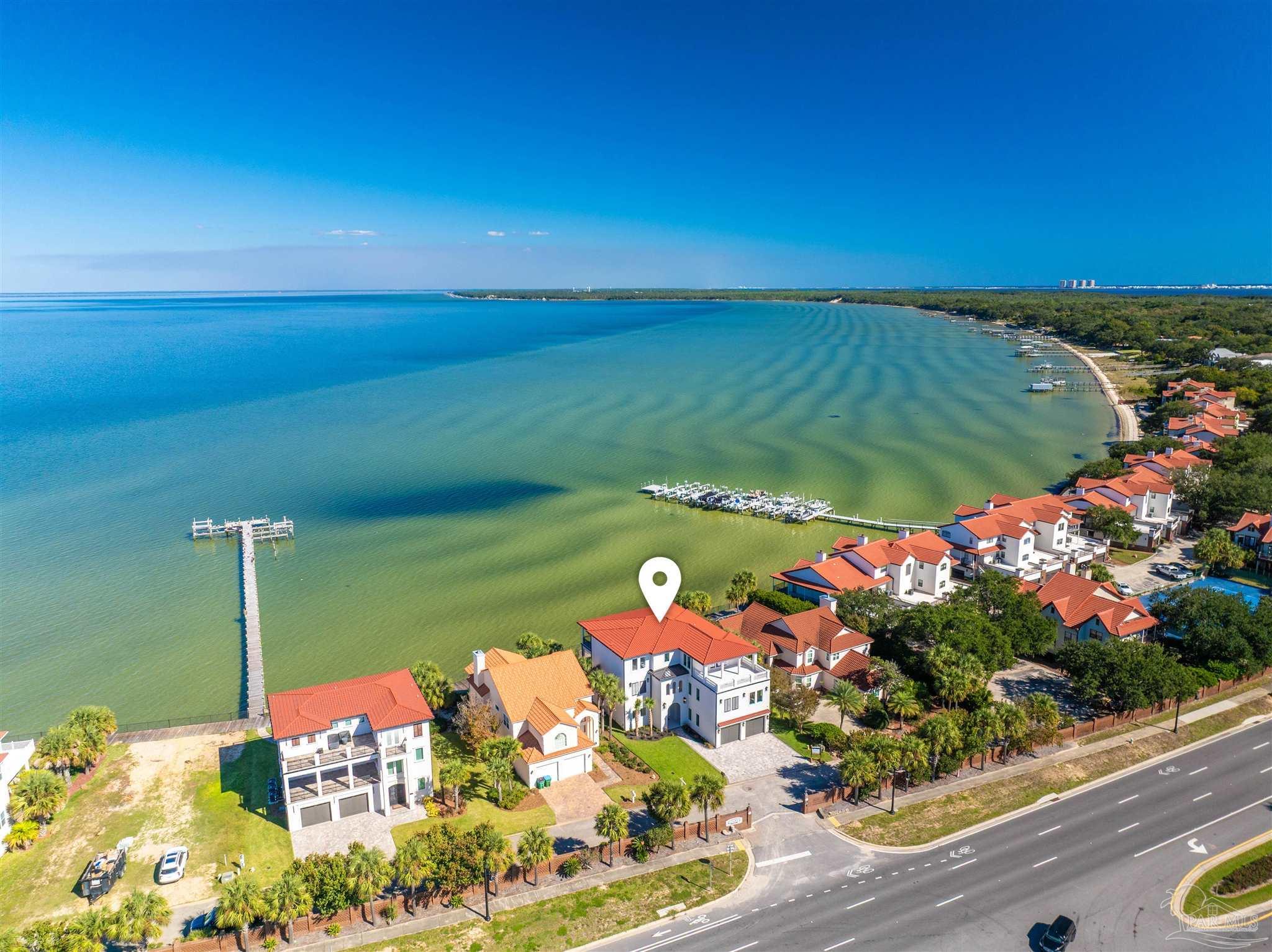 This is a must see newly built luxury home with all the bells and whistles. The home is built on a slab no flood zone with 3 full kitchens - 5 Bedrooms & 5 Full Baths & 1 Half (every bedroom has a bath). The home has an ELEVATOR that goes to all 3 Floors. Large Entry with beautiful double doors leading into the foyer with the elevator. 1st FL has a mother-in-law suite with Living room - Full Kitchen Large Bedroom with walkin shower - Utility room w/cabinets to fold clothes. Storage room. 2nd Floor Main Living Area - open Kitchen w/large island & top of the line appliances & soft close drawers - Large pantry - Large Master Bedroom with water view. Full Bath with soaking tub - walkin shower and large custom closet. Wine area with wine refrigerator. 2nd Bedroom w/full bath and walkin shower. The rooms have large windows for waterview & a walkout covered patio. 3rd floor has theater w/full Kitchen - Bedroom 4 w/full Bath - Bedroom 5 w/full bath. - Exercise room w/wet Bar to include refrigerator - sink - as well as covered deck. 3rd floor has stackable washer & dryer. 3rd Floor opens onto the covered patio in back & covered deck in front. This home will have crown molding - high ceilings - elevator to all 3 floors - 2nd washer & dryer on 3rd floor is a stackable for just that floor. The home will have 3 AC units - 2 Water Heaters - 2 Washer & Dryer units - 3 Full Kitchens w/Refrigerators. All flooring will be real engineered wood flooring and Porcelain Tile in all Baths. Boat slip #5 water & electric at end of dock. This is new construction w/new codes. Only new construction in Gulf Breeze proper. 3/4 Car Garage. Please note ceilings on all patios and decks. Seller will install a boat lift- Hot Tub on any deck - out door kitchen if Buyer desires or a sauna installed in exercise room - if not he will give a credit at closing. This home is READY TO MOVE INTO. Come See You Will Be Glad You Did.