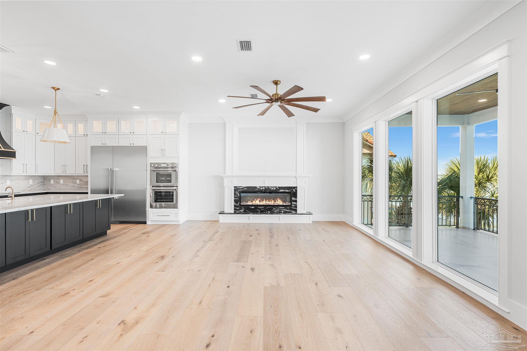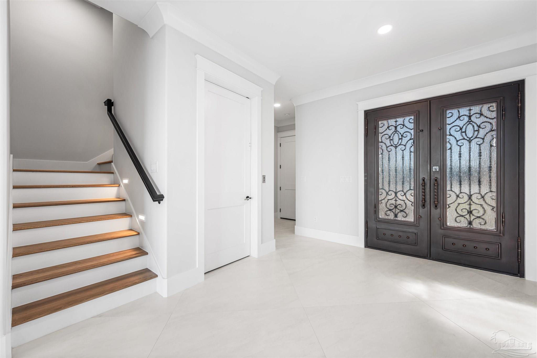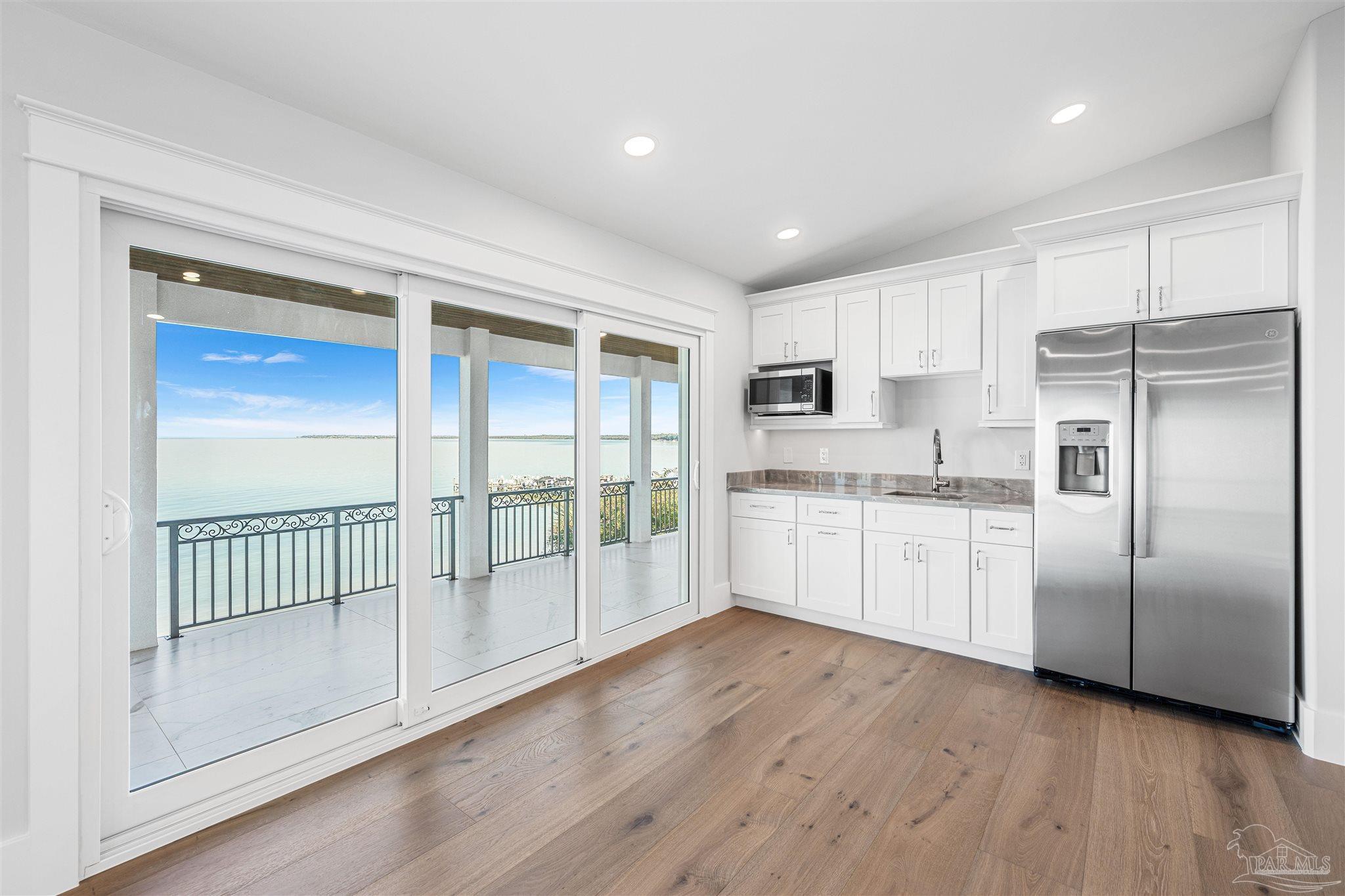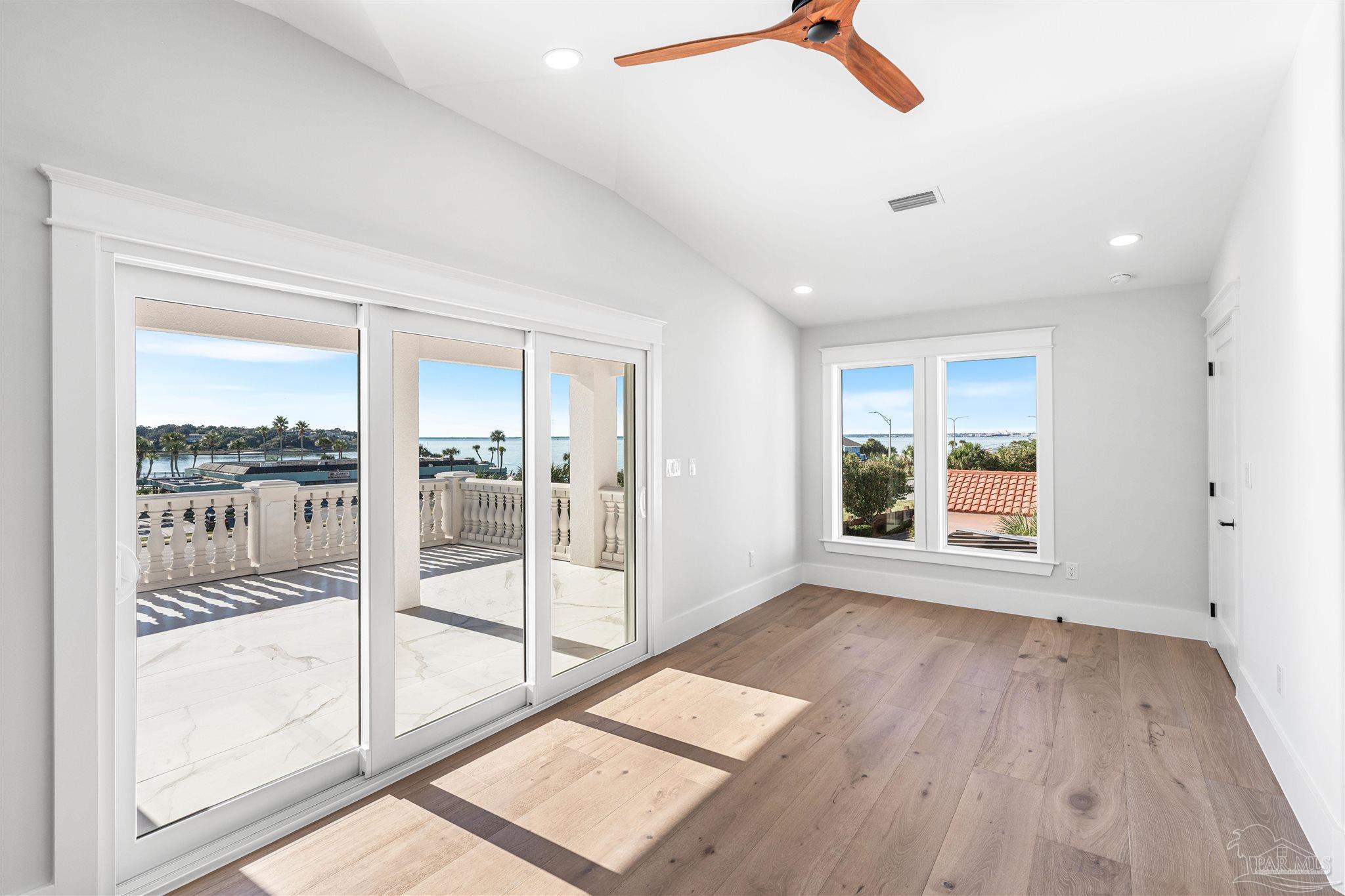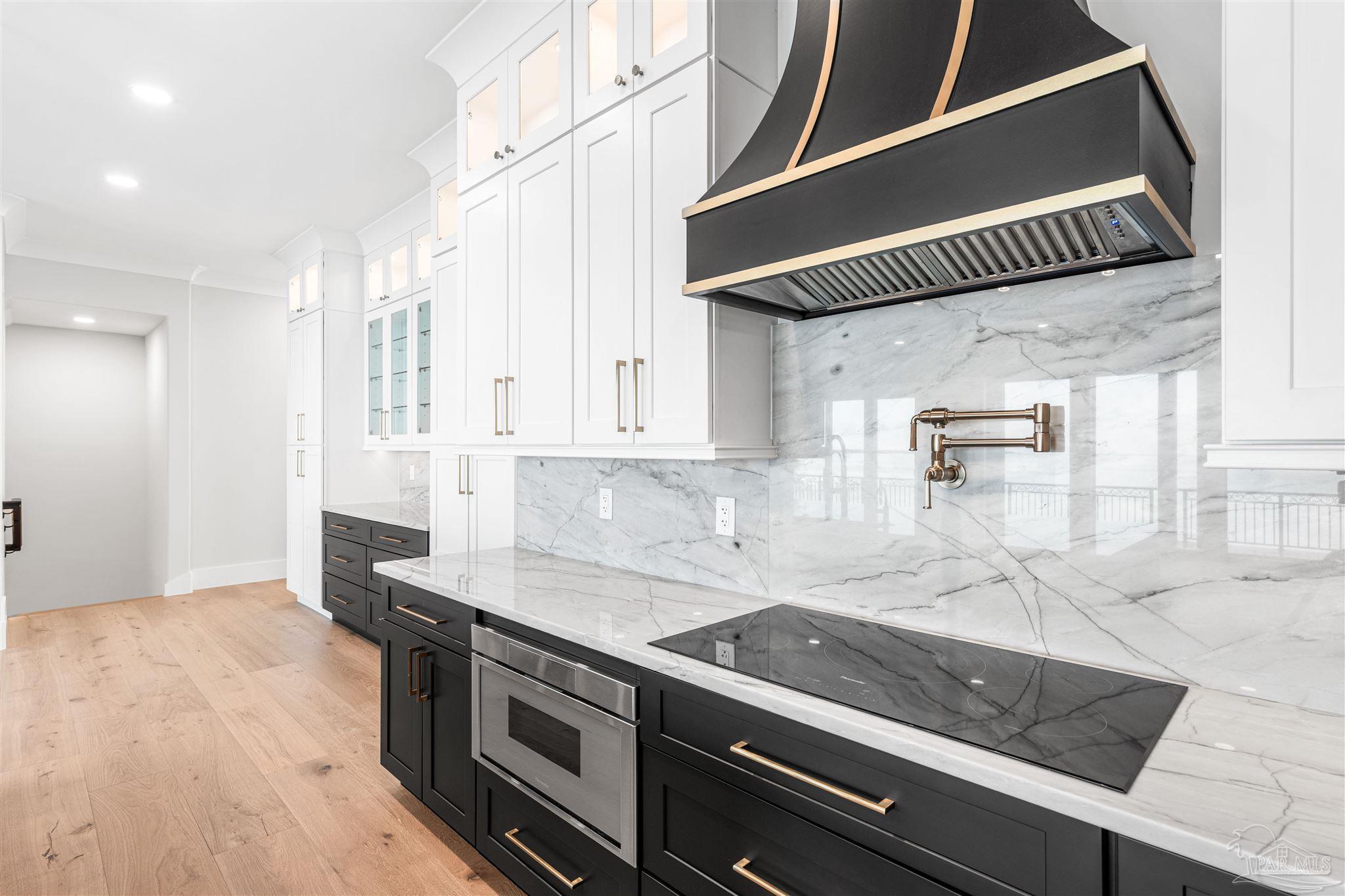 This is a must see newly built luxury home with all the bells and whistles. The home is built on a slab no flood zone with 3 full kitchens - 5 Bedrooms & 5 Full Baths & 1 Half (every bedroom has a bath). The home has an ELEVATOR that goes to all 3 Floors. Large Entry with beautiful double doors leading into the foyer with the elevator. 1st FL has a mother-in-law suite with Living room - Full Kitchen Large Bedroom with walkin shower - Utility room w/cabinets to fold clothes. Storage room. 2nd Floor Main Living Area - open Kitchen w/large island & top of the line appliances & soft close drawers - Large pantry - Large Master Bedroom with water view. Full Bath with soaking tub - walkin shower and large custom closet. Wine area with wine refrigerator. 2nd Bedroom w/full bath and walkin shower. The rooms have large windows for waterview & a walkout covered patio. 3rd floor has theater w/full Kitchen - Bedroom 4 w/full Bath - Bedroom 5 w/full bath. - Exercise room w/wet Bar to include refrigerator - sink - as well as covered deck. 3rd floor has stackable washer & dryer. 3rd Floor opens onto the covered patio in back & covered deck in front. This home will have crown molding - high ceilings - elevator to all 3 floors - 2nd washer & dryer on 3rd floor is a stackable for just that floor. The home will have 3 AC units - 2 Water Heaters - 2 Washer & Dryer units - 3 Full Kitchens w/Refrigerators. All flooring will be real engineered wood flooring and Porcelain Tile in all Baths. Boat slip #5 water & electric at end of dock. This is new construction w/new codes. Only new construction in Gulf Breeze proper. 3/4 Car Garage. Please note ceilings on all patios and decks. Seller will install a boat lift- Hot Tub on any deck - out door kitchen if Buyer desires or a sauna installed in exercise room - if not he will give a credit at closing. This home is READY TO MOVE INTO. Come See You Will Be Glad You Did.
