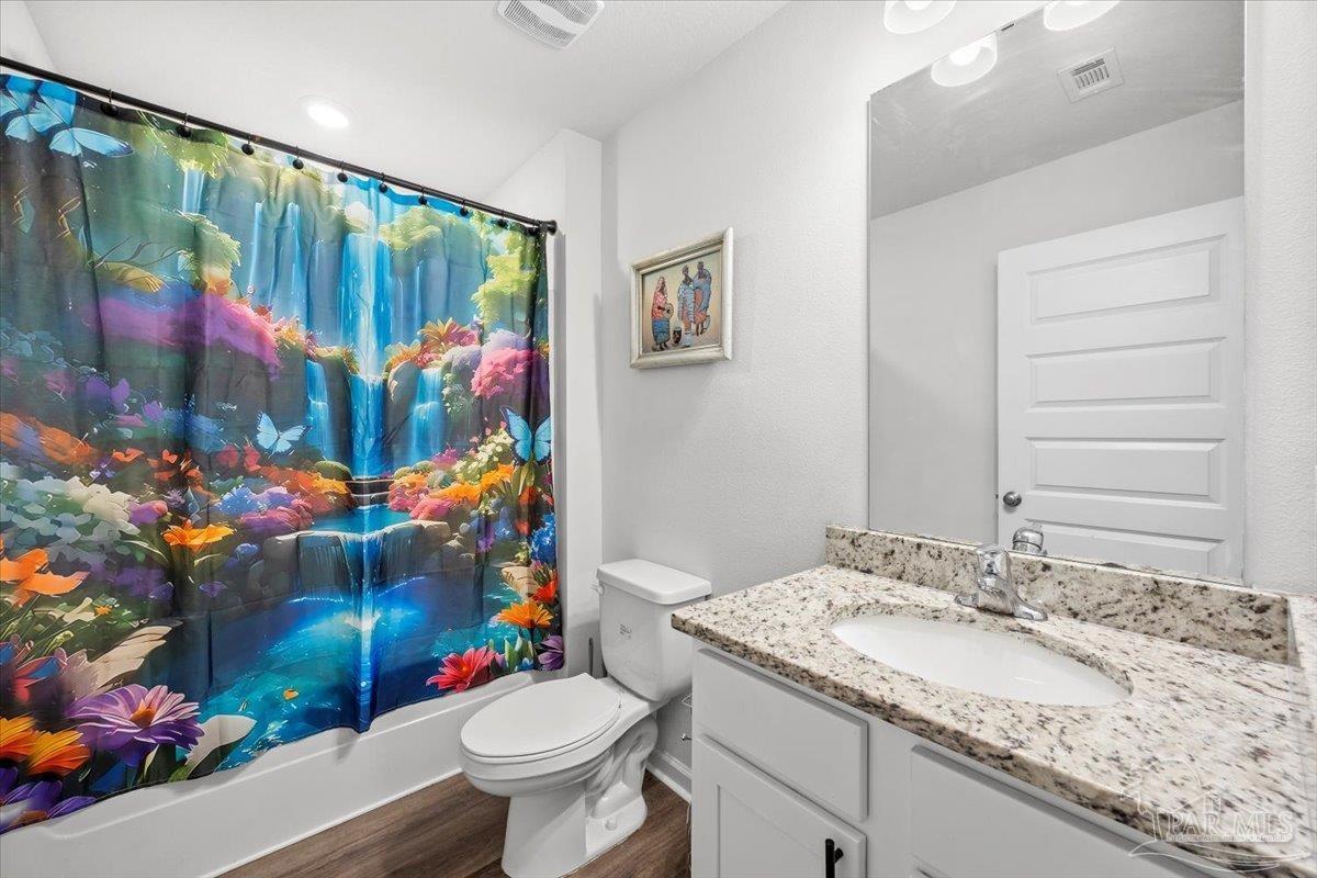 Discover this beautifully updated 2023 Craftsman-style home located in the heart of East Milton. Featuring 4 bedrooms and 2 baths, this residence blends modern design with timeless character, offering both style and function for today's lifestyle. As you step inside.. an open-concept living area bathed in natural light, enhanced by contemporary finishes and an eye-catching Art Deco painted feature wall adding personality and elegance to your living space. The kitchen is a chef's delight, showcasing granite countertops, sleek cabinetry, a spacious island, and matching granite surfaces in all wet areas. Whether you're preparing dinner or hosting guests, this space is designed to impress. Every window has been fitted with 2-inch faux wood blinds, providing privacy, light control, and a polished touch throughout the home. The primary suite offers a serene retreat with ample space, a walk-in closet, and a spa-inspired ensuite. The property also boasts a fully fenced-in backyard for your outdoor privacy, children and pets.