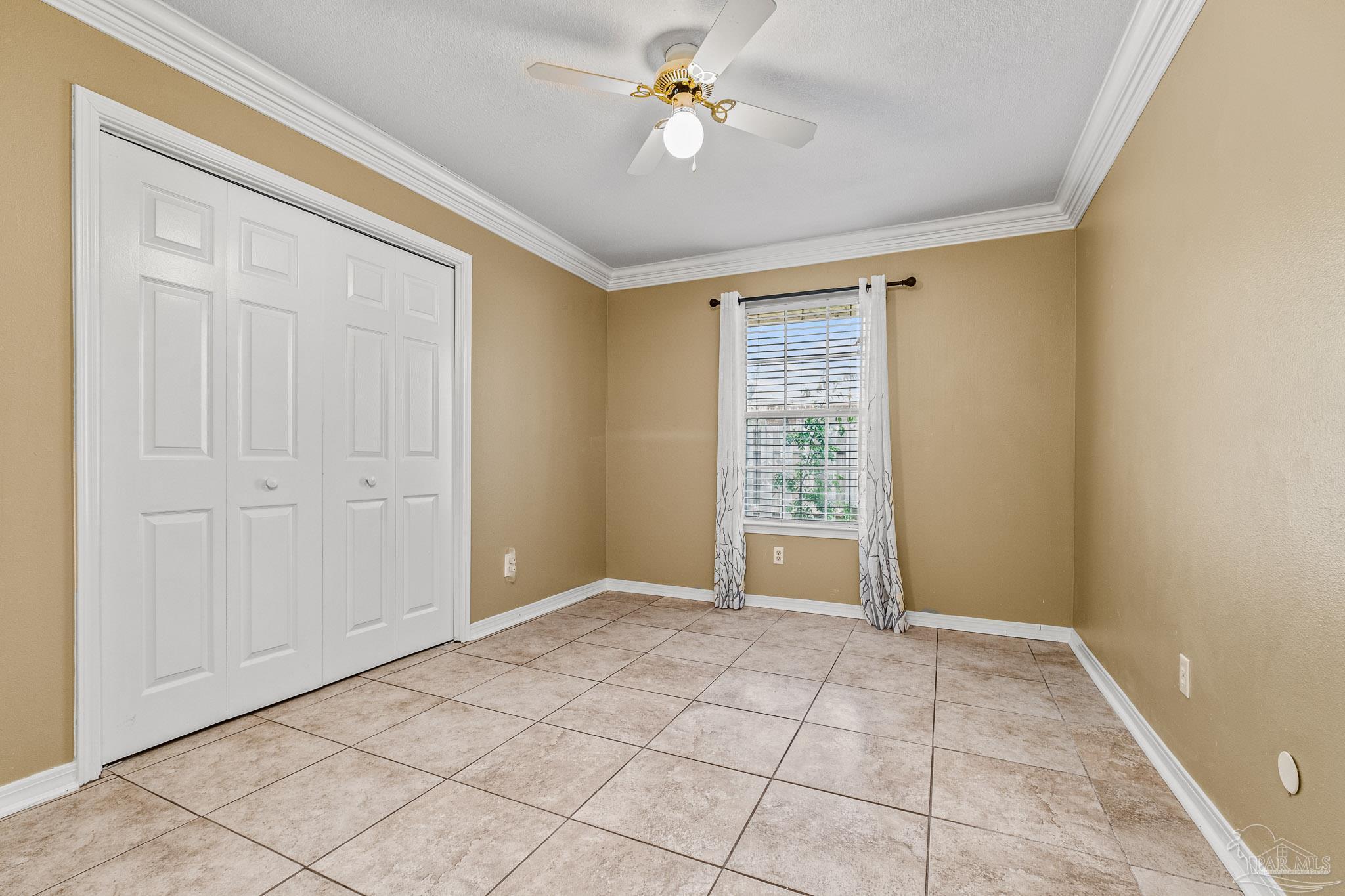 - Ceiling Fan(s), Crown Molding, Central Vacuum