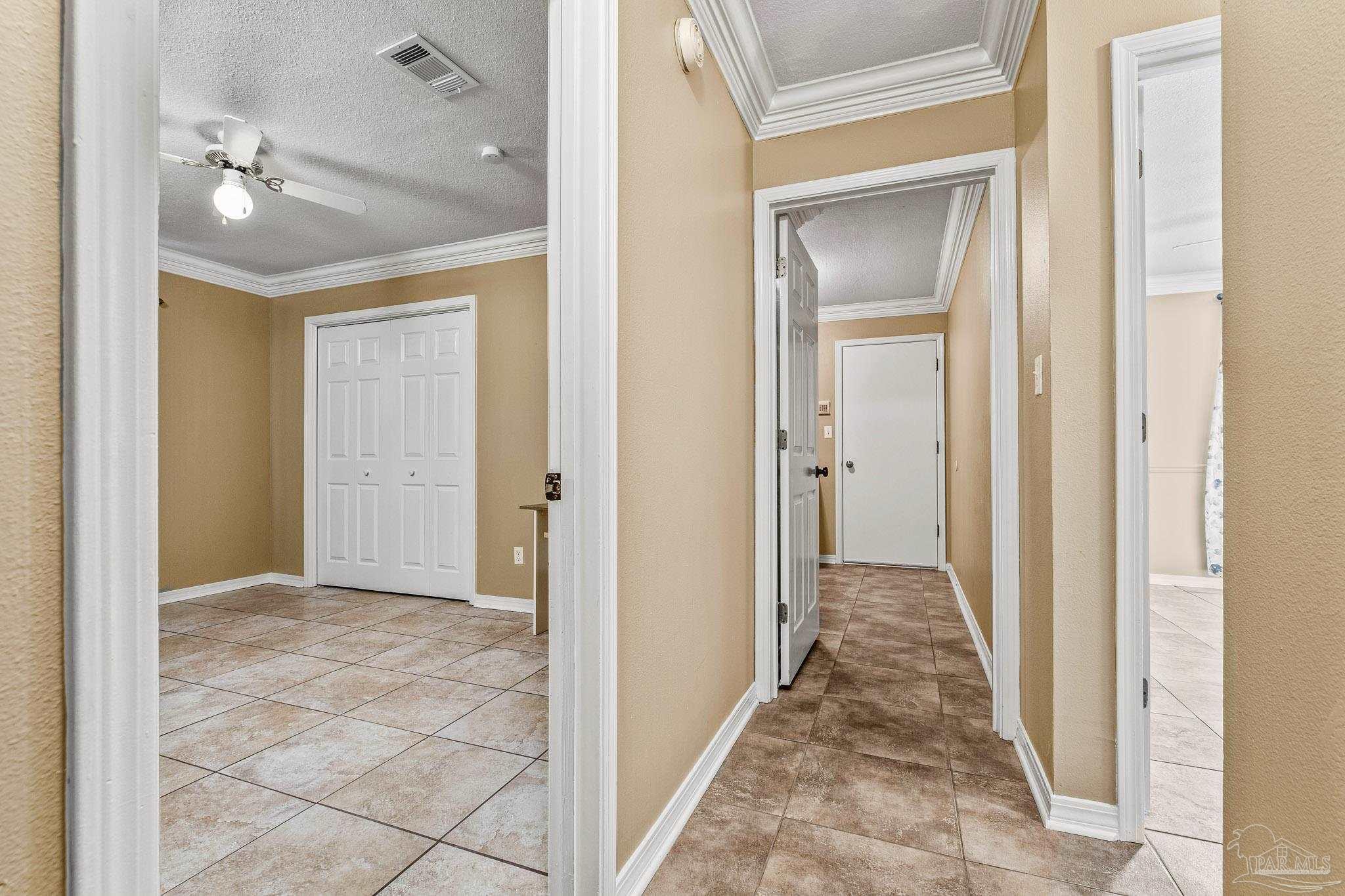 Welcome to this beautifully appointed 4-bedroom, 2-bathroom residence in the sought-after Kings Road area of Cantonment, Florida—a bright, open-and-welcoming space designed for both comfort and style. From the moment you arrive, you’re greeted by a spacious entry that flows seamlessly into an open-floor-plan living area. Vaulted ceilings rise above the living space, where natural light floods through expansive windows, and a cozy fireplace anchors the room – perfect for gatherings and quiet evenings alike. The heart of the home is the chef’s kitchen: bright and airy, featuring an island for casual dining and entertaining, generous counter space, and sleek finishes—all designed for ease and elegance with the Crown Molding throughout the house. Brand New HVAC replaces 2025, Water Heater replaces 2025, Roof replaces 2021. Come check this out.