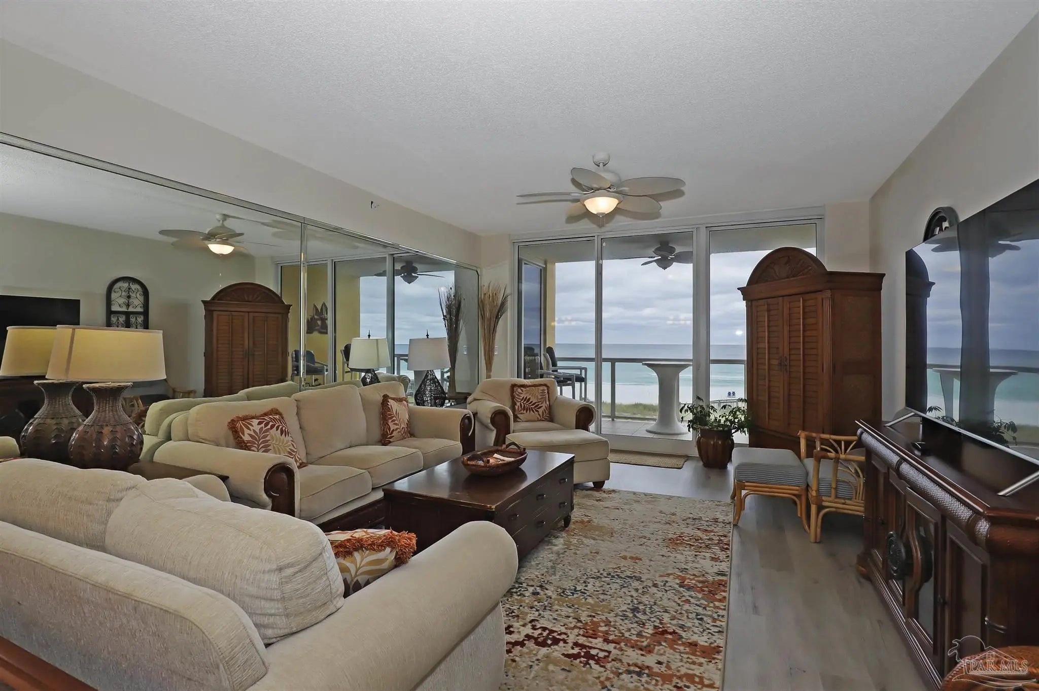 3BR/2BA Navarre Gulf-front condo (1999). 1,784 sf. Renovated w/ quartz counters, floor-to-ceiling windows & private balcony. Direct beach access & pool. Unbelievable Gulf views await from this stunning second-story, furnished unit in the highly sought-after Caribbean Resort on Navarre Beach. Floor-to-ceiling windows in both the living room and primary bedroom showcase the turquoise waters of the Gulf, creating a breathtaking backdrop for everyday living. The Gulf-front primary suite offers private balcony access, allowing you to wake up to the sound of the waves and sweeping views of the shoreline. In addition to the primary suite, there are two full-sized bedrooms and a total of two beautifully updated bathrooms. The unit has been tastefully renovated and stylishly appointed, featuring luxury vinyl flooring, modern kitchen cabinetry, and elegant quartz countertops. Step out onto the spacious balcony to take in even more panoramic views up and down pristine Navarre Beach. Additional features include an in-unit washer and dryer and a separate storage area perfect for beach gear. Resort-style amenities include a beachfront pool, whirlpool spa, and direct beach access with walkover and outdoor showers. Whether you’re looking for a primary residence, second home, or lucrative investment property, this condo delivers it all. Enjoy private Gulf-front vistas from your balcony and serene Santa Rosa Sound views when entering or exiting the condo. From sunrise coffee overlooking the ocean to peaceful walks on the sugar-white sands and the iconic Navarre Beach Pier, this property offers the best of coastal living with 9-foot ceilings and unmatched luxury.