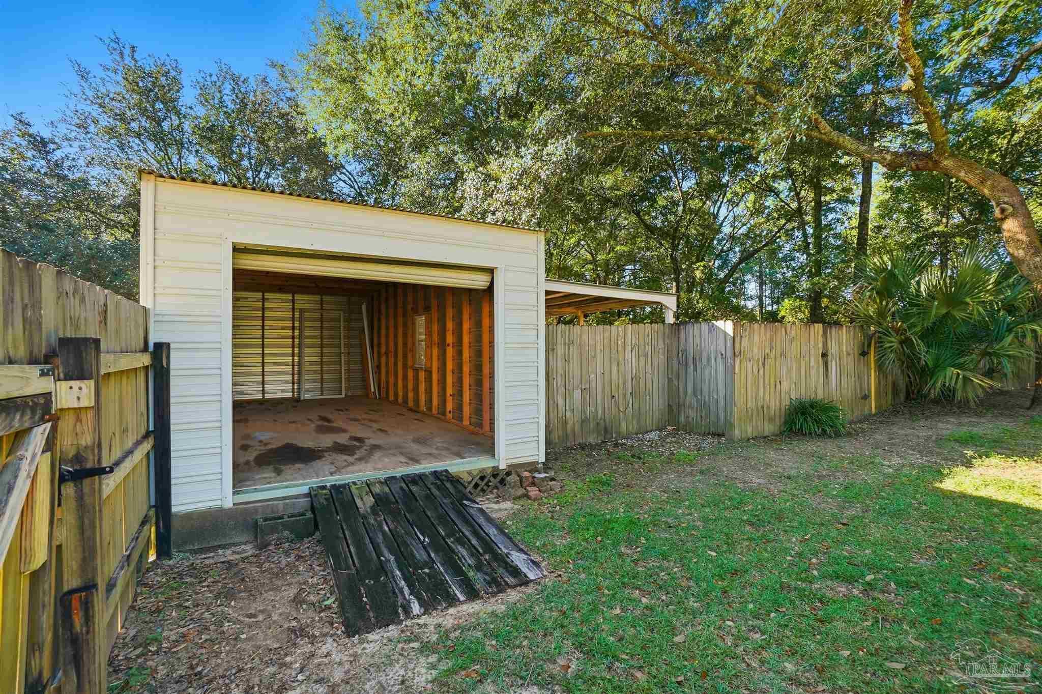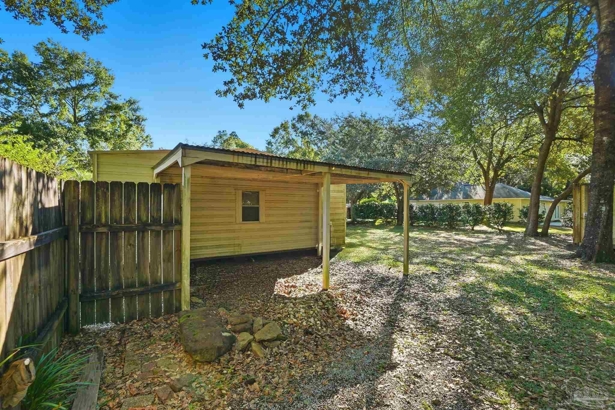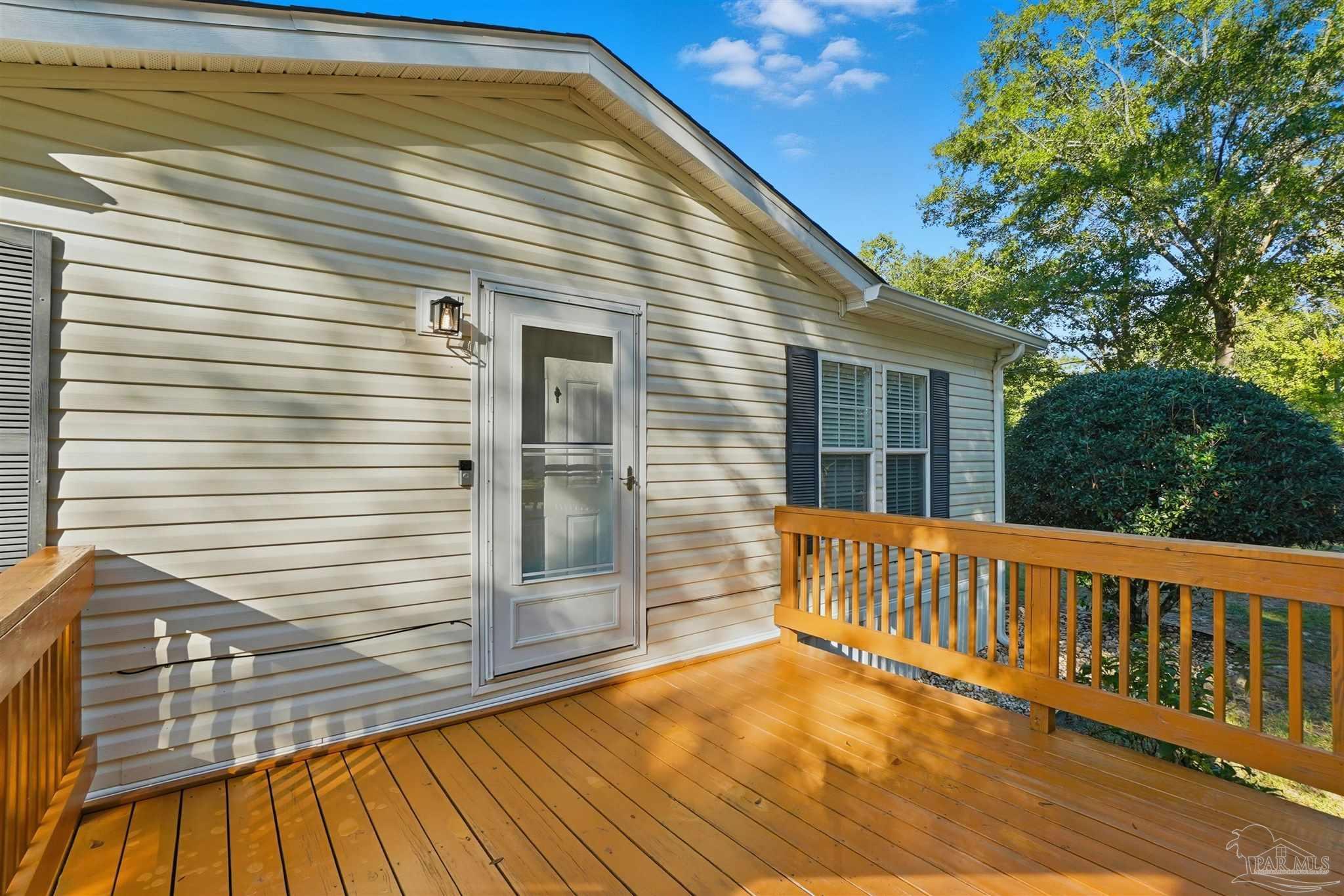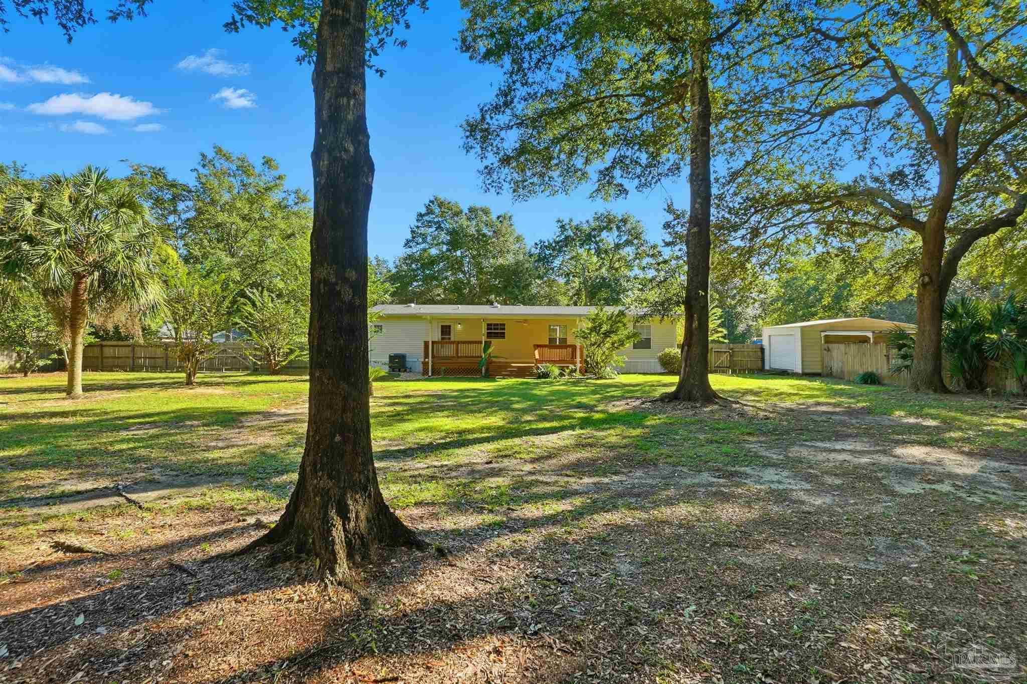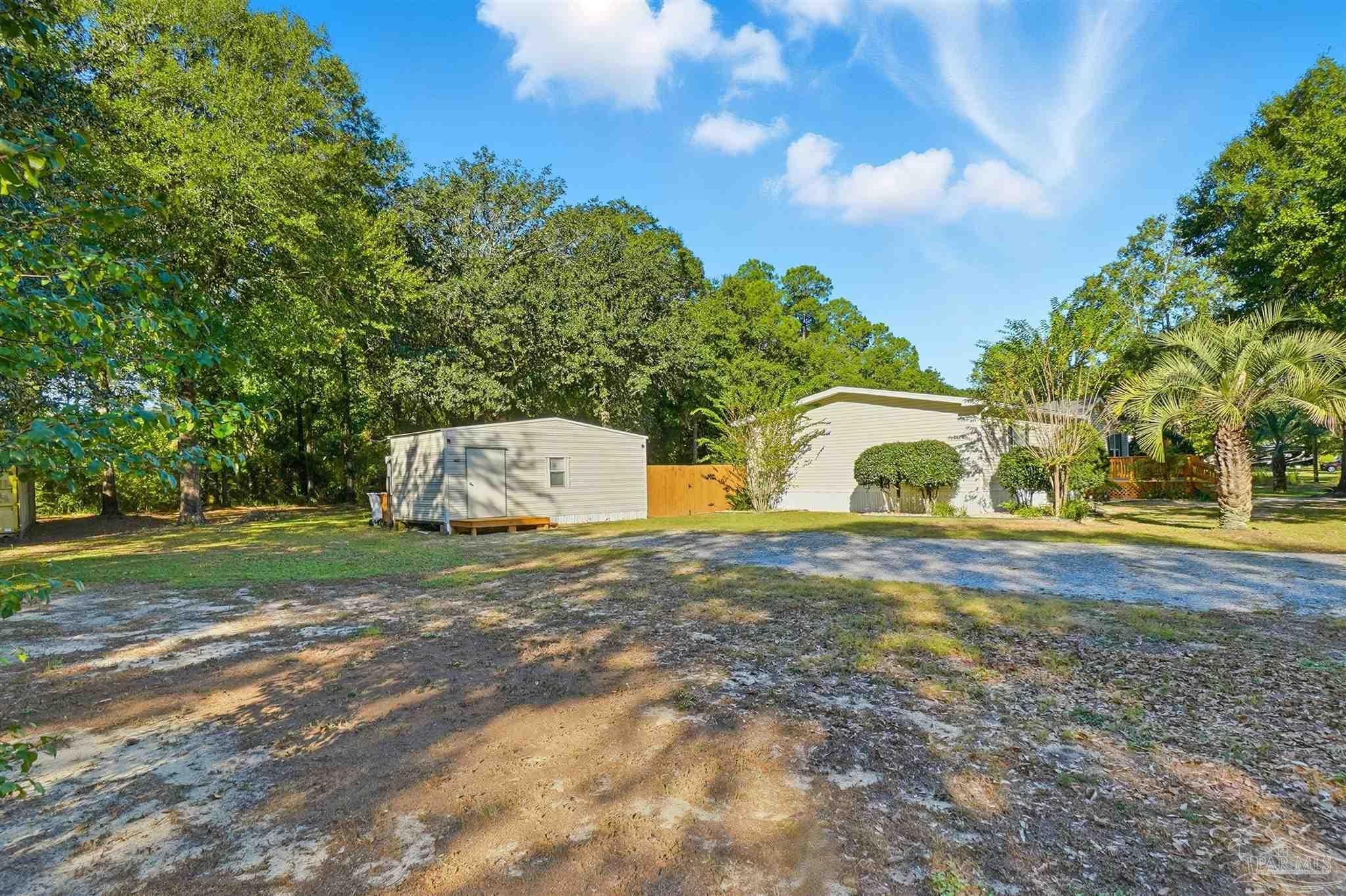 Beautifully Maintained Home on .90 acre in East Milton with Workshop and Conox Box! This charming 3-bedroom, 2-bath home offers 1,800 sq. ft. of comfortable living space with thoughtful upgrades throughout — including LVP flooring in main living area, carpet in bedrooms, updated lighting, tile kitchen backsplash, crown molding, and a brand-new roof (2025)!You are welcomed by a circle drive, offering plenty of parking. This property expands over 200 ft of road frontage. Enjoy a welcoming open front porch and a large covered back porch overlooking the privacy fenced backyard, perfect for relaxing or entertaining your family and friends. Stepping inside, you’ll find a spacious open floor plan with crown molding throughout, spacious living room, LVP flooring throughout the main living area, opening up into the dining and kitchen. The kitchen is complete with a breakfast bar and it's a true chefs dream kitchen offering ample counter space, granite countertops, subway tile backsplash, pendent lighting, and plenty of storage including a corner lazy susan. The split bedroom layout provides privacy, with a large master suite offering a soaking tub, seperate shower, walk-in closet, large vanity, and private water closet. The additional bedrooms and bath both have walk in closets. Outside, there’s room for all your hobbies and storage needs with a large privacy fenced yard, a workshop/storage building with roll-up and walk-through door, includes power — perfect for projects or equipment. In addition there is a large Conex Box with electricity perfect for extra storage!!! Conveniently located just off Hwy 87, offering an easy commute to local amenities, nearby I10, as well as a short 30 minute drive to Navaree Beach! No HOA, bring your boat, RV and enjoy the freedom this property offers. The property comes with transferable roof warranty, transferable Orkin termite bond and 1 year Home Warranty! Schedule your appointment today to view!