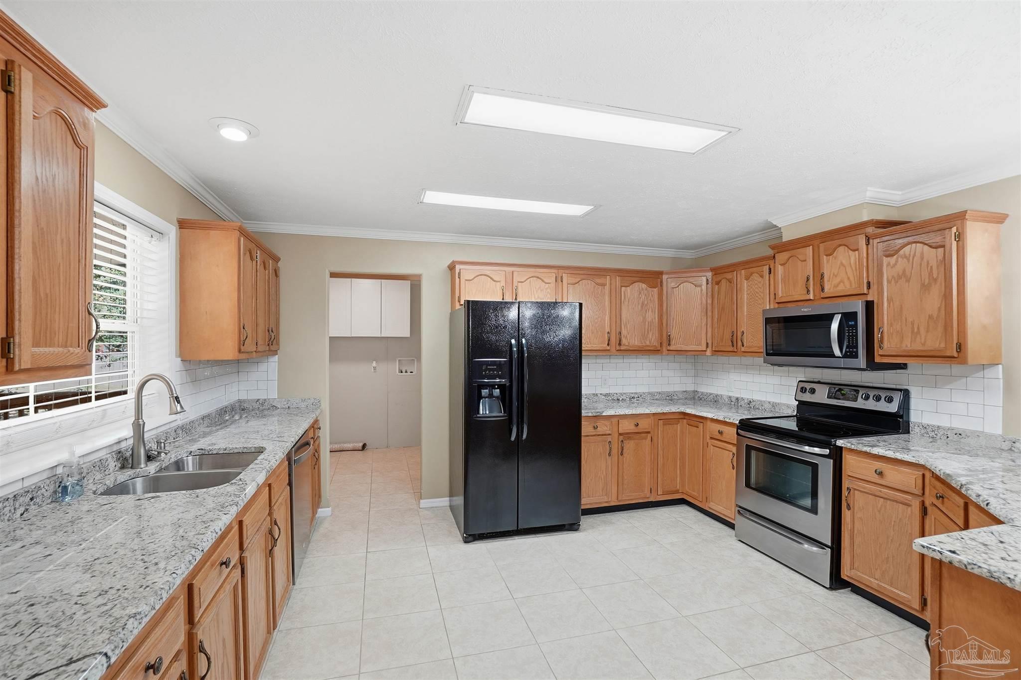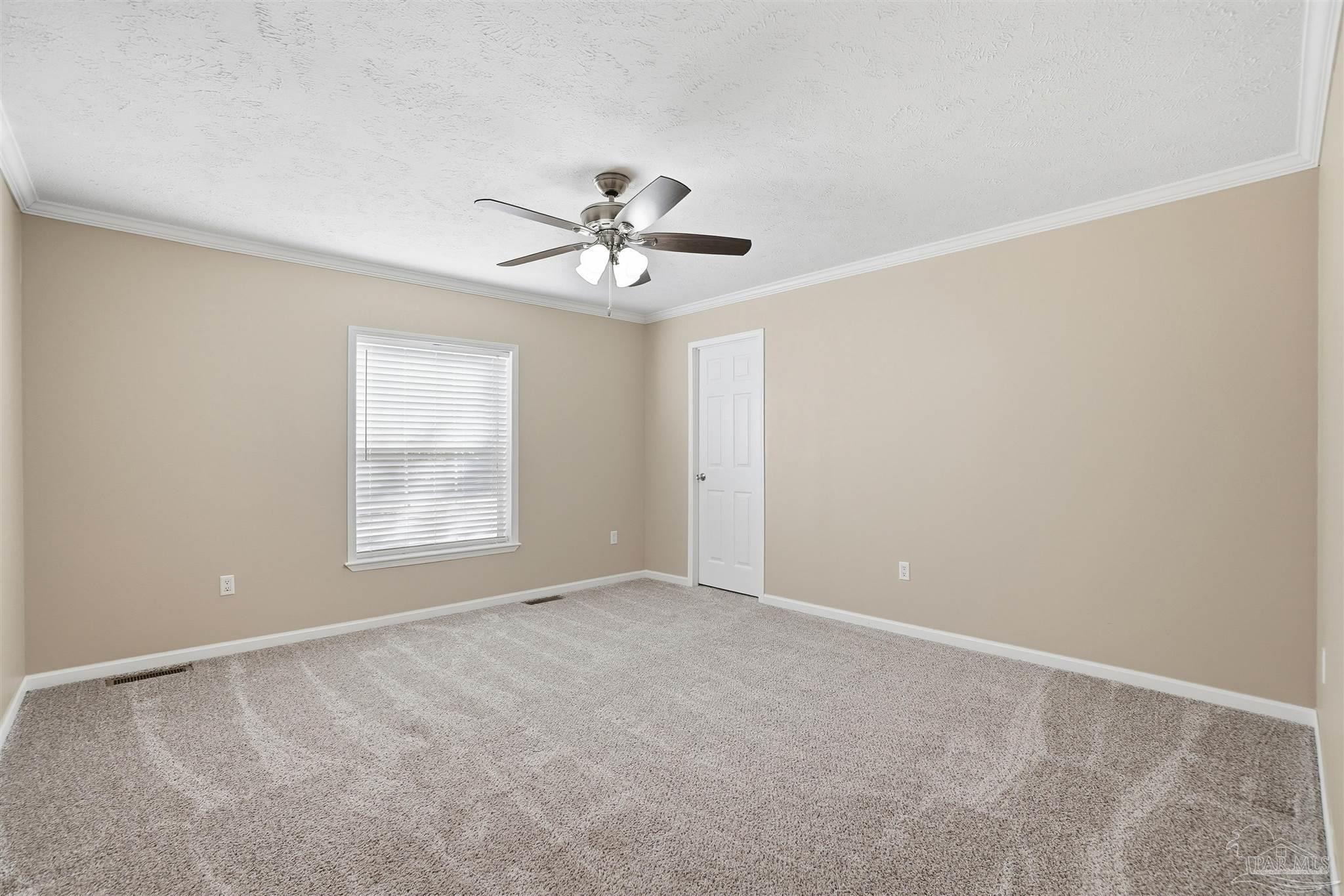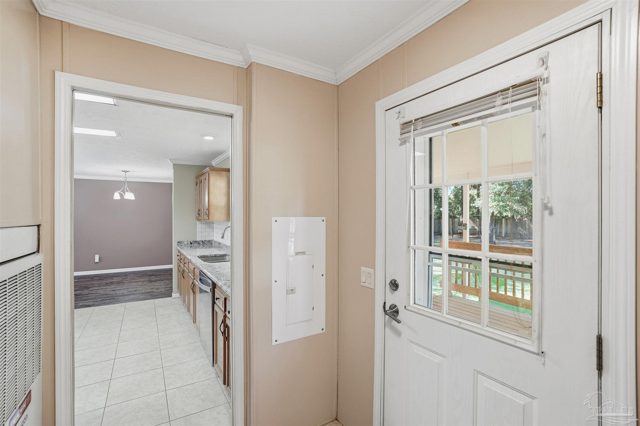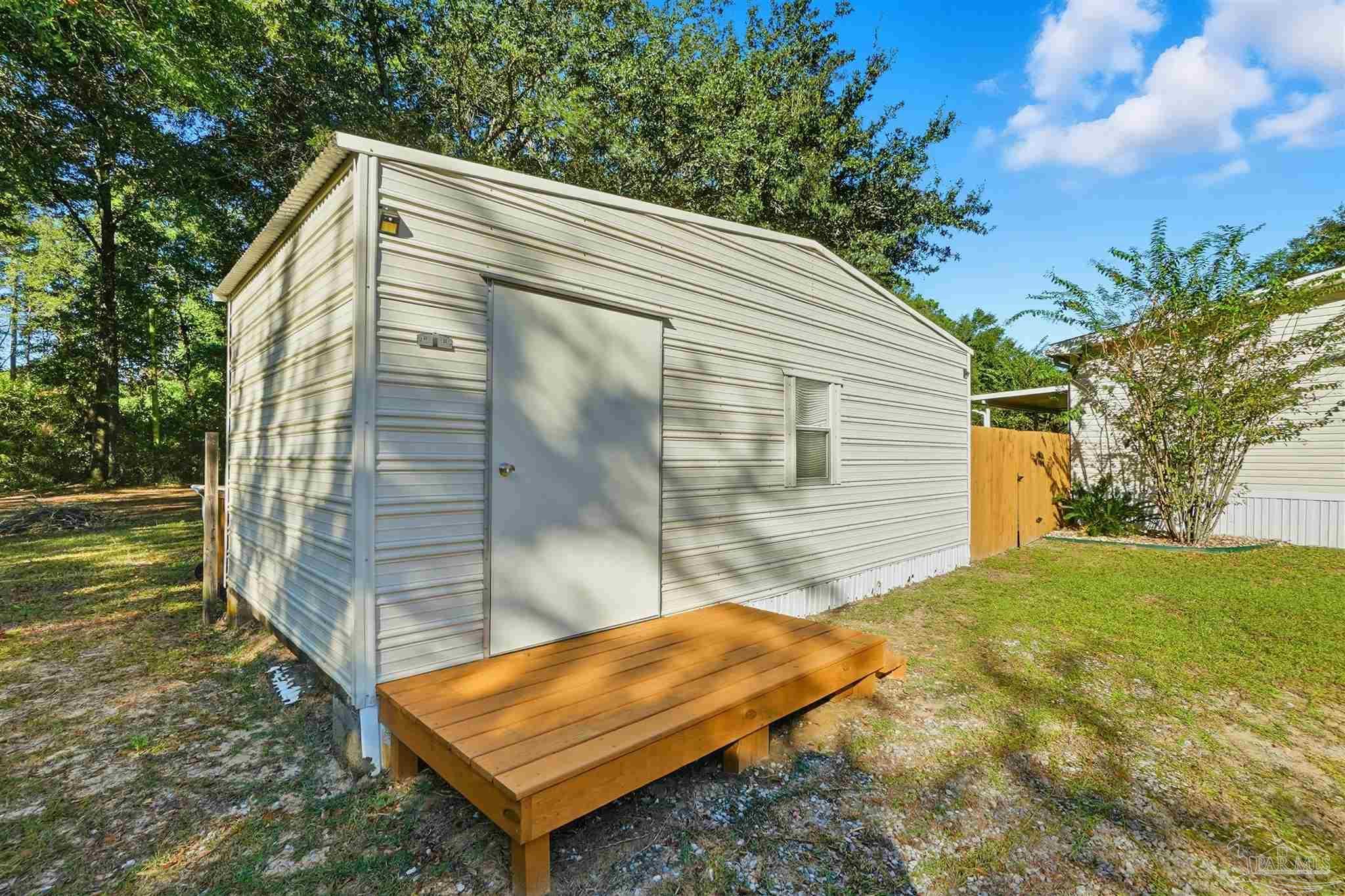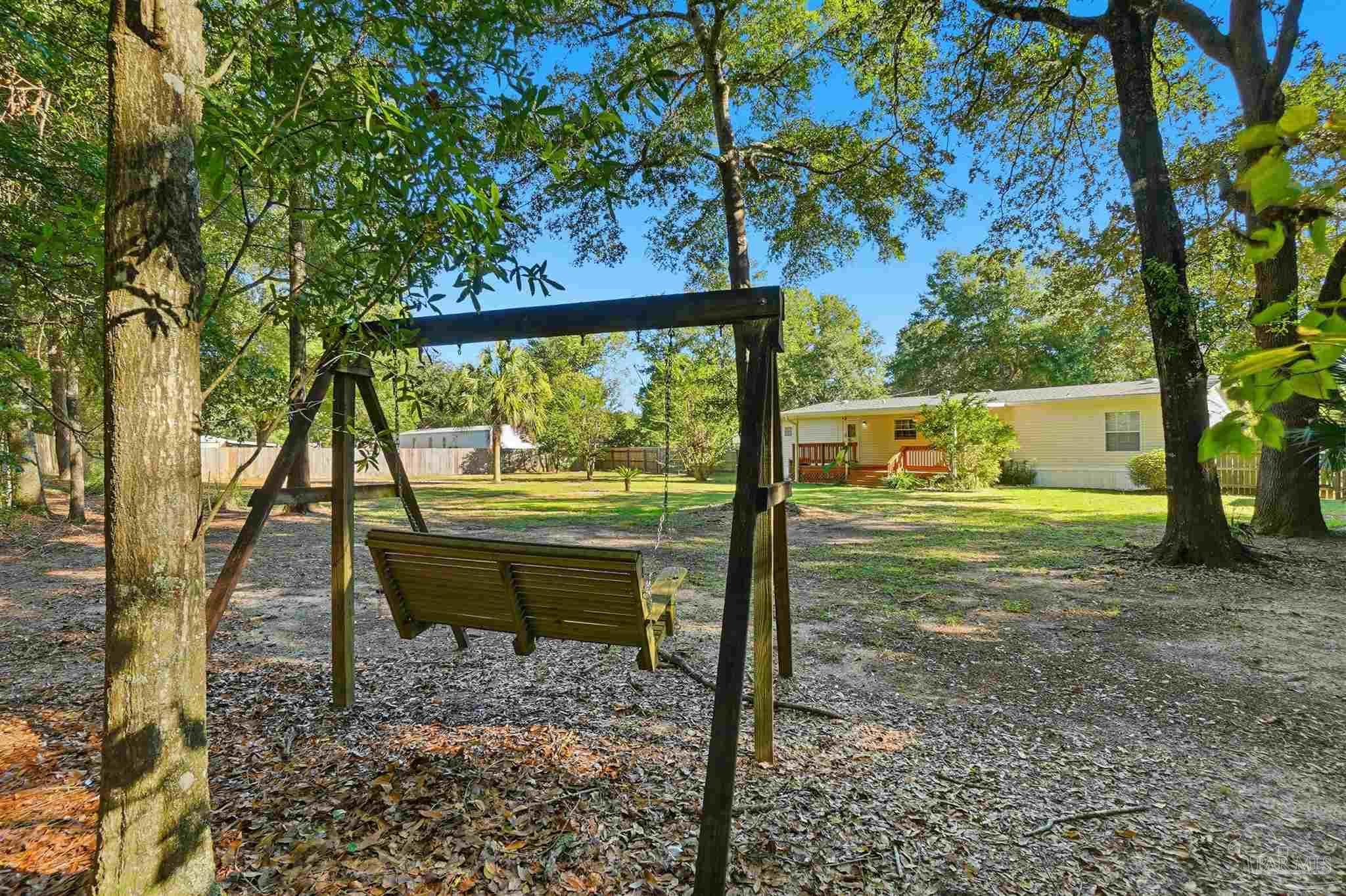 Beautifully Maintained Home on .90 acre in East Milton with Workshop and Conox Box! This charming 3-bedroom, 2-bath home offers 1,800 sq. ft. of comfortable living space with thoughtful upgrades throughout — including LVP flooring in main living area, carpet in bedrooms, updated lighting, tile kitchen backsplash, crown molding, and a brand-new roof (2025)!You are welcomed by a circle drive, offering plenty of parking. This property expands over 200 ft of road frontage. Enjoy a welcoming open front porch and a large covered back porch overlooking the privacy fenced backyard, perfect for relaxing or entertaining your family and friends. Stepping inside, you’ll find a spacious open floor plan with crown molding throughout, spacious living room, LVP flooring throughout the main living area, opening up into the dining and kitchen. The kitchen is complete with a breakfast bar and it's a true chefs dream kitchen offering ample counter space, granite countertops, subway tile backsplash, pendent lighting, and plenty of storage including a corner lazy susan. The split bedroom layout provides privacy, with a large master suite offering a soaking tub, seperate shower, walk-in closet, large vanity, and private water closet. The additional bedrooms and bath both have walk in closets. Outside, there’s room for all your hobbies and storage needs with a large privacy fenced yard, a workshop/storage building with roll-up and walk-through door, includes power — perfect for projects or equipment. In addition there is a large Conex Box with electricity perfect for extra storage!!! Conveniently located just off Hwy 87, offering an easy commute to local amenities, nearby I10, as well as a short 30 minute drive to Navaree Beach! No HOA, bring your boat, RV and enjoy the freedom this property offers. The property comes with transferable roof warranty, transferable Orkin termite bond and 1 year Home Warranty! Schedule your appointment today to view!