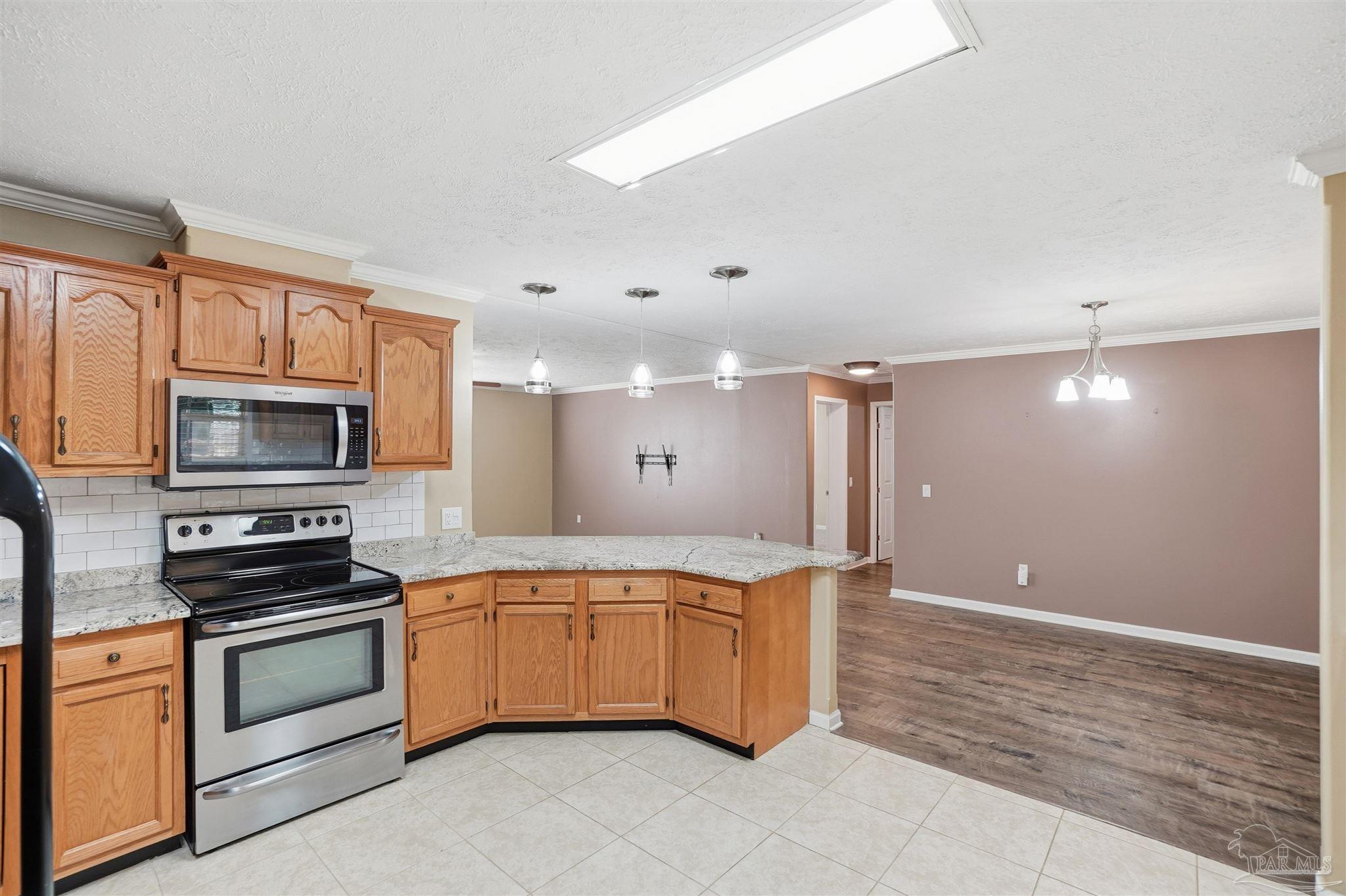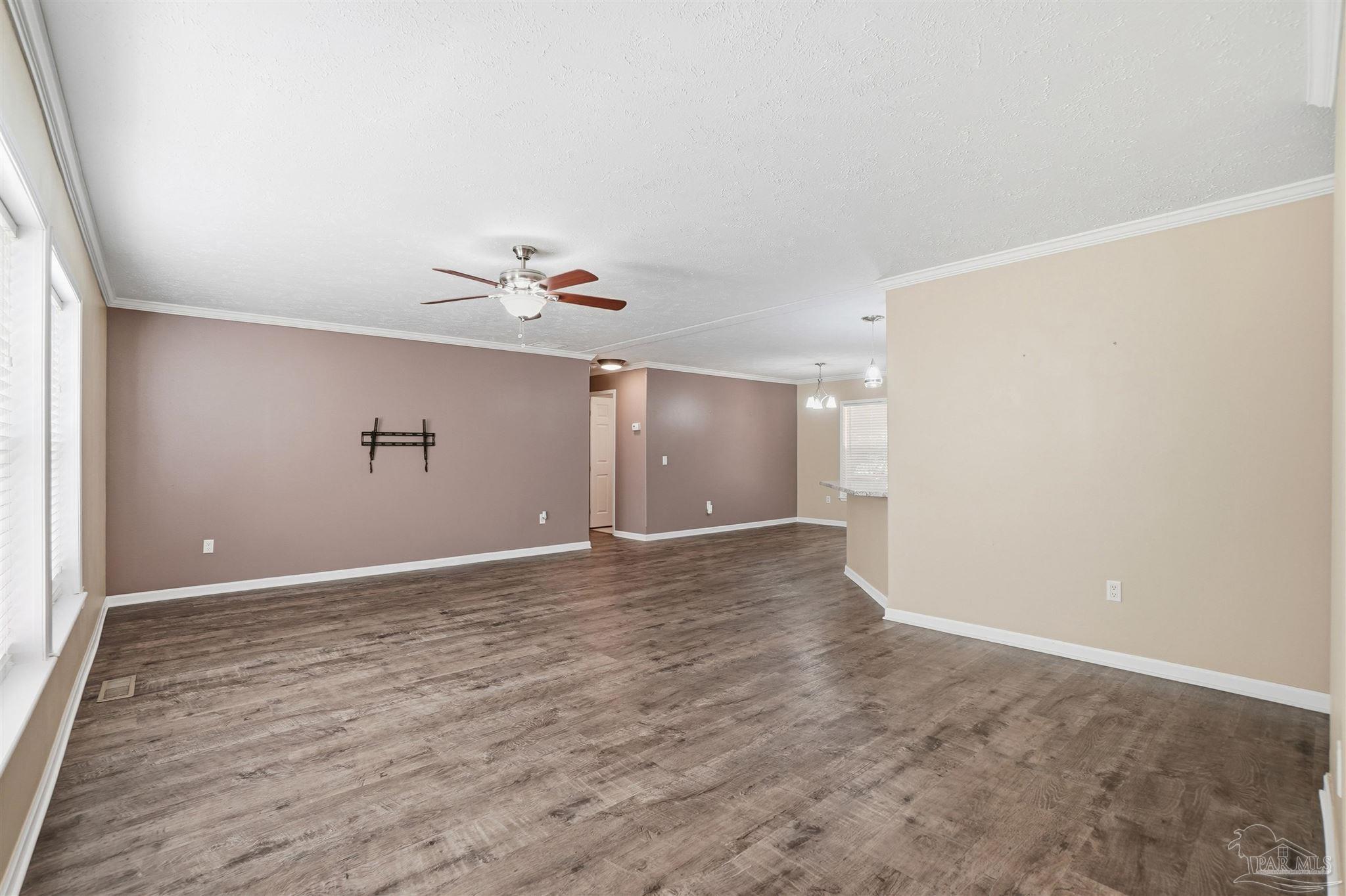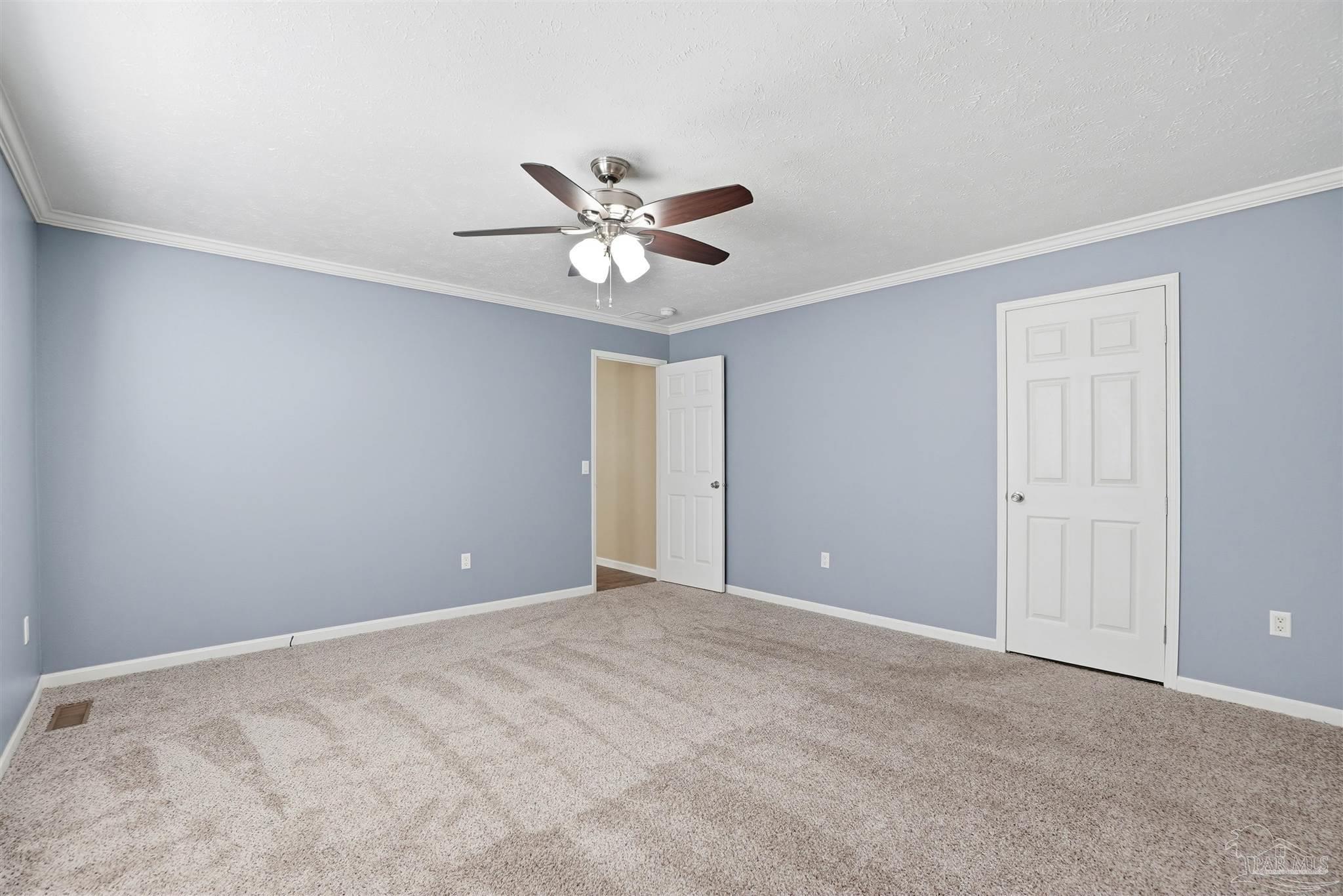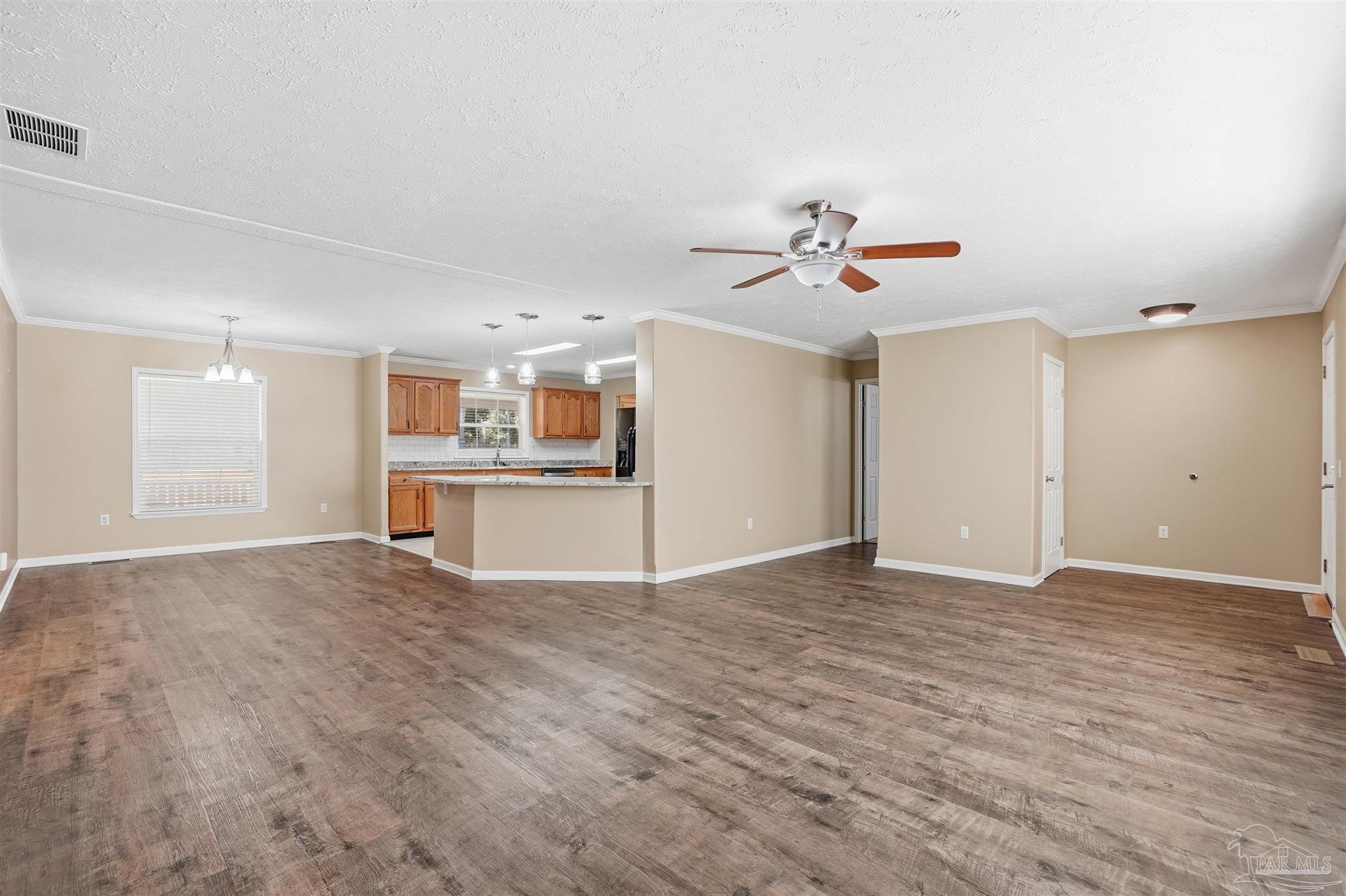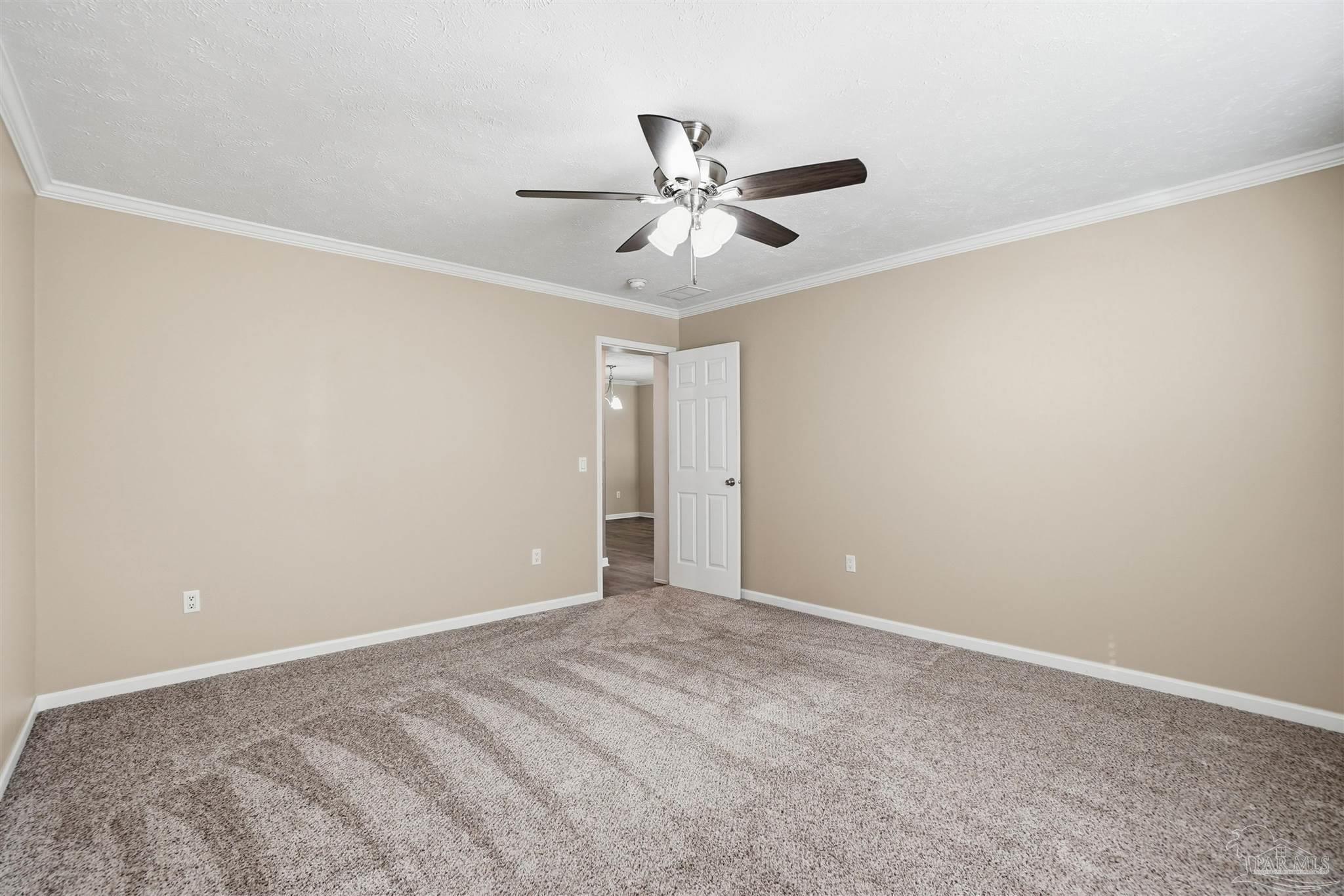 Beautifully Maintained Home on .90 acre in East Milton with Workshop and Conox Box! This charming 3-bedroom, 2-bath home offers 1,800 sq. ft. of comfortable living space with thoughtful upgrades throughout — including LVP flooring in main living area, carpet in bedrooms, updated lighting, tile kitchen backsplash, crown molding, and a brand-new roof (2025)!You are welcomed by a circle drive, offering plenty of parking. This property expands over 200 ft of road frontage. Enjoy a welcoming open front porch and a large covered back porch overlooking the privacy fenced backyard, perfect for relaxing or entertaining your family and friends. Stepping inside, you’ll find a spacious open floor plan with crown molding throughout, spacious living room, LVP flooring throughout the main living area, opening up into the dining and kitchen. The kitchen is complete with a breakfast bar and it's a true chefs dream kitchen offering ample counter space, granite countertops, subway tile backsplash, pendent lighting, and plenty of storage including a corner lazy susan. The split bedroom layout provides privacy, with a large master suite offering a soaking tub, seperate shower, walk-in closet, large vanity, and private water closet. The additional bedrooms and bath both have walk in closets. Outside, there’s room for all your hobbies and storage needs with a large privacy fenced yard, a workshop/storage building with roll-up and walk-through door, includes power — perfect for projects or equipment. In addition there is a large Conex Box with electricity perfect for extra storage!!! Conveniently located just off Hwy 87, offering an easy commute to local amenities, nearby I10, as well as a short 30 minute drive to Navaree Beach! No HOA, bring your boat, RV and enjoy the freedom this property offers. The property comes with transferable roof warranty, transferable Orkin termite bond and 1 year Home Warranty! Schedule your appointment today to view!