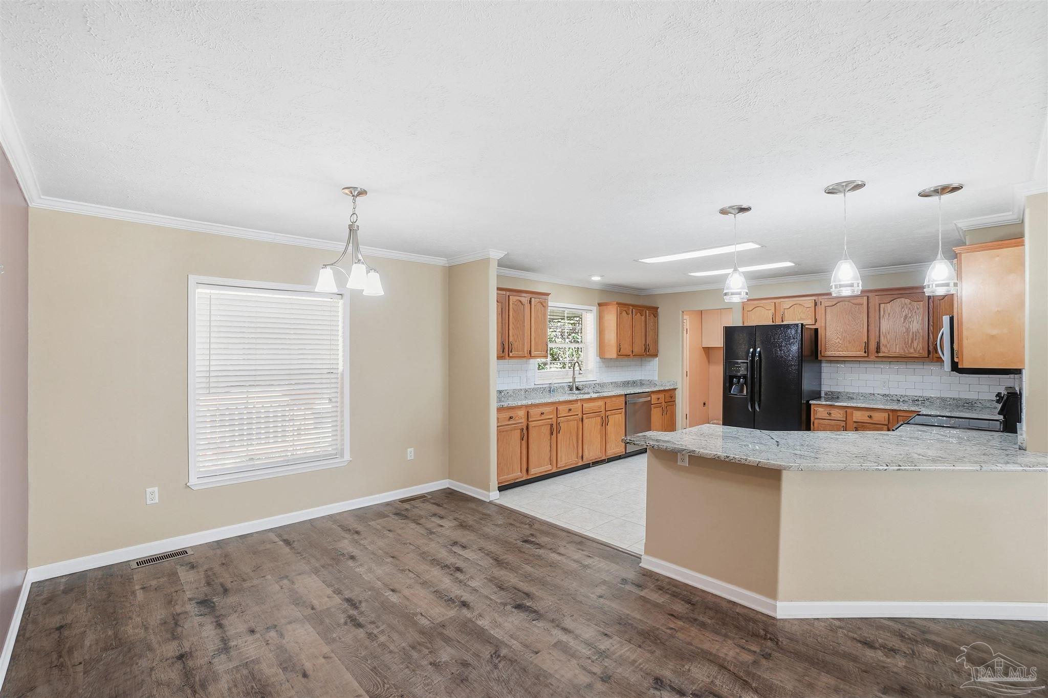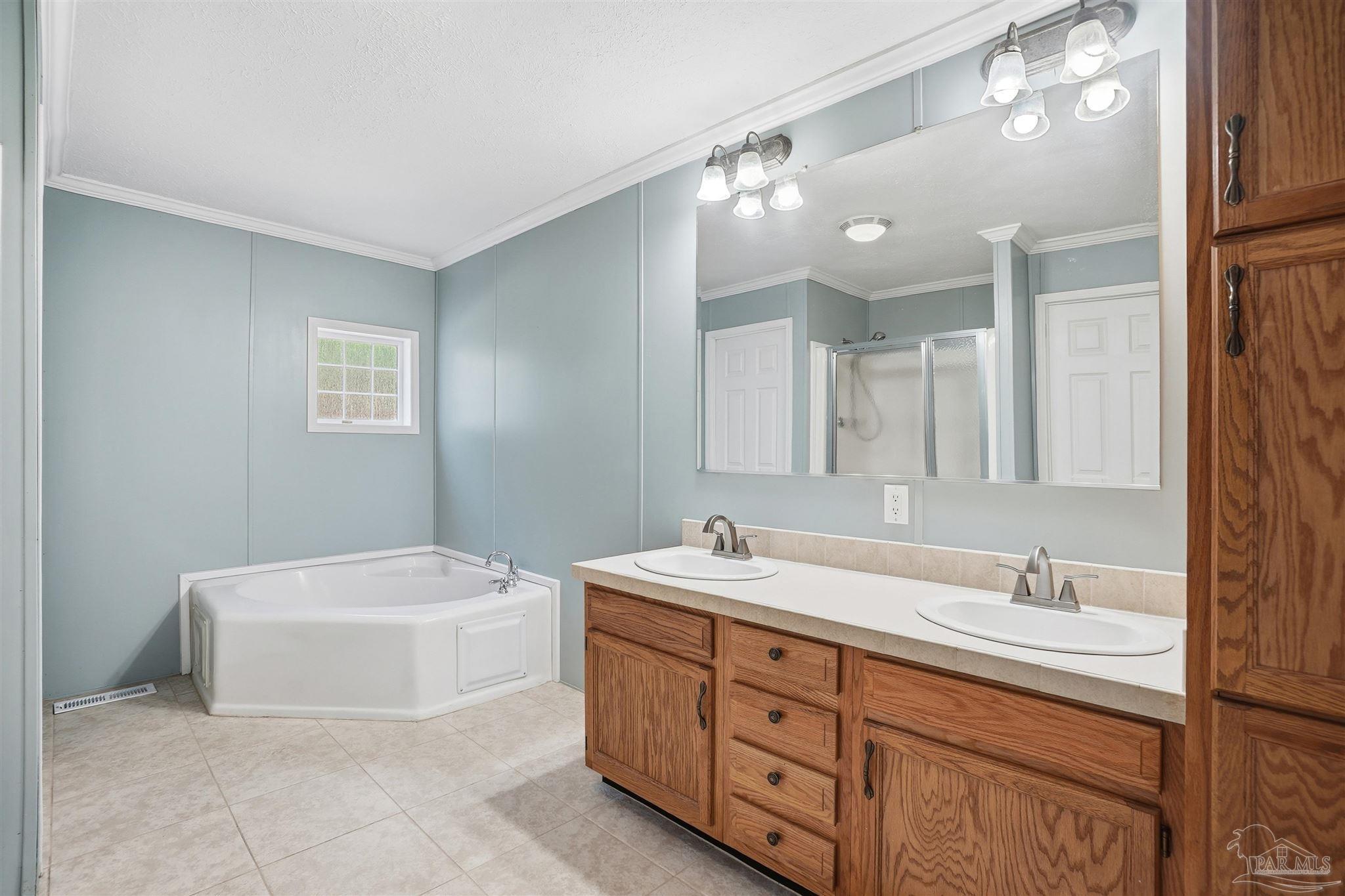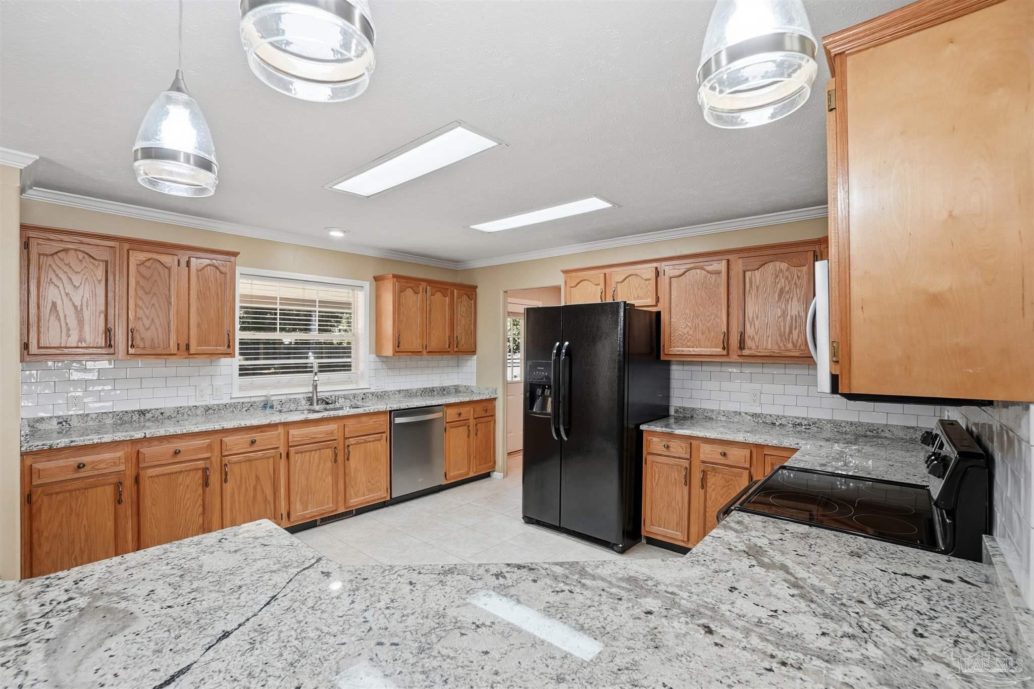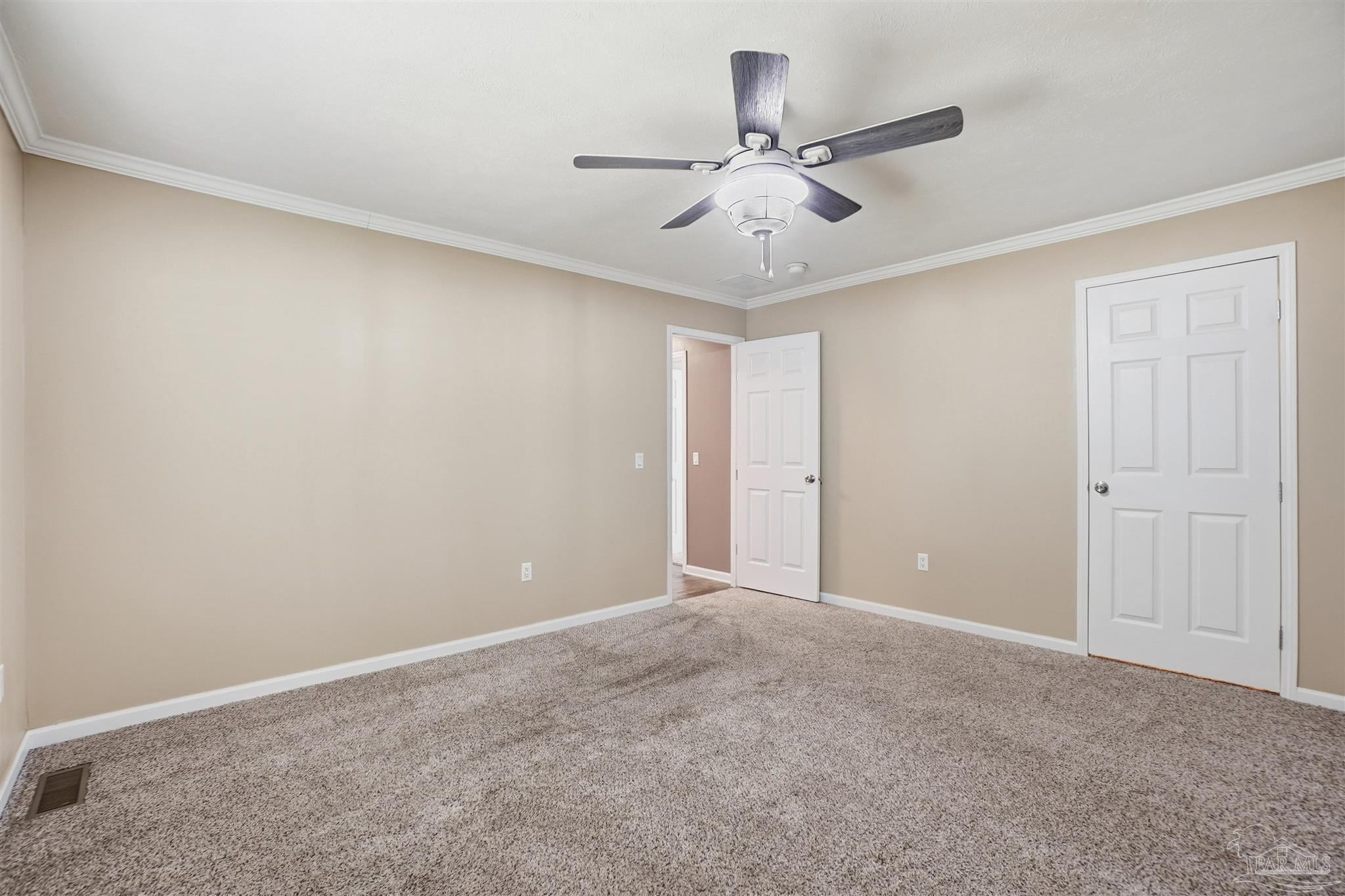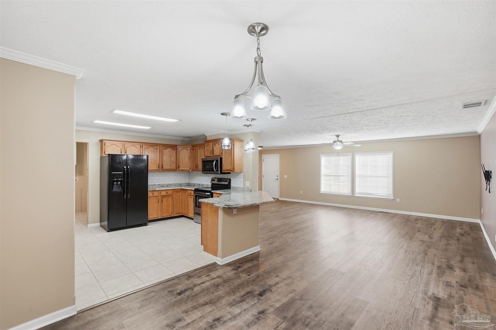 Beautifully Maintained Home on .90 acre in East Milton with Workshop and Conox Box! This charming 3-bedroom, 2-bath home offers 1,800 sq. ft. of comfortable living space with thoughtful upgrades throughout — including LVP flooring in main living area, carpet in bedrooms, updated lighting, tile kitchen backsplash, crown molding, and a brand-new roof (2025)!You are welcomed by a circle drive, offering plenty of parking. This property expands over 200 ft of road frontage. Enjoy a welcoming open front porch and a large covered back porch overlooking the privacy fenced backyard, perfect for relaxing or entertaining your family and friends. Stepping inside, you’ll find a spacious open floor plan with crown molding throughout, spacious living room, LVP flooring throughout the main living area, opening up into the dining and kitchen. The kitchen is complete with a breakfast bar and it's a true chefs dream kitchen offering ample counter space, granite countertops, subway tile backsplash, pendent lighting, and plenty of storage including a corner lazy susan. The split bedroom layout provides privacy, with a large master suite offering a soaking tub, seperate shower, walk-in closet, large vanity, and private water closet. The additional bedrooms and bath both have walk in closets. Outside, there’s room for all your hobbies and storage needs with a large privacy fenced yard, a workshop/storage building with roll-up and walk-through door, includes power — perfect for projects or equipment. In addition there is a large Conex Box with electricity perfect for extra storage!!! Conveniently located just off Hwy 87, offering an easy commute to local amenities, nearby I10, as well as a short 30 minute drive to Navaree Beach! No HOA, bring your boat, RV and enjoy the freedom this property offers. The property comes with transferable roof warranty, transferable Orkin termite bond and 1 year Home Warranty! Schedule your appointment today to view!