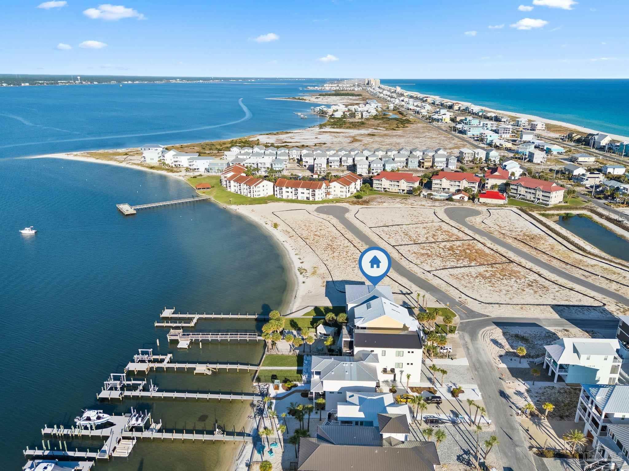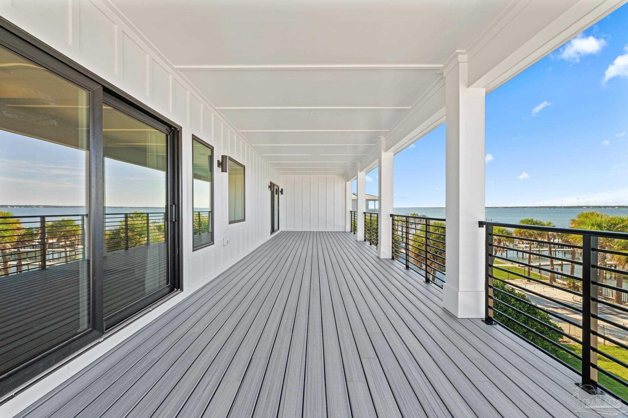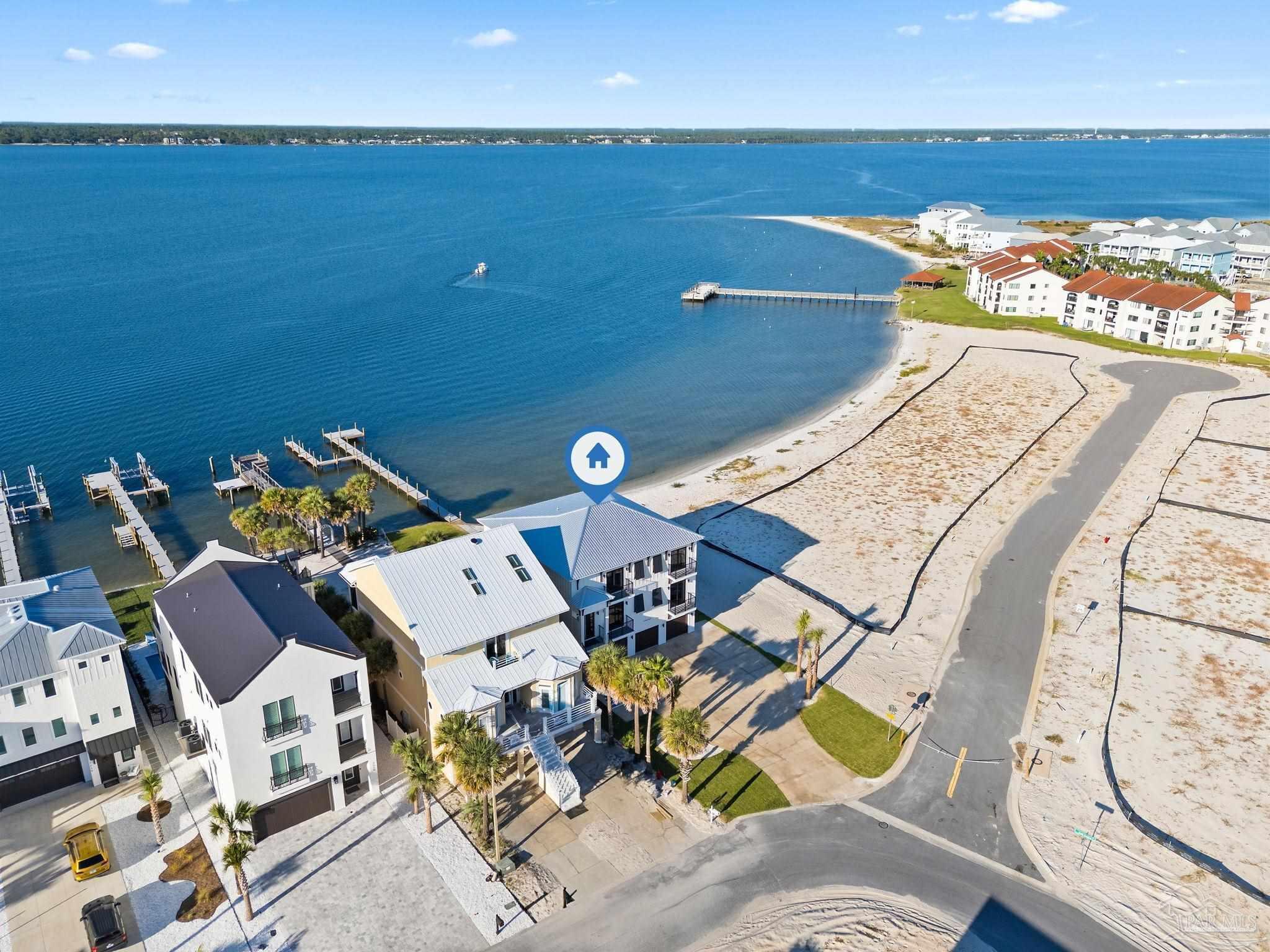 Brand new construction on a deep water lot with a dock on the Sound at beautiful Navarre Beach! This Bock Construction home was just completed and is ready for you. This home is being sold fully furnished and could be an amazing waterfront home with a place to keep your boat in your own backyard or as an amazing turnkey vacation rental. Excellent water depth at the dock. Enjoy multiple 50 feet waterfront decks to watch the birds and the dolphins while being steps away from a relaxing great room with room for everybody. Plenty of storage underneath for all your toys and beach gear along with an elevator so everyone has easy access to this beautiful home. The outside is as beautiful as the gorgeous interior and features the dock, a sodded yard, and a white sandy beach out back!