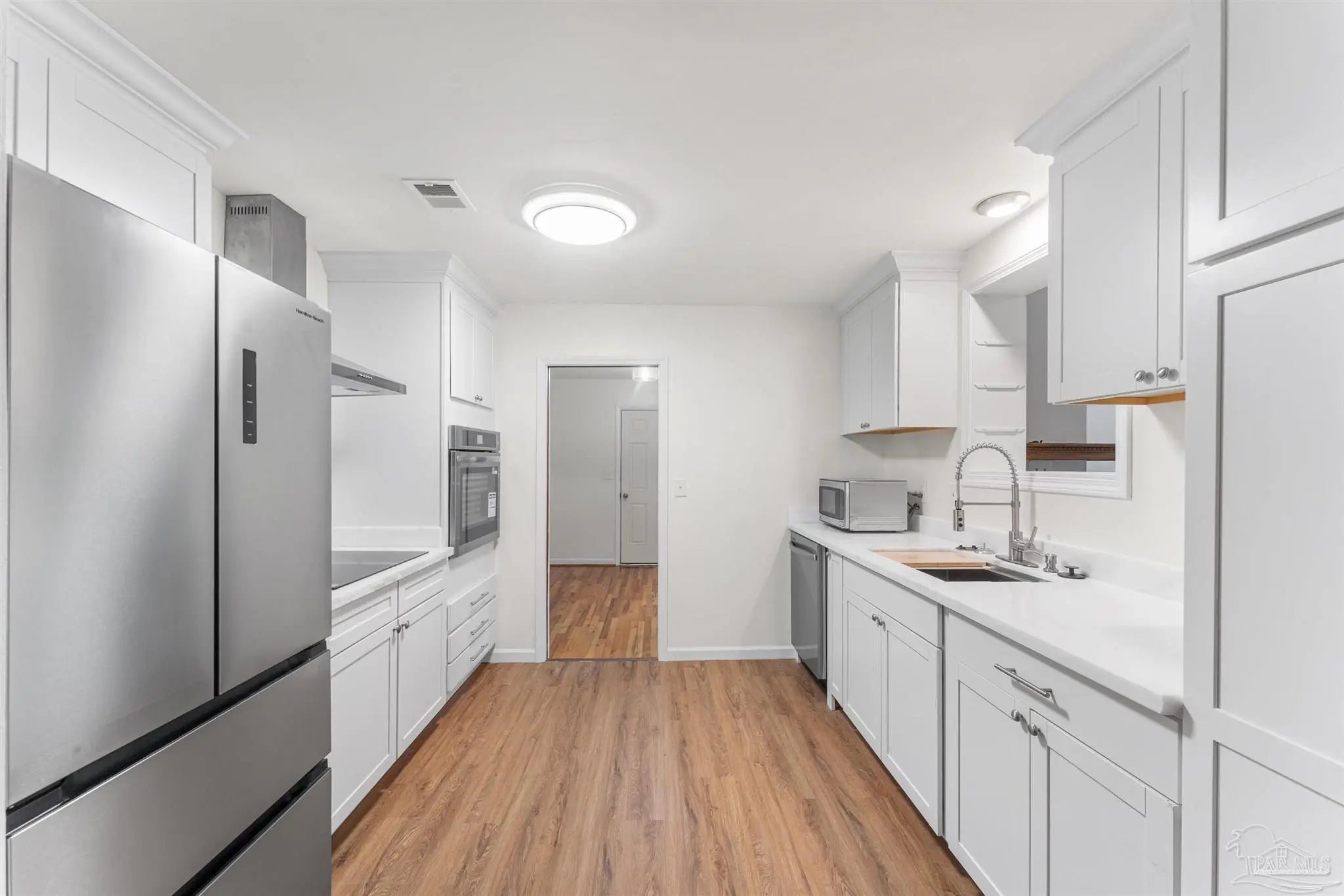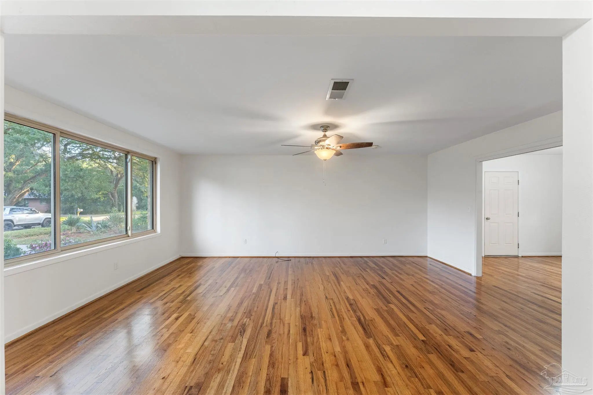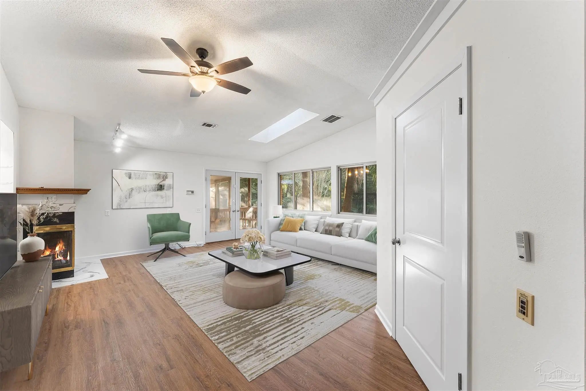 Solid brick 4-bed/2-bath with room to spread out, living room, family room, and a true office for WFH or guest overflow. The kitchen is fully renovated with a big breakfast nook, pantry, and new stainless appliances. Hardwood runs through the bedrooms; fresh LVP anchors the kitchen, dining, living, family, and office, easy to clean, no carpet in main areas. Both baths are updated, the interior's freshly painted, and new shutters add crisp curb appeal. An electric fireplace makes the family room instant-cozy. Peace-of-mind upgrades include a 2017 roof with hurricane clips and a hurricane-rated steel front door. Outside, enjoy ~0.30 acres with a fully fenced backyard, mature landscaping, shade trees, and palms perfect for pets, play, and weekend hangouts. The oversized 2-car garage adds serious storage for tools, bikes, and beach gear, plus ample driveway parking. The dedicated office can double as a studio or guest space. Backyard has room for a future patio or pool. Move-in ready and set up for easy Florida living.