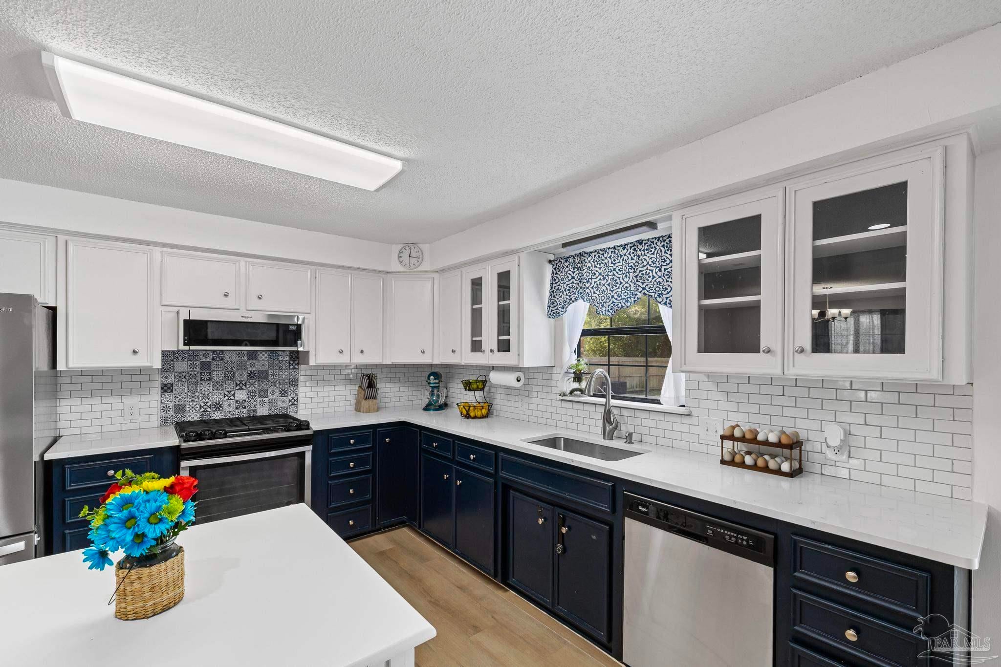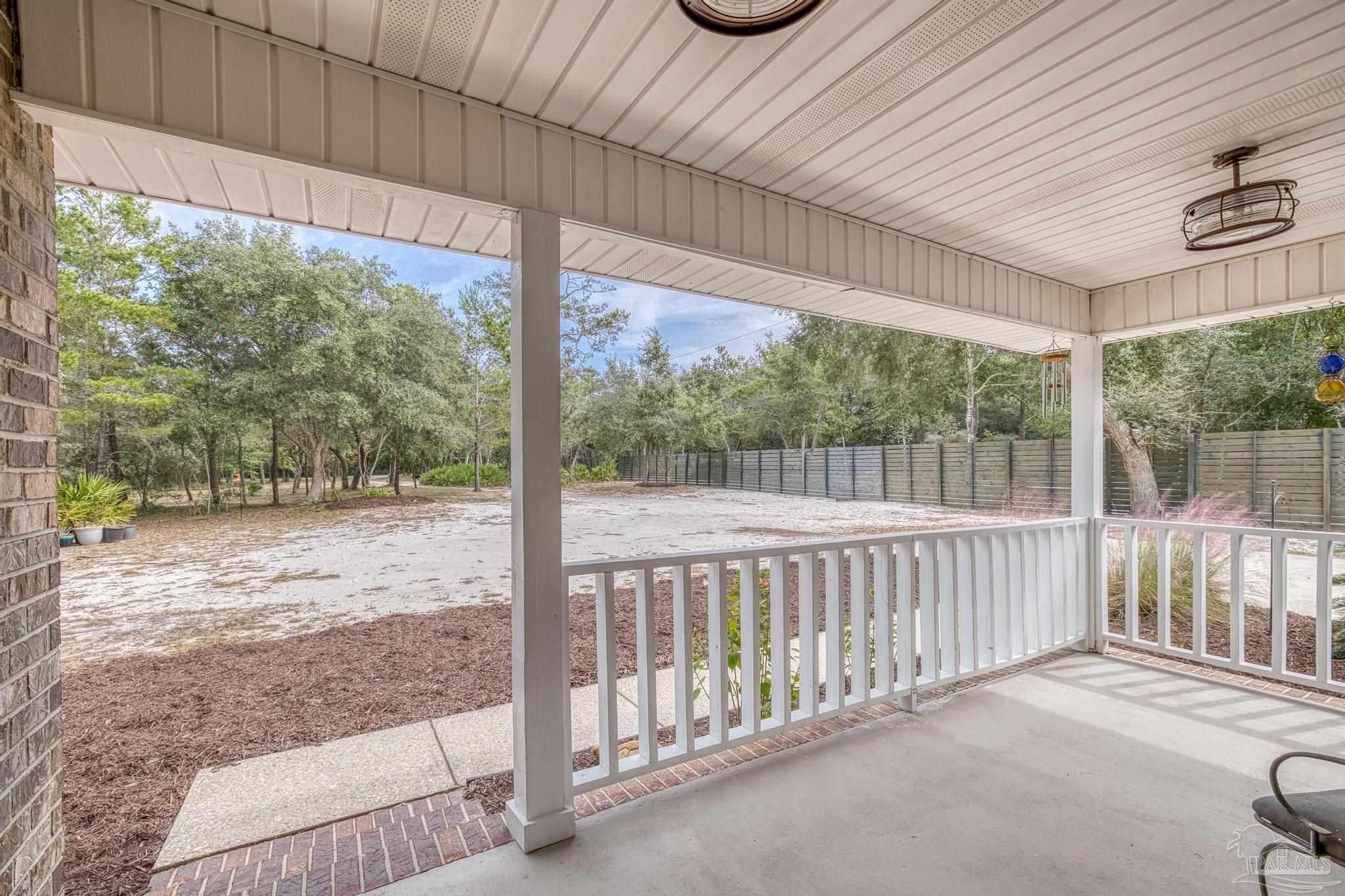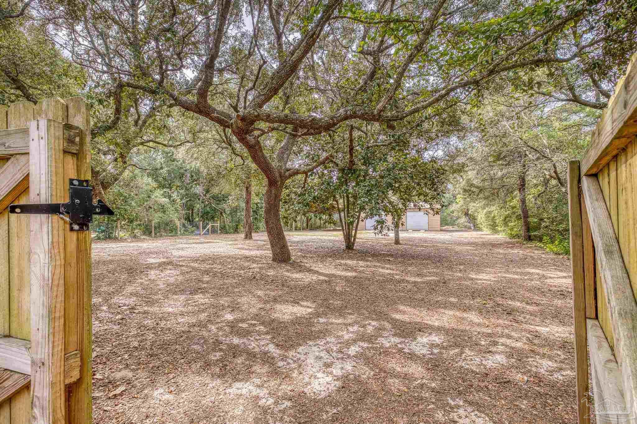 PRIVATE 1.5 ACRE WOODED LOT ~ POOL 2022 ~ HICKORY SHORES AREA ~ EASY ACCESS TO GULF BREEZE ~ DETACHED BARN with COVERED POLE BARN AREA ~ Don't miss this beautiful retreat that feels far away but still near all things Gulf Breeze / Navarre. Brick home with great curb appeal sits well off the road for privacy. Covered front porch with plenty of shade invites you in to an open concept home with new LVP flooring (2025). Dining area to your left leads to open kitchen / great room - perfect for entertaining flow! KITCHEN has quartz countertops, gas stove, plentiful cabinetry, stainless appliances and tiled backsplash. GREAT ROOM has new LVP flooring, gorgeous stone fireplace and french door access to back patio / pool lanai. PRIMARY BEDROOM is oversized with french door access to back patio / pool lanai and walk in closet. PRIMARY BATHROOM has LVP flooring, updated mirror and tub/shower combination. Two additional bedrooms share a hall bathroom with updated LVP flooring and tub/shower combination. Expansive back yard has chlorine pool (2022) with privacy fence for safety and separate gated play area (with gate access to the back of the yard). At the rear of the lot, you'll find the 1200 sq ft WORKSHOP plus bonus attached pole barn covered area perfect for hobbies or storage. Other amenities include: LARGE utility / laundry room with double door closet, laundry hook ups, utility sink and storage cabinetry; Short walk to the Bay; located 2 miles from new high school and 2.5 miles to Publix/Lowes shopping center. ROOF 2023; WATER HEATER 2025; HVAC 2014. Make sure to view the virtual tour then make an appointment to see this one and get your offer in!