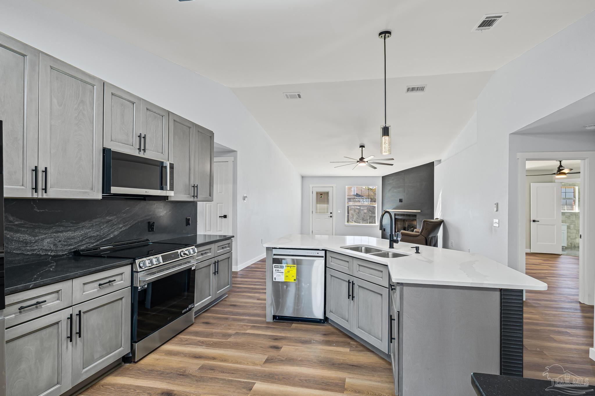 - Electric Water Heater, Dryer, Washer, Built In Microwave, Dishwasher, Disposal, Refrigerator